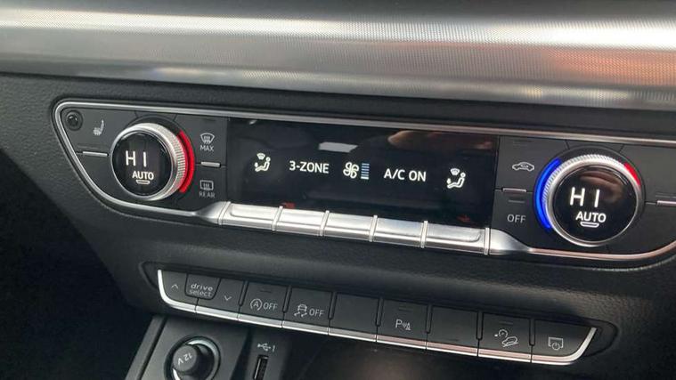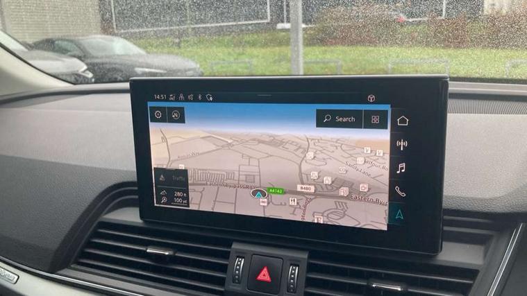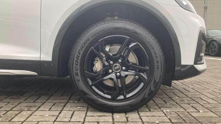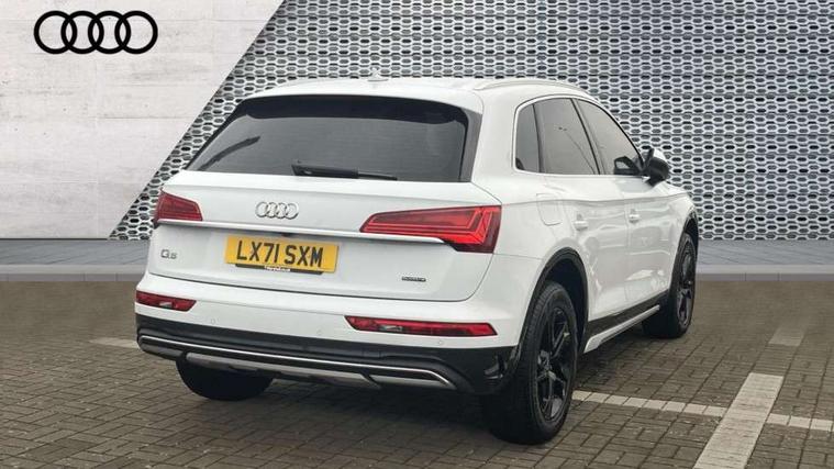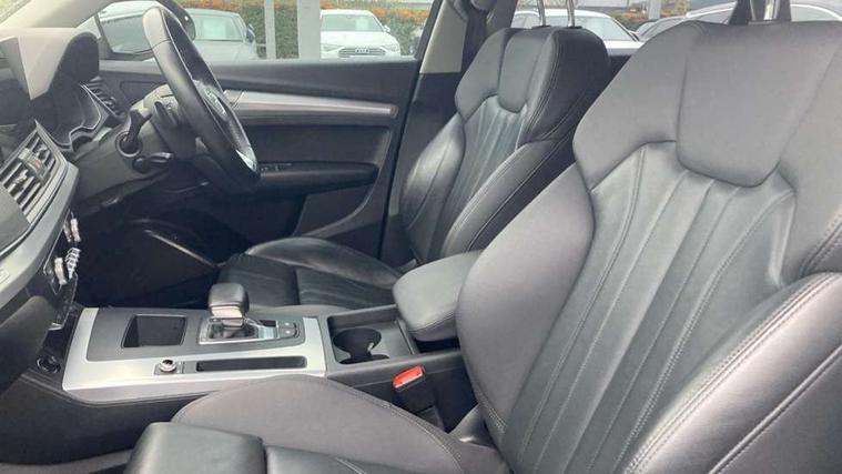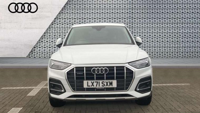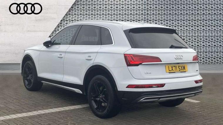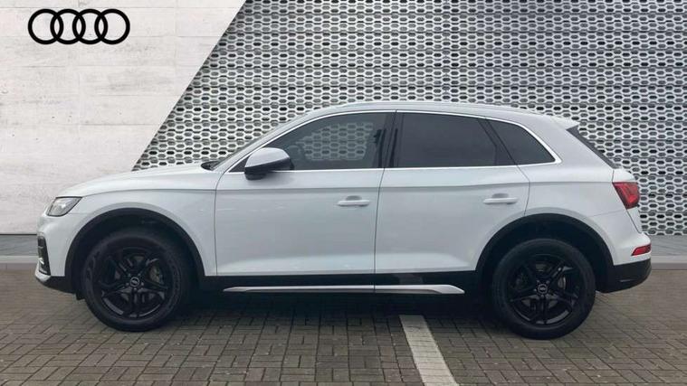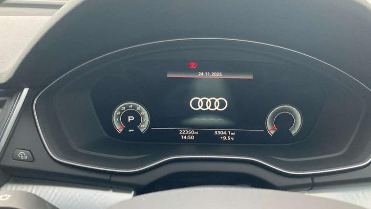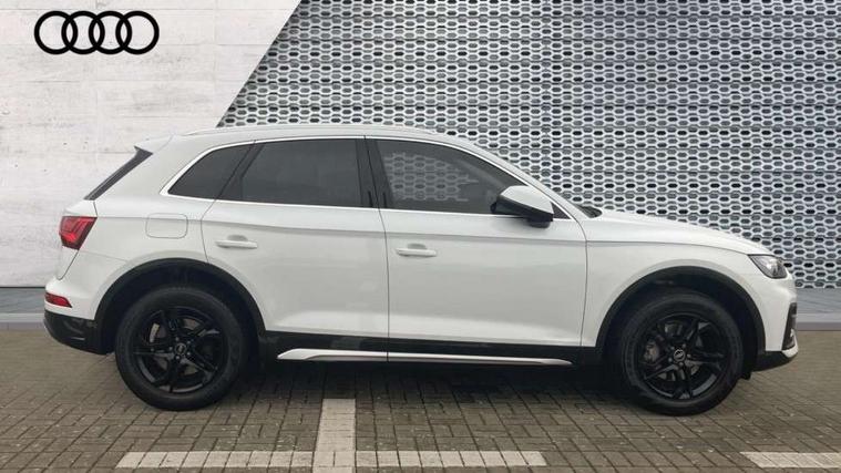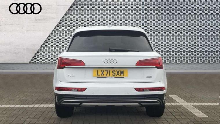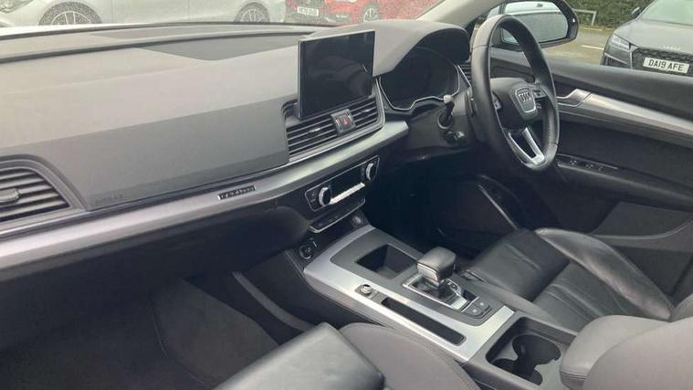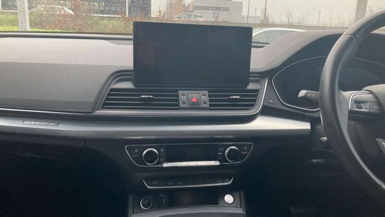 Audi connect safety and service (e-call), Audi connect with Amazon Alexa Integration, Audi drive select, Audi virtual cockpit plus with 12.3" screen and three different layout designs, Audi wireless smartphone interface, Automatic start-stop system with coasting functionality and efficiency programme, Bluetooth interface, Cruise control + speed limiter, Electro - mechanical power assisted steering, MMI navigation plus with 10.1" touch screen, Power tailgate, Reversing camera, Service interval indicator, Voice control system with Audi hotword activation "Hey Audi", Dynamic suspension, Quattro on demand, 2 x USB charging port with aux input socket, DAB Digital radio, Acoustic windscreen, Air inlets in matt titanium black with blades in matt aluminium silver, Aluminium roof rails, Auto dimming rear view mirror, Automatic headlights and windscreen wipers, Body colour bumpers, Body colour door mirrors, Chrome plated exhaust trims, Door sills in Selenite silver, Electric adjustable/heated/folding door mirrors, Front and rear electric windows, LED headlights and LED tail lights, Lower bumpers painted in contrast Manhattan grey, Matt selenite silver underbody protection, Matt twilight grey radiator grille with chrome vertical struts, Rear chrome trim strip below lights, Rear diffuser strip in selenite silver, Rear spoiler, Rear wiper, Roof bars, 3 rear headrests, 3 spoke multifunction leather steering wheel with shift paddles, 40:20:40 split folding rear seat with rear centre armrest, Comfort front centre armrest, Deluxe 3 zone electronic climate control, Door sills trims with aluminium inlays, Front/rear floor mats, Heated front seats, Height adjustable front head restraints, Height/reach adjustable steering column, ISOFIX child seat mounting and top tether, Luggage compartment cover, Manual seat adjustment with 4-way electric lumbar support, Removable luggage compartment floor, Silver cloth headlining, Sunvisors with vanity mirrors, Twin leather upholstery + front sports seats, High gloss pack - Q5, LED interior light pack - Q5, 3 point seatbelts on all seats, 6 airbags - Driver, front passenger, curtain and side airbags, Electrically operated child locks on rear doors, Electromechanical parking brake, Electronic stabilisation control including ABS, ASR and EDL, Front passenger airbag deactivation, Hill descent control, Hill hold assist, Multi collision brake assist, Pop-up bonnet for pedestrian protection, Pre sense city, Seat belt force limiter, Seatbelt monitoring, Tyre pressure warning, Warning triangle and first aid kit, Anti theft alarm, Anti-theft wheel bolts, Keyless Go access/ignition system, Aluminium rhombus inlay,