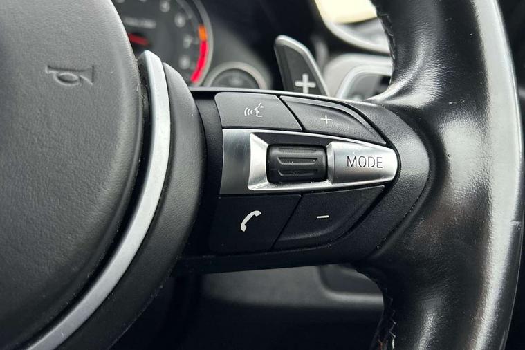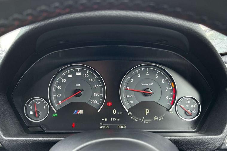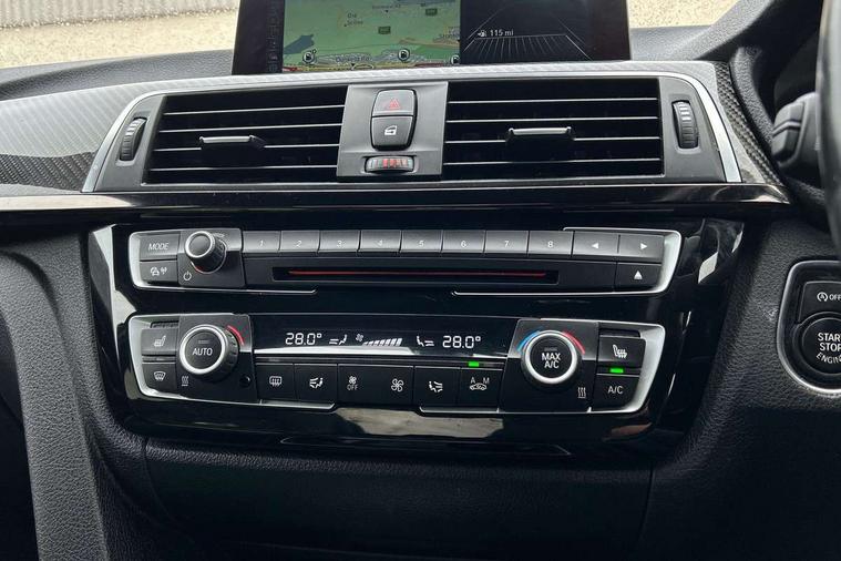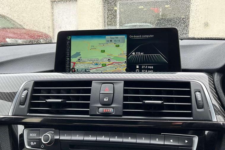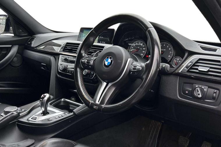 Brake pad wear indicator warning light, Cruise control, Door/boot open warning light, Electric Power Steering (EPS) with Servotronic, Enhanced bluetooth telephone functionality with USB audio interface + voice control, Front/rear park distance control, Lights on warning, Oil temperature gauge, On board computer, On board diagnostics, Outside temperature display, Service interval indicator, Stop/start button, Tyre puncture warning system, Adaptive M Sport suspension, Drive Performance Control, M differential lock, Auxiliary point for auxiliary devices, BMW professional radio/CD/MP3, DAB Digital radio, Adjustable intermittent wipers, Anti dazzle rear view mirror, Auto dimming rear view mirror, Body colour bumpers, Body colour door handles, Body colour door mirrors, Chrome kidney grille with black vertical slats, Chrome-plated exhaust tailpipes, Day time running light, Door mirror integrated indicators, Door sill finishers, Dynamic brake lights, Electric front and rear windows with one touch/convenient open/close function, Electric heated, folding and auto dimming door mirrors with memory, Follow me home headlights, Green tinted heat insulating glass, Headlight washers, Heated rear window with automatic switch off, Heated windscreen washer jets, High gloss shadow line, Rain sensor + automatic driving lights control, Rear lip spoiler, Shark fin roof aerial, 12V sockets in front centre console and passenger footwell, 2 cupholders in front centre console, 3 rear seat head restraints, 3 spoke leather steering wheel, 4 boot load lashing points, 4 foldable grab handles - rear with clothes hook, Adjustable lumbar support, Driver/passenger sunvisors with illuminated vanity mirrors + covers, Dual zone automatic air conditioning, Electric front seats with 2 position memory on drivers + drivers mirror memory + auto dip park function on passenger mirror + heated door mirrors, Folding front centre armrest + storage, Front and rear door armrests, Front door storage bins with bottle holder, Front interior light, Front isofix attachment + airbag deactivation, Heated front seats, Height adjustable front headrests, Individual anthracite headlining, Isofix on 2nd row outer seats, Leather gear knob, Leather handbrake grip, Lockable/illuminated glovebox, Luggage compartment lighting, Multi-function controls for steering wheel, Rake/reach adjustable steering wheel, Rear storage compartment in multifunction centre console with sliding cover, Storage compartment in rear doors, Toolkit located in luggage compartment, Velour floormats, Extended lights package - M Series, Media pack - Professional - M3, 3 point seatbelts on all seats, ABS/EBD, Automatic Stability Control (ASC), Cornering brake control (CBC), Crash sensor, Driver/Front Passenger airbags, Dynamic brake control, Dynamic Stability Control with M Dynamic mode, Dynamic Traction Control - DTC, Front and rear head airbags, Front passenger airbag deactivation, Front seat side impact airbags, Front seatbelt pretensioners + load limiters, Hill start assist, Rear child proof door locks, Seatbelt warning, Warning triangle and first aid kit, Automatic drive away locking facility, Central locking including fuel filler and boot, Electronic immobiliser, Thatcham cat 1 remote alarm, M mobility system (flat-tyre repair system),