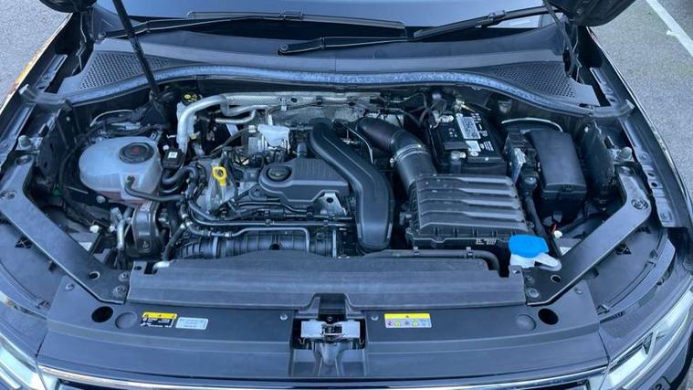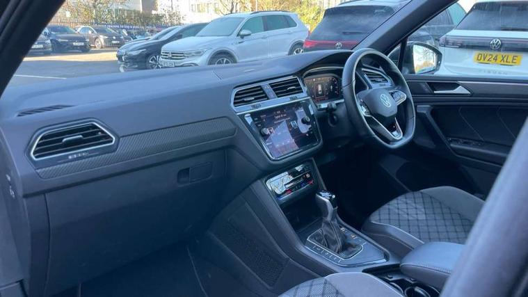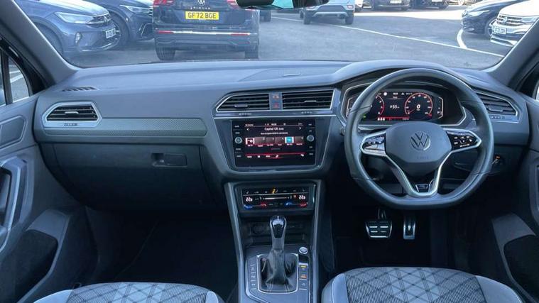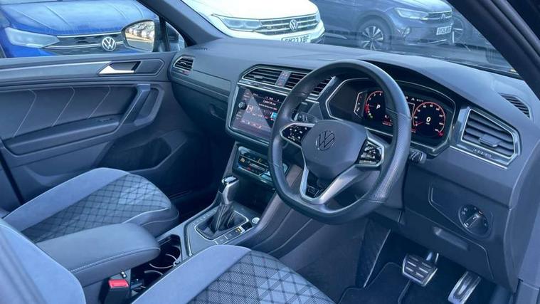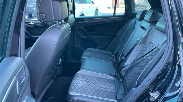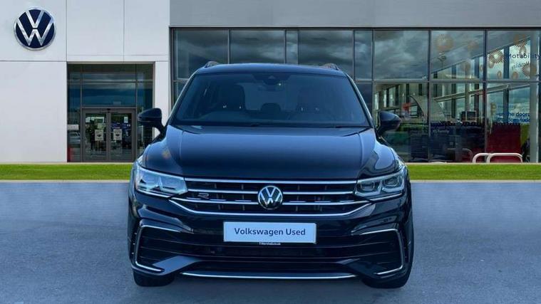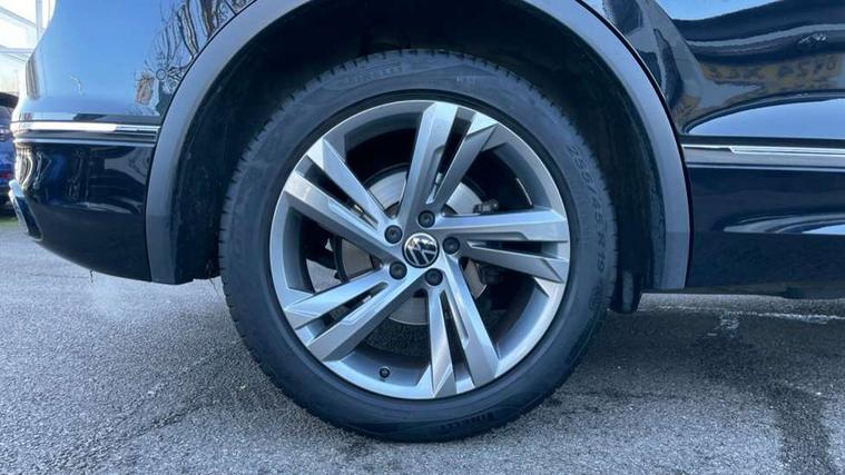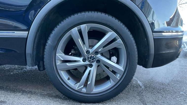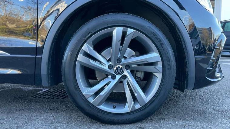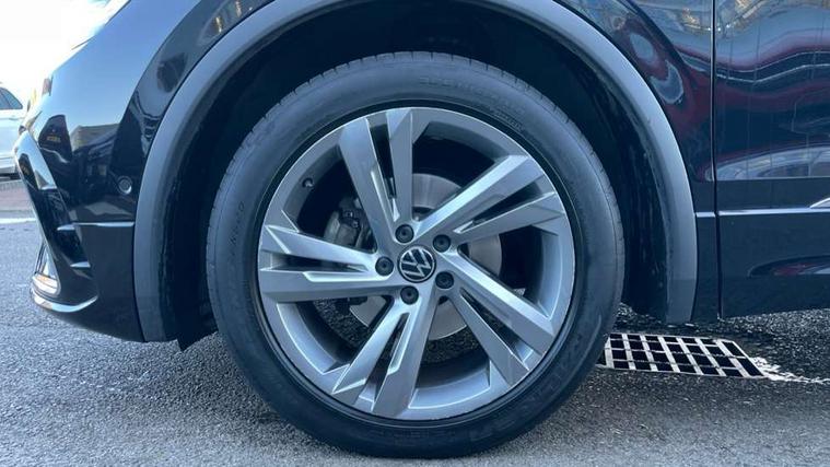 Adaptive cruise control ACC stop and go including speed limiter, App-Connect incl. App-Connect Wireless for Apple CarPlay and Android Auto, Bluetooth phone integration system, Comfort drive travel assist, Digital cockpit pro, Driver alert system, Driver profile selection, Dynamic road sign display, eCall emergency call system, Electromechanical speed sensitive power steering, Emergency assist, Front and rear parking distance sensors, Instrument cluster mph speedometer Great Britain, Lane keeping system Lane Assist, Lights on warning, Multifunction front facing camera, Outside temperature display, Premium multifunction display with multi colour display, Preparation for subsequent activation Navigation feature Discover Media includes Streaming and Internet, Remote control boot opening, Rev counter, Service interval indicator, Speed limit display, Start/stop system with regenerative braking, Tailgate/trunk lid unlocking from outside, Trip computer, Warning sound and light for doors and tailgate open, Battery regeneration during braking, Sports suspension, 8 Speakers, Digital radio reception DAB+, Diversity antenna for FM reception, Radio, Auto dimming interior rear view mirror, Automatic headlight control system, Body colored bumpers in R-Line style, Body colored exterior mirror housings, Body colour door handles, Chrome moldings on the side windows, Coming/leaving home lighting function, Dynamic headlight range control, Front and rear electric windows, Heated rear window, High level 3rd brake light, Laminated safety glass windshield, heat and sound insulating, LED headlamps with LED separate daytime running light and dynamic cornering light, LED rear combination lamps, LED rear number plate lights, License plate carrier in front and rear, Poor weather light and cornering light, Power adjustable, folding and heated door mirrors with surround lighting, front passenger exterior mirror lowering function, Privacy glass for rear side windows and rear window, R Line body kit, R Line side sills, Rain sensor, Rear exhaust tailpipe, Rear fog lamp, Rear side wing doors, Rear spoiler in R style, Rear windscreen washer and wiper with interval delay, Side and rear windows in heat insulating glass, Trailer Stability Programme, Unique R Line badging, Windscreen wipers/ intermittent wipe + 4 position delay, 12V outlet in center console rear and in luggage compartment, 12V outlet in front and tray, 2 LED front reading lights, 2 LED rear reading lights, 3 bench rear seats in 2nd row, 3 rear headrests, Air Care Climatronic 3 zone automatic climate control with enhanced air filter and controls in the rear, Art Velours greyson sports cloth upholstery, Backrest release for left front seat, Black headlining, Brushed stainless steel pedals and footrest, Carpet mats in front and rear with decorative stitching in Gray, Climate control unit rear with touch function, Door and side trim panel in foam film, insert in leatherette, Driver + front passenger lumbar support, Front footwell illumination, Front scuff plates in aluminum with R-Line logo, Front seats head restraints (x-adjustment), Height adjustable front seats, Height/reach adjust steering wheel, Isofix Preparation 2 Rear child seats, Leather gear knob, Rear bench seat asymetrically split folding, longitudinally movable and folding with load-through hatch and center armrest, Remote unlocking for rear seat backrest, Single front passenger seat, Sun visors with illuminated vanity mirrors, Top front comfort seats, Winter pack - Tiguan, 3 point seat belt for centre rear seats, 3 point seat belts with seat belt pretensioners for the outer rear seats, Curtain airbags for front and rear passengers, Driver/Front Passenger airbags, Drivers knee airbag, Electronic parking brake with auto hold, Electronic Stability Control with driver steering recommendation, ABS, ASR, EDL, EDTC and trailer stabilization, Front assist with autonomous emergency braking (for Adaptive Cruise Control ACC up to 130 mph), Front disc brakes, Front passenger airbag deactivation, Front side airbags, Height adjustable front 3 point seatbelts + pretensioners, Manual child proof rear door locks, Pedestrian monitoring system, Proactive passenger protection system in combination with front assist, Rear disc brakes, Two tone horn, Tyre pressure loss indicator, Warning sound and light for front seat belts if unfastened, Warning triangle, Anti theft alarm system with interior monitoring, backup horn and towing protection, Anti theft wheel bolts, Electronic engine immobiliser, Keyless locking and starting system keyless access with safelock, Chrome elements on the mirror switch power window switches and door pulls, Decorative inserts Carbon Gray for dashboard and front door trim panels, Interior door handle in matte chrome, 19" Valencia alloy wheels with AirStop tyres, Tool kit, Tyre mobility kit Includes 12V compressor and tyre sealant,