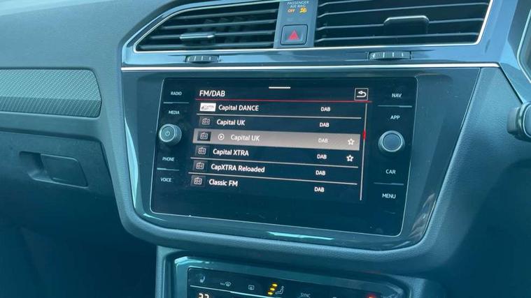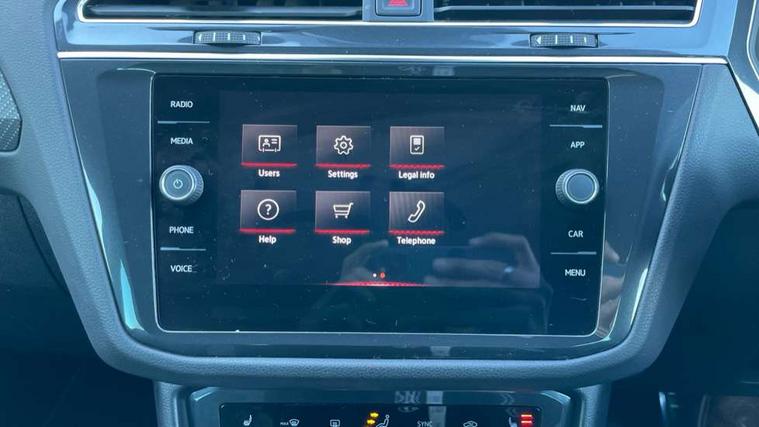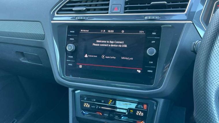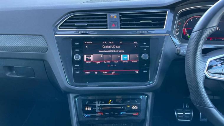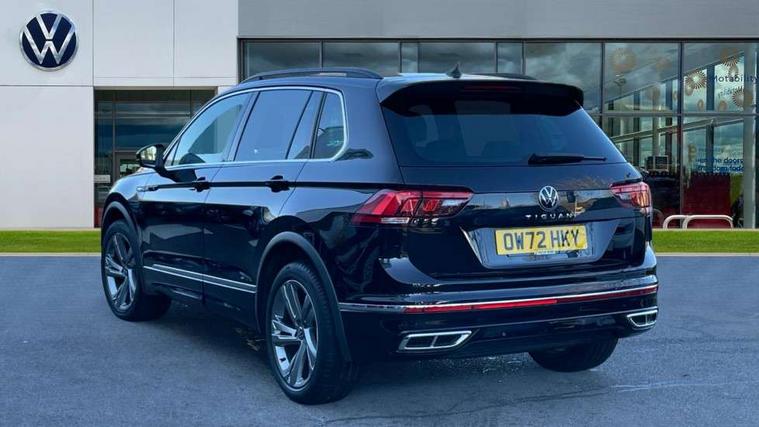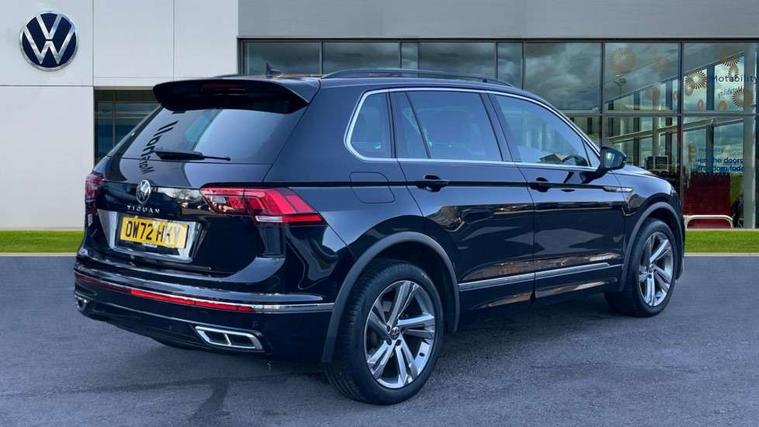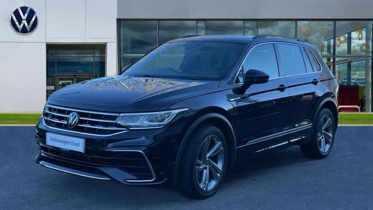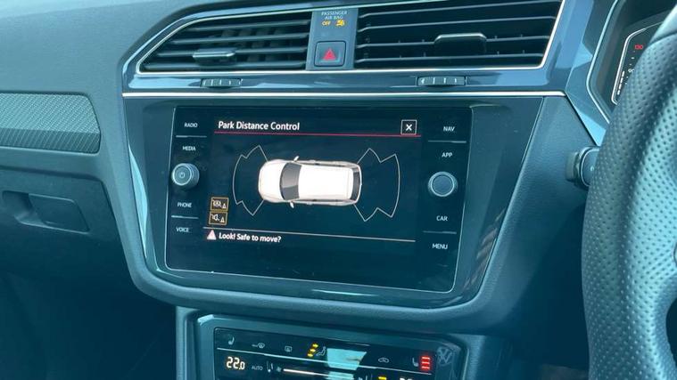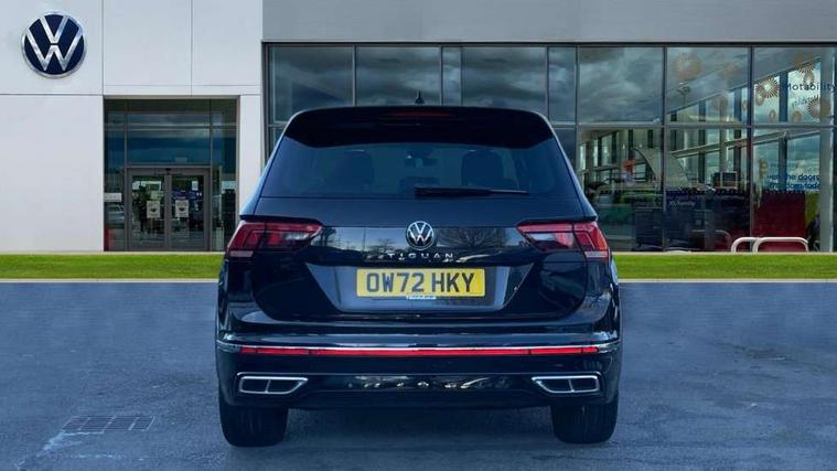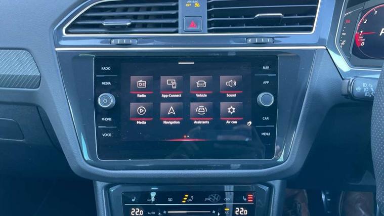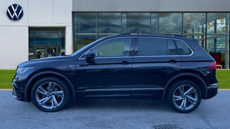 Adaptive cruise control ACC stop and go including speed limiter, App-Connect incl. App-Connect Wireless for Apple CarPlay and Android Auto, Bluetooth phone integration system, Comfort drive travel assist, Digital cockpit pro, Driver alert system, Driver profile selection, Dynamic road sign display, eCall emergency call system, Electromechanical speed sensitive power steering, Emergency assist, Front and rear parking distance sensors, Instrument cluster mph speedometer Great Britain, Lane keeping system Lane Assist, Lights on warning, Multifunction front facing camera, Outside temperature display, Premium multifunction display with multi colour display, Preparation for subsequent activation Navigation feature Discover Media includes Streaming and Internet, Remote control boot opening, Rev counter, Service interval indicator, Speed limit display, Start/stop system with regenerative braking, Tailgate/trunk lid unlocking from outside, Trip computer, Warning sound and light for doors and tailgate open, Battery regeneration during braking, Sports suspension, 8 Speakers, Digital radio reception DAB+, Diversity antenna for FM reception, Radio, Auto dimming interior rear view mirror, Automatic headlight control system, Body colored bumpers in R-Line style, Body colored exterior mirror housings, Body colour door handles, Chrome moldings on the side windows, Coming/leaving home lighting function, Dynamic headlight range control, Front and rear electric windows, Heated rear window, High level 3rd brake light, Laminated safety glass windshield, heat and sound insulating, LED headlamps with LED separate daytime running light and dynamic cornering light, LED rear combination lamps, LED rear number plate lights, License plate carrier in front and rear, Poor weather light and cornering light, Power adjustable, folding and heated door mirrors with surround lighting, front passenger exterior mirror lowering function, Privacy glass for rear side windows and rear window, R Line body kit, R Line side sills, Rain sensor, Rear exhaust tailpipe, Rear fog lamp, Rear side wing doors, Rear spoiler in R style, Rear windscreen washer and wiper with interval delay, Side and rear windows in heat insulating glass, Trailer Stability Programme, Unique R Line badging, Windscreen wipers/ intermittent wipe + 4 position delay, 12V outlet in center console rear and in luggage compartment, 12V outlet in front and tray, 2 LED front reading lights, 2 LED rear reading lights, 3 bench rear seats in 2nd row, 3 rear headrests, Air Care Climatronic 3 zone automatic climate control with enhanced air filter and controls in the rear, Art Velours greyson sports cloth upholstery, Backrest release for left front seat, Black headlining, Brushed stainless steel pedals and footrest, Carpet mats in front and rear with decorative stitching in Gray, Climate control unit rear with touch function, Door and side trim panel in foam film, insert in leatherette, Driver + front passenger lumbar support, Front footwell illumination, Front scuff plates in aluminum with R-Line logo, Front seats head restraints (x-adjustment), Height adjustable front seats, Height/reach adjust steering wheel, Isofix Preparation 2 Rear child seats, Leather gear knob, Rear bench seat asymetrically split folding, longitudinally movable and folding with load-through hatch and center armrest, Remote unlocking for rear seat backrest, Single front passenger seat, Sun visors with illuminated vanity mirrors, Top front comfort seats, Winter pack - Tiguan, 3 point seat belt for centre rear seats, 3 point seat belts with seat belt pretensioners for the outer rear seats, Curtain airbags for front and rear passengers, Driver/Front Passenger airbags, Drivers knee airbag, Electronic parking brake with auto hold, Electronic Stability Control with driver steering recommendation, ABS, ASR, EDL, EDTC and trailer stabilization, Front assist with autonomous emergency braking (for Adaptive Cruise Control ACC up to 130 mph), Front disc brakes, Front passenger airbag deactivation, Front side airbags, Height adjustable front 3 point seatbelts + pretensioners, Manual child proof rear door locks, Pedestrian monitoring system, Proactive passenger protection system in combination with front assist, Rear disc brakes, Two tone horn, Tyre pressure loss indicator, Warning sound and light for front seat belts if unfastened, Warning triangle, Anti theft alarm system with interior monitoring, backup horn and towing protection, Anti theft wheel bolts, Electronic engine immobiliser, Keyless locking and starting system keyless access with safelock, Chrome elements on the mirror switch power window switches and door pulls, Decorative inserts Carbon Gray for dashboard and front door trim panels, Interior door handle in matte chrome, 19" Valencia alloy wheels with AirStop tyres, Tool kit, Tyre mobility kit Includes 12V compressor and tyre sealant,