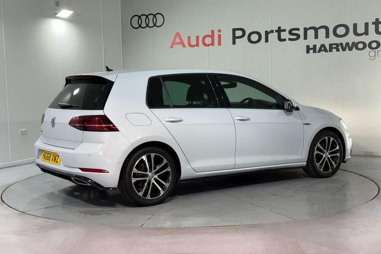 'Lights On' Reminder warning buzzer, 8" colour touch screen, ACC - Adaptive cruise control with front assist, forward collision warning, distance monitoring, city emergency brake and speed limiter, App-Connect, Bluetooth hands free telephone connection, Brake pad wear indicator warning light, Driver alert system, Driver profile selection, Exterior temperature gauge, Front assistant collision mitigation, Instrument cluster in white, Multifunction computer, PAS - speed related, Power assisted speed sensitive electro-mechanical steering, Rev counter, Stop/start system, Trip and service interval display, Ultrasonic front and rear optical and audible parking sensors, Warning buzzer and light for front seatbelts unfastened, Battery regeneration during braking, Lowered sports suspension, XDS electronic differential lock, CD/MP3/WMA, USB and SD card reader, aux-in, Composition media system, DAB Digital radio receiver, Automatic coming/leaving home lighting function and rain sensor, Automatic dimming rear view mirror/rain sensor, Automatic headlights, Black front air intake and radiator grille with chrome insert, Black sports rear diffuser, Body colour bumpers, Body colour door handles, Body colour door mirrors with integrated indicators, Body colour rear roof spoiler, Chrome grille surround, Chrome trapezoidal exhaust, Electric front windows, Electric rear windows, Electrically adjustable and heated door mirrors, Halogen headlights range adjustable via infotainment system with LED daytime running lights, Heated rear windscreen, High level 3rd brake light incorporating LED Technology, LED rear lights, Rain sensor, Rear number plate lights incorporating LED technology, Rear tinted glass 65% light absorbing from B pillar backwards, Rear window aerial, Rear window wash/wipe with intermittent wipe, Reflectors in all doors, Stainless steel door sill protection, Windscreen wipers/ intermittent wipe + 4 position delay, 12V socket in luggage compartment, 3 rear headrests, 60/40 split folding rear seat backrest, Bag hook in luggage compartment, Black headlining, Boot lashing points, Cooled glovebox, Courtesy light delay, Cover for storage compartment in centre, Dust/pollen filter, Front + rear carpet mats, Front centre armrest with storage compartment and two rear air vents, Front reading lights, Front seat back storage pockets, Grab handles front x 2, rear x 2 with integrated coat hooks, Height/reach adjust steering wheel, Illuminated vanity mirrors, Instrument lighting white adjustable panel illumination, Isofix preparation for 2 rear child seats, Load through provision with rear centre armrest and cupholders x2, Luggage compartment cover, Luggage compartment light, Multifunction leather steering wheel with grey stitching leather trimmed gear knob including paddle shift, Multifunction leather steering wheel with leather trimmed gear knob including paddle shift, Overhead storage box, Stainless steel pedals, Storage box in luggage compartment, Storage compartments in doors, Storage compartments in front doors, Storage compartments in rear doors, Sun visors, Three spoke multi-function leather trimmed steering wheel and gearknob, Three spoke steering wheel, Variable boot floor, height adjustable and removable, Ambient lighting pack - Golf, Mirror pack - Golf, 3 rear three point seatbelts, Anti-lock braking system (ABS), Automatic post collision braking system, Child locks on rear doors, Driver/Passenger optimised head restraints, Drivers and Front Passengers airbags with front passengers airbag deactivation switch, Drivers knee airbag, Electronic stability control (ESC) including Electronic differential lock (EDL) and ASR (Traction control) with deactivation via infotainment system, Front and rear curtain airbags, Front seat side impact airbags, Hydraulic Brake Assist (HBA), Pre crash preventive occupant protection, Three point height adjustable front seatbelts with tensioners, Tyre pressure loss indicator, Alarm with interior protection, Electronic engine immobiliser, Remote central locking with 2 remote folding keys, Dark Diamond decorative inserts in dash and door panels, Piano black centre console with aluminium inlay, Steel space saver spare wheel,