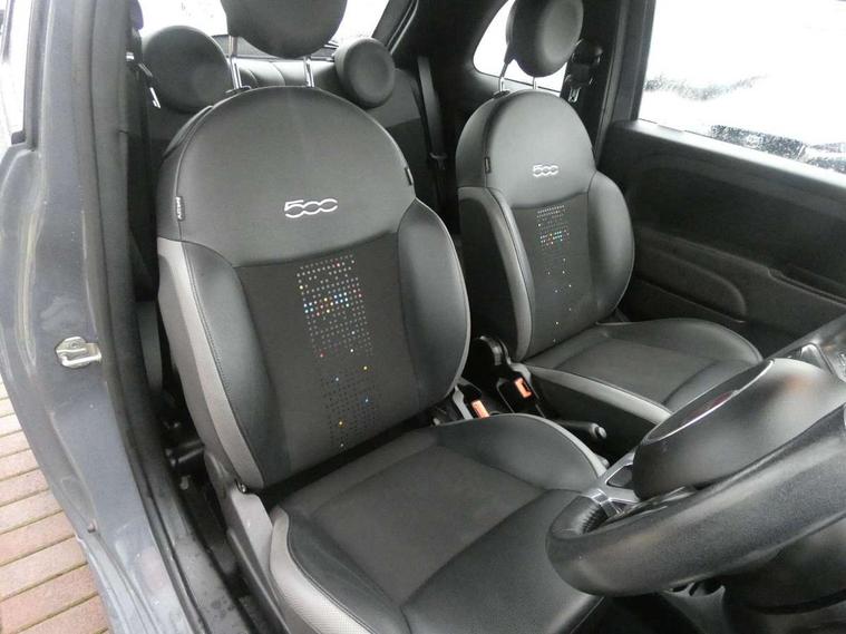 Adhesive skin for nest hub customized with 500 logo, Apple car play/Android Auto, Cruise control, E-call, External temperature gauge, Google nest hub with 7" smart display integrated with Google Assistant, digital portrait, smart home control, connected and controllable by voice, Google specific splash screen, Google welcome letter, Mopar connect services, Power assist steering, Rear parking sensor, Speed limiter, Stop/start system, Trip computer, 4 speakers, Rear speakers, 3rd brake light, Auto headlights, Body colour electric adjustable door mirrors with defrosting / external temperature sensor, Body colour sports bumpers, Chrome plated exterior door handles, Dusk and rain sensors, Electric front windows, Front fog lights, Google specific exterior details with B-Pillar Google themed decal and Hey Google logo on fender, Halogen headlamps, Heat insulated glass, Heated rear windows with wash wipe, LED daytime running lights, Rear wiper, 1 passenger grab handle, 2 seat bench in second row, 50/50 split folding rear seats with height adjustable rear headrests, Auxilliary 12V power socket, Black door panel, Black pillars cover colour, Black techno leather steering wheel with audio controls, Front headrests, Google bag, Google key cover customized with 500 logo, Google specific interiors unique fabric seats upholstery, Google themed centre inserts, Height adjustable drivers seat, Height adjustable steering wheel, Isofix child seat preparation, Radio unit bezel in black, Single front passenger seat, Sports kit with top rear spoiler, side skirts and chrome exhaust, 7 airbags - Driver, passenger, side, window and drivers knee airbags, ABS/EBD, ESC + ASR/MSR + HBA + Hill holder, Passenger airbag deactivation system, Traction control, Tyre pressure monitoring system, Automatic door locking, Immobiliser, Locking fuel filler cap, Remote central locking, Silver matt dashboard with 500 logo silver,