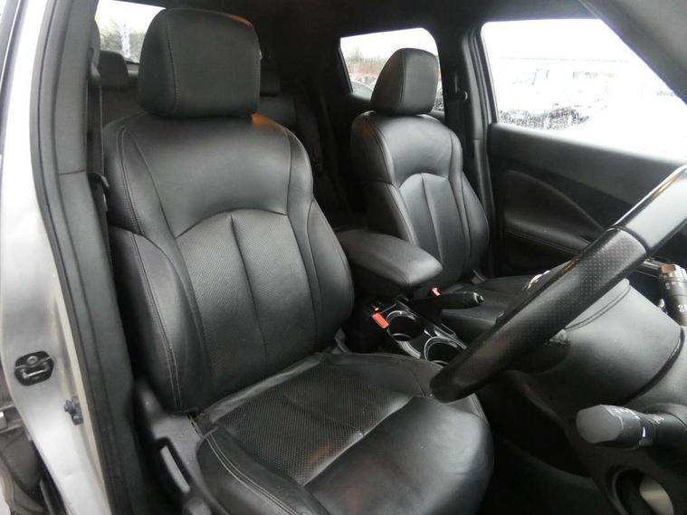 Around View Monitor, Blind spot monitoring, Bluetooth system, Colour rear view camera, Cruise control + speed limiter, Electric speed sensitive power steering, Lane departure warning system, Moving object detection, Nissan connect sat nav system, Push button starter, Service interval indicator, Trip computer, 6 speakers, Aux input, DAB Digital radio, Steering wheel mounted audio controls, Stereo radio/CD player and MP3 facility, USB port, 2 speed wipers+variable intermittent wipe, Automatic headlights, Body colour bumpers, Body colour door handles, Dusk sensor, Electric door mirrors, Electric folding door mirrors, Electric front/rear windows, Front fog lights, Heated door mirrors, LED daytime running lights, Privacy glass, Rain sensor, Rear wiper, 12V socket, 60/40 split folding rear seat, Climate control, Front armrest, Front cupholders x 2, Front door pockets with bottle holders, Front head restraints, Front seat belt pre-tensioners with load limiters, Gear shift indicator, Glovebox, Heated front seats, Height adjustable driver's seat, Internal chrome door handles, Isofix child seat preparation, Leather steering wheel and gear knob, Leather upholstery, Luggage area under floor storage box, Map reading lamp, Passenger seat back pocket, Pollen filter, Rear headrests, Rear tonneau cover integrated into tailgate, Sports seats, Steering wheel rake adjustment, ABS + EBD + EBA, Child locks on rear doors, Driver and passenger airbags, Driver and passenger side airbags, ESP + traction control, Front and rear curtain airbags, Height adjustable front seatbelts, Passenger airbag deactivate switch, Three 3 point rear seatbelts, Tyre pressure monitoring system, VDC Dynamic Vehicle Control, Warning triangle and first aid kit, Alarm, Immobiliser, Intelligent Key, Remote central locking, 17" Urban alloy wheels, Tyre repair kit,