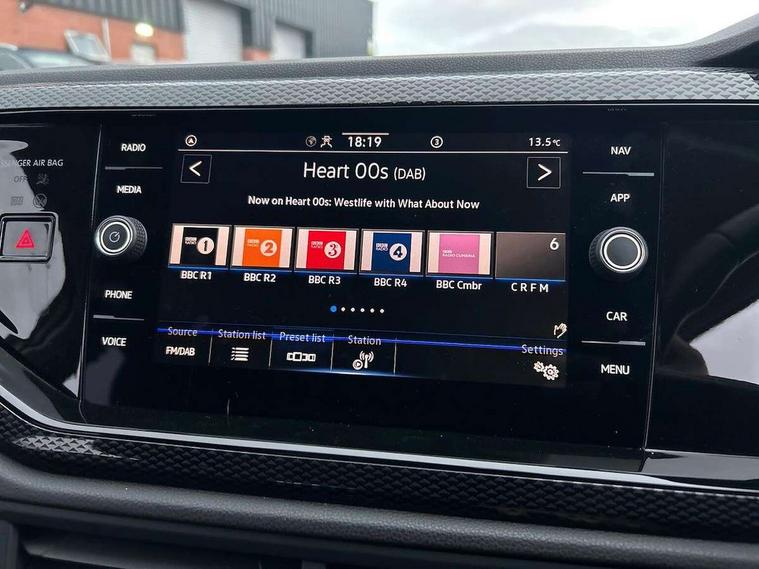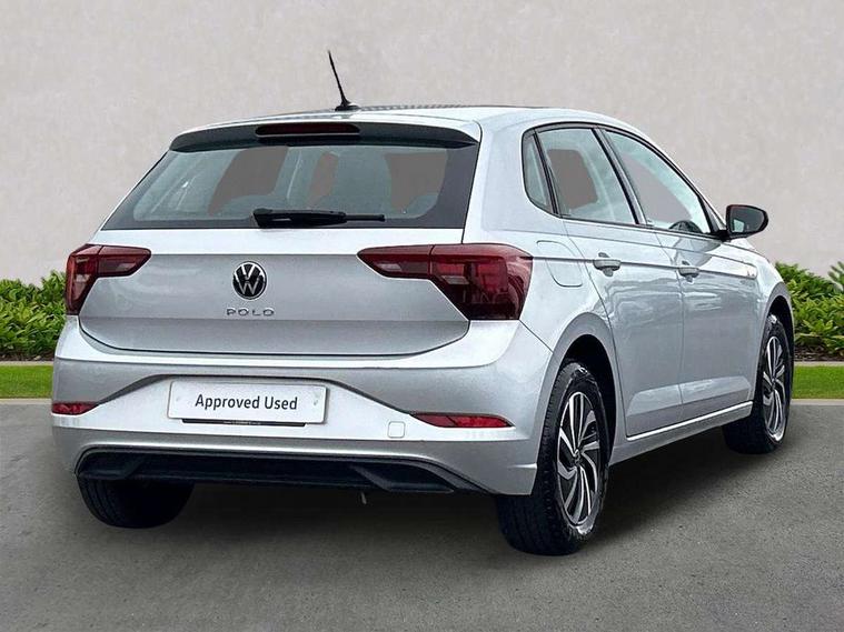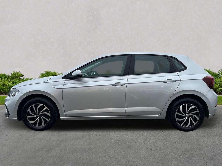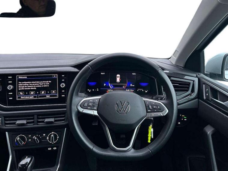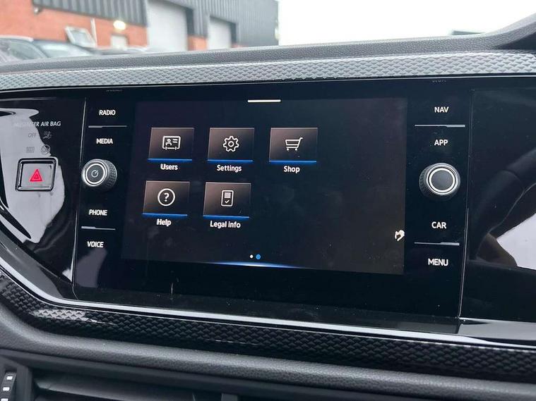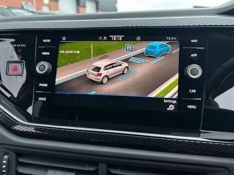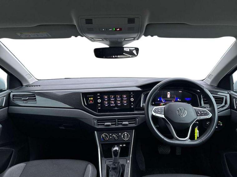 Adaptive cruise control with follow-to-stop and speed limiter, Advanced driver attention and drowsiness monitor, Bluetooth mobile phone interface, Dynamic road sign display, Emergency call service, Power assisted speed sensitive steering, Preparation for navigation system with media and internet package, Preparation for We connect and We connect plus, Speedo and rev counter, electronic odometer, trip, service interval display and exterior temperature gauge, Standard rear axle, Travel Assist - Lane keeping system and traffic jam assist, Travel assist including emergency assist, Trip computer, Warning signal and warning light for front and rear seatbelts not fastened, Washer fluid level indicator, Wireless app connect, Front wheel drive, Rear shock absorpion, Start-stop system with battery regeneration (recuperation - energy recovery during braking), DAB Digital radio, Diversity antenna for FM reception, Automatic dimming interior rear view mirror, Automatic headlight control with LED separate daytime running lights with coming/leaving home function, Body colour bumpers with chrome inserts, Body colour door handles, Body colour door mirrors, Electric front windows, Engine badge deletion, Headlight range adjustment, Heat insulating and laminated safety glass windshield, Heat insulating darkened glass in side and rear windows, Heat insulating glass windscreen, LED Headlights, LED rear combination lamps, Power folding adjustable/heated exterior mirrors and front passenger exterior mirror lowering function, Rain sensor, Rear electric windows, Rear fog light, Rear side wing doors, Rear windscreen washer and wiper with interval delay, Third brake light, 12V power socket in centre console, 2 front and 2 rear reading lights with switch off delay and dimmer, 2 USB-C ports in the front, 2 USB-C charging sockets on the center console in the rear, 3 rear head restraints, 60/40 split folding rear seat and rear seat bench not split, Ceramique roof lining, Chrome plated radiator grille inserts, air vent surrounds and light switch surrounds, Door and side trim panel, Driver and front passenger seat height adjustment, Driver/passenger sunvisors with illuminated vanity mirrors, Front centre armrest, Front seat backrest storage pockets, Front standard seats, Handbrake lever handle in leather, Hartley/Thomas cloth upholstery, Headliner in recycled material, Isofix child seat preparation easy-fit (for two outer rear seats, and front passenger seat) compatible with I-size, Leather trimmed gear knob, Luggage compartment cover, Luggage compartment lighting, Removable luggage compartment floor, Single front passenger seat, Standard climatic zones, Standard pedal cluster, Three spoke leather wrapped multifunction steering wheel with shifting paddles, Light and vision pack - Polo, 3 point height adj front seatbelts + pretensioners, 3x3 point rear seatbelts, ABS, Driver and front passenger airbag with front passenger airbag deactivation, Drivers and front passengers safety optimised head restraints, ESC (Electronic stability control) + EDL (Electronic Differntial lock) and ASR (Traction control), Extended and predictive pedestrian/ cyclist protection, Front assist with autonomous emergency braking (for Adaptive Cruise Control ACC up to 130 mph), Front curtain and side airbags with center airbag, Front disc brakes, Hill hold control, Manual child lock in rear doors, Rear drum brakes, Single tone horn, Tyre pressure loss indicator, Alarm with interior protection, Anti-theft alarm system with interior monitoring, backup horn, and towing protection, Anti-theft wheel bolts, Electronic engine immobiliser, Lava stone black gloss/matt decorative inserts in dash and front door panels, Low rolling resistance tyres,