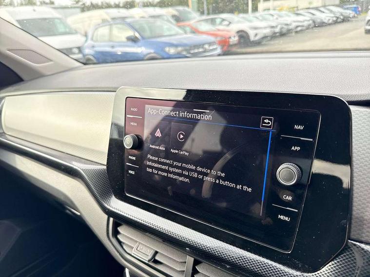 'Lights On' Reminder warning buzzer, Adaptive cruise control including front assist, forward collision warning, autonomous emergency braking, speed limiter, Advanced driver attention and drowsiness monitor, Blind spot monitoring, Car information display, Dynamic road sign display, E-Sim card for online connectivity, eCall emergency call system, Front and rear parking sensors, Low washer fluid warning light, Multifunction computer with visual gear change recommendation for fuel consumption, Multifunction front facing camera for distance control, Operating permit alteration, Power assisted steering, Preparation for navigation system with media and internet package, Preparation for We connect and We connect plus, Rear view camera, Semi-automated driving assistance, travel assist including lane keeping system Lane Assist and emergency assisst, Speedo, rev counter, electronic odometer, trip, service interval display, exterior temperature and fuel gauge, Warning sound and light for doors and tailgate open, Warning sound and light for front seatbelts unfastened, Wireless Car net app connect with Apple CarPlay, combined functionality of Apple CarPlay/Android Auto and MirrorLink, Misfuel prevention device, Start-stop system with battery regeneration (recuperation - energy recovery during braking), 2 USB C ports in front, 2 USB charging sockets on the centre console in the rear charging capacity upto 45W, Diversity antenna for FM reception, Music playback - MP3, WMA and AAC files, Radio, Automatic dimming interior rear view mirror, Automatic hazard lights activation under emergency braking, Automatic headlight control with LED separate daytime running light and coming home and leaving home feature, Black roof rails, Body colour door handles, Body colour door mirrors, Body coloured bumpers, Dynamic headlight range control with self adjusting whilst driving, Electric folding door mirror, adjustable, heated with front passenger exterior mirror lowering function, Exterior mirrors convex on the left and aspherical on the right, Front and rear electric windows, Galvanised body, Heat insulating and laminated safety glass windshield, Heat insulating darkened glass in side and rear windows, High Beam Assist, automatic sensing for switching between dipped and main beam, LED rear combination lights, LED third brake light, Lower door sills and door pillars in black, Rain sensor, Rear fog light on one side, reversing light on both sides, Rear side wing doors, Rear tinted glass 65% approx light absorbing from B pillar backwards, Rear window aerial, Rear window wiper with intermittent control, Reflectors in all doors, Scuff plates, Tailgate with integrated roof spoiler, 12V Accessory socket in centre console, 3 rear head restraints, 3 seat bench in 2nd row, 60/40 split folding rear seat backrest, Ambient lighting and logo projection, Ceramique roof lining, Cloth upholstery, Door and side trim panel, Drawer under drivers seat, Driver and front passenger sunvisor with vanity mirror, Dust and pollen filter, Front and rear reading lights X 2, Front centre armrest with storage compartment, Front seat back storage pockets, Glove compartment door with light, Heating and fresh air system with 4 stage blower, Height/reach adjust steering wheel, Instrument lighting white adjustable panel illumination, Interior light with switch off delay and dimmer, Isofix anchors for child seats on outer rear seats and front passenger seats, Leather gearshift handle, Leather wrapped multifunction steering wheel, Luggage compartment floor, Luggage compartment lighting, Manual front seats with height adjustment, Padded dashboard, Removable luggage compartment cover, Single front passenger seat, Storage compartment in drivers and front passengers door, Unsplit sliding rear seat bench, 3 point outer rear seat belts with ECE label, 3 Point seatbelt for centre rear seat, Anti-lock Braking System (ABS) with Hydraulic Brake Assist (HBA), Automatic post collision braking system, Disc brakes in front, Driver and front passenger safety-optimised head restraints, Drivers and Front Passengers airbags with front passengers airbag deactivation switch, Drum brakes in rear, ESC with EDL and ASR (traction control), Extended and predictive pedestrian/cyclist protection, Front and rear passenger curtain airbag system including front side airbags, Height adjustable front 3 point seatbelts + pretensioners, Hill start assist, Pre crash preventive occupant protection, Proactive passenger protection system in combination with front assist, Rear door child safety locks, Rigid safety cell with front and rear crumple zones, Single tone horn, Tyre pressure loss indicator, Volkswagen roadside assistance, Alarm with interior protection, Anti theft alarm system, Electronic engine immobiliser, Remote keyless entry using key fob including Start/Stop button on centre console with SAFELOCK, Remote tailgate unlocking using key fob, Low rolling resistance tyres,