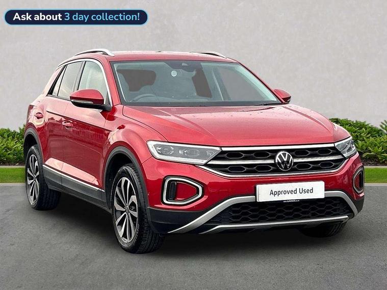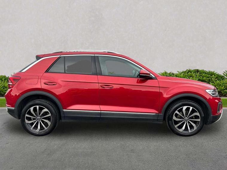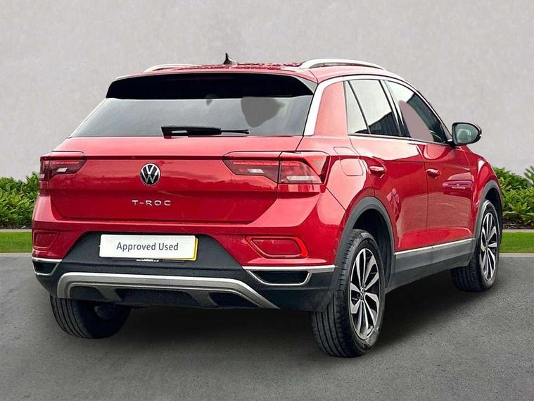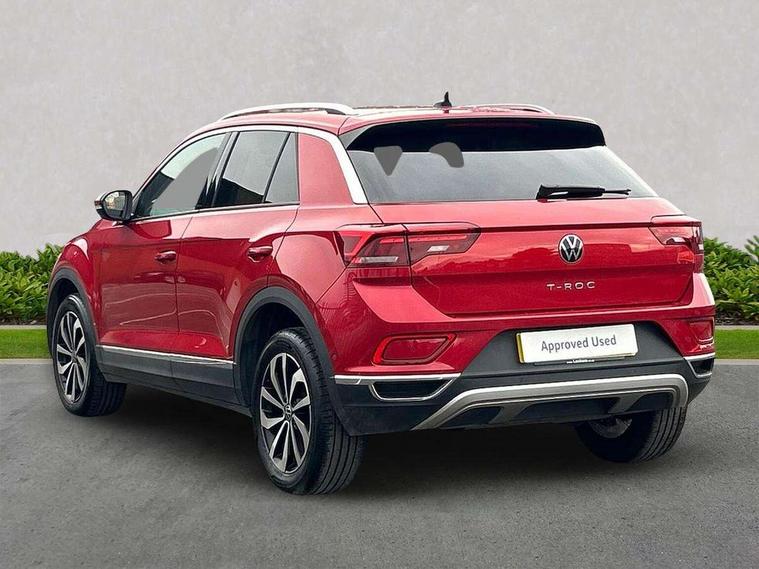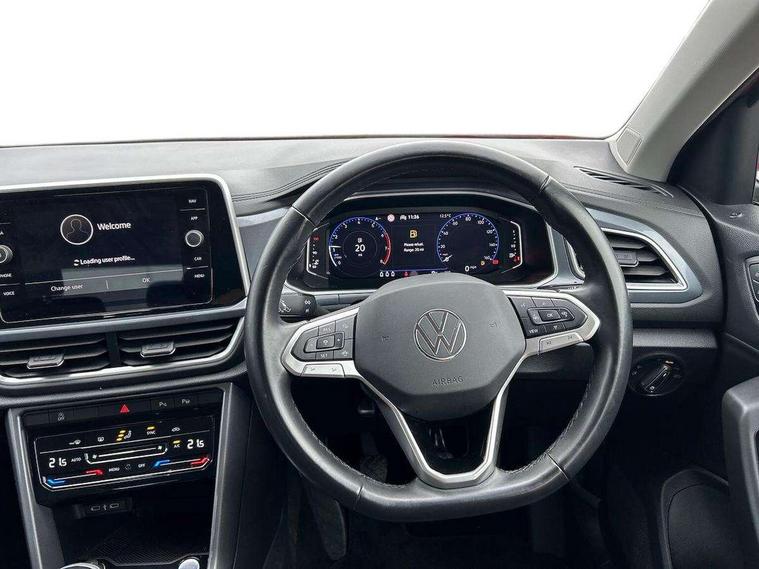 10.25" Digital cockpit pro, Bluetooth mobile phone interface, Driver alert system with fatigue detection, Driver tips and journey analysis, Dynamic road sign display, Emergency call service, Lane keeping system Lane Assist, Modified key software - reduce switch off time for key status change to Long no motion, Online services, Park assist including front and rear parking sensors, Power assisted speed sensitive steering, Service interval indicator, Tailgate/trunk lid release from outside, Think blue trainer driver tips and journey analysis, Warning sound and light for front seatbelts unfastened, Wireless app connect, Battery regeneration during braking, Front shock absorption, Rear shock absorption chassis with increased ride height, Start/stop function with battery regeneration, Diversity antenna for FM reception, Front and rear 6 speakers, Music playback - MP3, WMA and AAC files, Premium USB cable in choice of either Apple or Android smartphone compatibility, SD card slot, Simultaneous pairing of 2 compatible mobile devices, Title and cover art display, We Connect and We Connect Plus functionality, 3rd brake light, Auto dimming interior rear view mirror, Automatic hazard lights activation under emergency braking, Automatic headlight control with LED separate daytime running lights with coming/leaving home function, Body colour sports bumpers with silver metallic underbody fascia, Dynamic headlight range control with self adjusting whilst driving, Extended roof spoiler, Exterior mirrors aspherical on driver side, convex on front passenger side, External USB type C socket and charging sockets, Front windscreen wiper with intermittent wipe and 4 position delay, Heated rear window, LED Plus headlamps, LED rear combination lamps, LED rear number plate lights, LED tail lamp rear comination lamps, Light mode for poor weather, rain, fog or snow, Power windows with comfort operation and circuit breaker, Rain sensor, Rear exhaust tailpipe, Rear fog light on one side and reversing lights on both sides, Rear side wing doors, Rear wash/wipe with intermittent wipe setting, Remote electrically foldable door mirrors, puddle lights and reverse activated passenger's door mirror, 12V power socket in centre console, 3 rear head restraints, 3 seat bench in 2nd row, 4 load lashing points in luggage compartment, Air care climatronic air conditoning system with active combination filter and 2-zone temperature control, Chrome plated radiator grille inserts, air vent surrounds and light switch surrounds, Door and side trim panel with leatherette insert, Drawer under drivers seat, Front + rear carpet mats, Front centre armrest, Front comfort sports seats, Front cupholders x 2, Front footwell illumination, Instrument lighting, white adjustable panel illumination, Interior ambient lighting and surround lighting, Interior light delay, Isofix child seat preparation, Leather gearshift handle, LED interior light with switch off delay/dimmer and 2 front/rear LED reading lights, Load-through provision with cup holder when folded down ('Unsplit rear seat bench, split folding backrest, with centre armrest), Luggage compartment lighting, Non-folding front passenger seat backrest, Single front passenger seat, Storage compartment in left and right luggage area, Storage compartment in rear doors, Storage compartments in driver and front passenger doors, Sunvisors with illuminated vanity mirrors, Variable boot floor, height adjustable and removable, Driver assistance pack without proactive passenger protection - T-Roc, 3 point height adj front seatbelts + pretensioners, 3 point seatbelts in outer rear with ECE label, ABS, Child locks on rear doors, Driver and front passenger airbag with front passenger airbag deactivation, Driver and front passenger safety-optimised head restraints, Drivers seatbelt reminder, Electronic parking brake, Electronic Stability Control (ESC) inc EDL (Electronic Differential Lock) and ASR (Traction Control), Front and rear passengers curtain airbag system including front side airbags, Front assist with city emergency braking and pedestrian monitoring, Front disc brakes, Front seat side impact airbags, Predictive pedestrian protection, Rear disc brakes, Single tone horn, Tyre pressure loss indicator, Volkswagen roadside assistance, Alarm with interior protection, Anti-theft alarm system with interior monitoring, backup horn, and towing protection, Remote central locking with SAFELOCK, radio remote control with 2 remote control folding keys, Trims for alloy wheels,