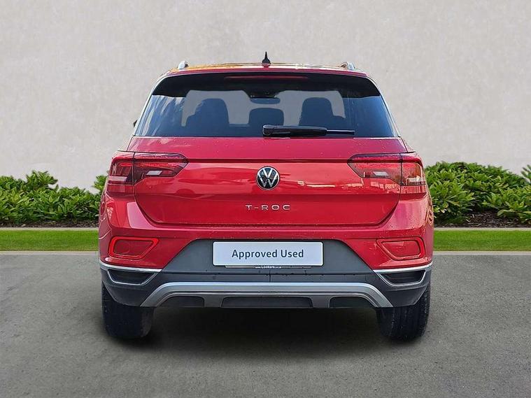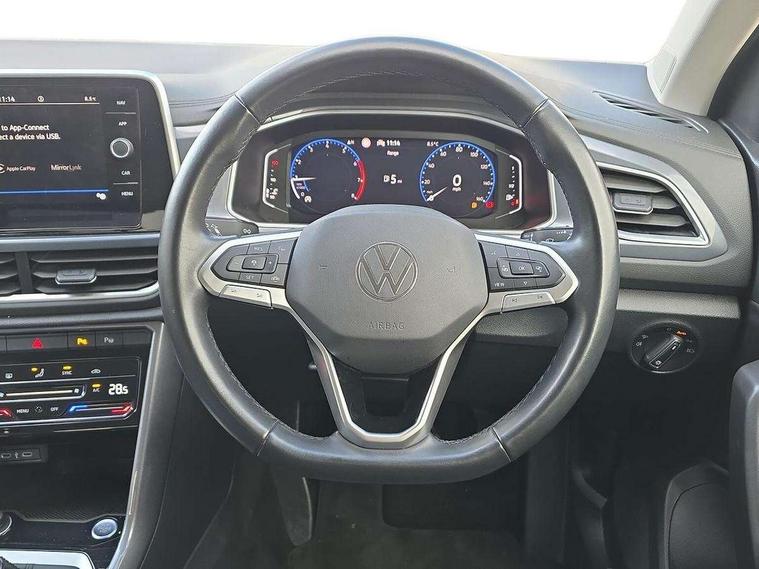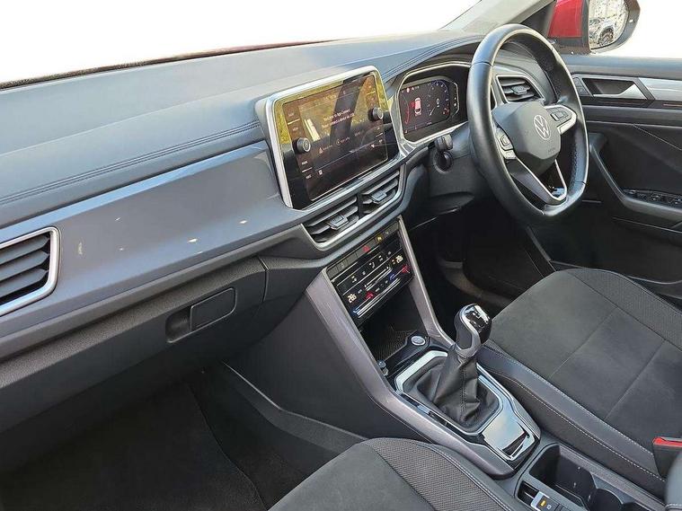 10.25" Digital cockpit pro, Bluetooth mobile phone interface, Driver alert system with fatigue detection, Driver tips and journey analysis, Emergency call service, Lane keeping system Lane Assist, Modified key software - reduce switch off time for key status change to Long no motion, Online services, Park assist including front and rear parking sensors, Service interval indicator, Tailgate/trunk lid release from outside, Think blue trainer driver tips and journey analysis, Warning sound and light for front seatbelts unfastened, Wireless app connect, Battery regeneration during braking, Start/stop function with battery regeneration, Diversity antenna for FM reception, Front and rear 6 speakers, Music playback - MP3, WMA and AAC files, Premium USB cable in choice of either Apple or Android smartphone compatibility, SD card slot, Simultaneous pairing of 2 compatible mobile devices, Title and cover art display, We Connect and We Connect Plus functionality, 3rd brake light, Auto dimming interior rear view mirror, Automatic hazard lights activation under emergency braking, Automatic headlight control with LED separate daytime running lights with coming/leaving home function, Body colour sports bumpers with silver metallic underbody fascia, Dynamic headlight range control with self adjusting whilst driving, Extended roof spoiler, Exterior mirrors aspherical on driver side, convex on front passenger side, External USB type C socket and charging sockets, Front windscreen wiper with intermittent wipe and 4 position delay, Heated rear window, LED Plus headlamps, LED rear combination lamps, LED rear number plate lights, LED tail lamp rear comination lamps, Light mode for poor weather, rain, fog or snow, Power windows with comfort operation and circuit breaker, Rain sensor, Rear exhaust tailpipe, Rear fog light on one side and reversing lights on both sides, Rear side wing doors, Rear wash/wipe with intermittent wipe setting, Remote electrically foldable door mirrors, puddle lights and reverse activated passenger's door mirror, 12V power socket in centre console, 3 rear head restraints, 3 seat bench in 2nd row, 4 load lashing points in luggage compartment, Air care climatronic air conditoning system with active combination filter and 2-zone temperature control, Chrome plated radiator grille inserts, air vent surrounds and light switch surrounds, Door and side trim panel with leatherette insert, Drawer under drivers seat, Front + rear carpet mats, Front centre armrest, Front comfort sports seats, Front cupholders x 2, Front footwell illumination, Instrument lighting, white adjustable panel illumination, Interior ambient lighting and surround lighting, Interior light delay, Isofix child seat preparation, Leather gearshift handle, LED interior light with switch off delay/dimmer and 2 front/rear LED reading lights, Load-through provision with cup holder when folded down ('Unsplit rear seat bench, split folding backrest, with centre armrest), Luggage compartment lighting, Non-folding front passenger seat backrest, Single front passenger seat, Storage compartment in left and right luggage area, Storage compartment in rear doors, Storage compartments in driver and front passenger doors, Sunvisors with illuminated vanity mirrors, Variable boot floor, height adjustable and removable, Driver assistance pack without proactive passenger protection - T-Roc, 3 point height adj front seatbelts + pretensioners, 3 point seatbelts in outer rear with ECE label, ABS, Child locks on rear doors, Driver and front passenger airbag with front passenger airbag deactivation, Driver and front passenger safety-optimised head restraints, Drivers seatbelt reminder, Electronic parking brake, Electronic Stability Control (ESC) inc EDL (Electronic Differential Lock) and ASR (Traction Control), Front and rear passengers curtain airbag system including front side airbags, Front assist with city emergency braking and pedestrian monitoring, Front seat side impact airbags, Predictive pedestrian protection, Rear disc brakes, Single tone horn, Tyre pressure loss indicator, Volkswagen roadside assistance, Alarm with interior protection, Anti-theft alarm system with interior monitoring, backup horn, and towing protection, Remote central locking with SAFELOCK, radio remote control with 2 remote control folding keys, Trims for alloy wheels,