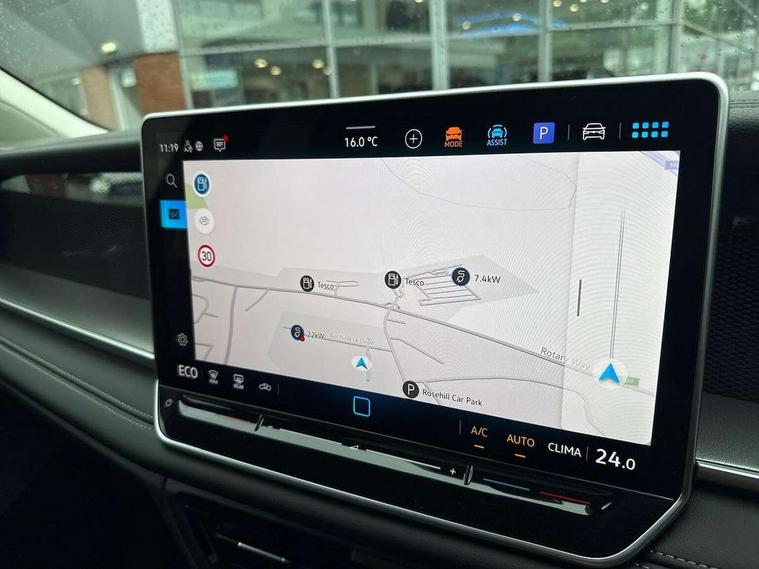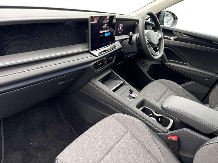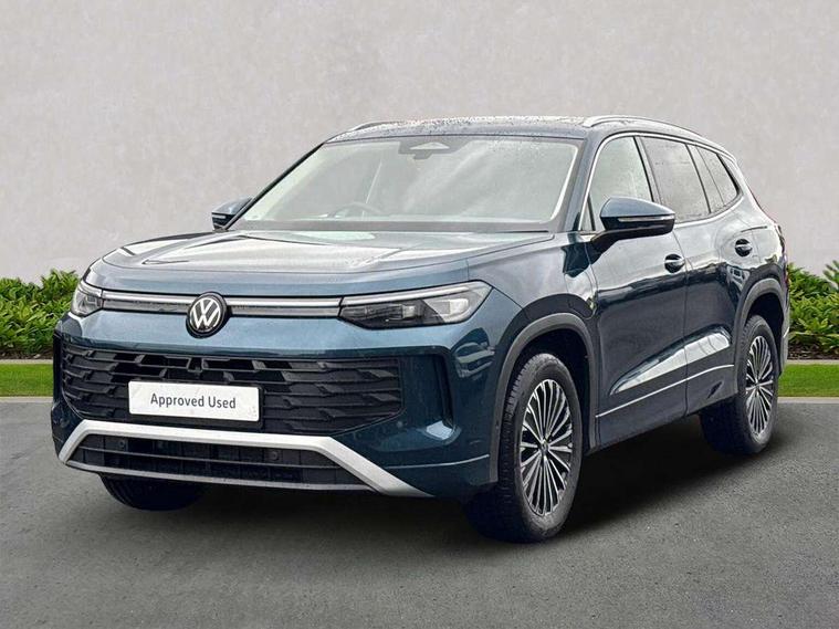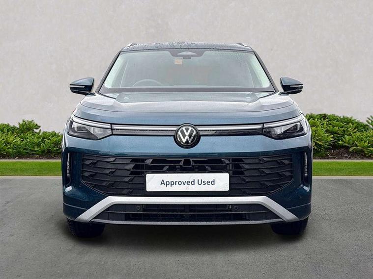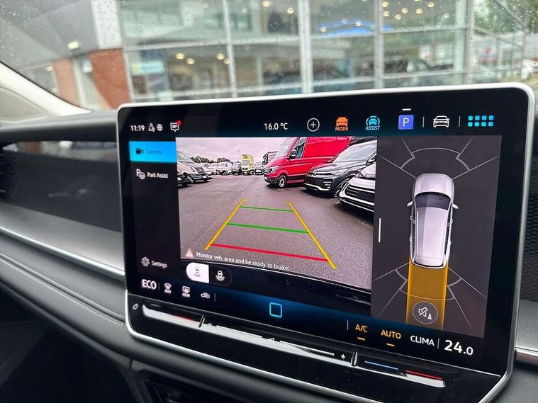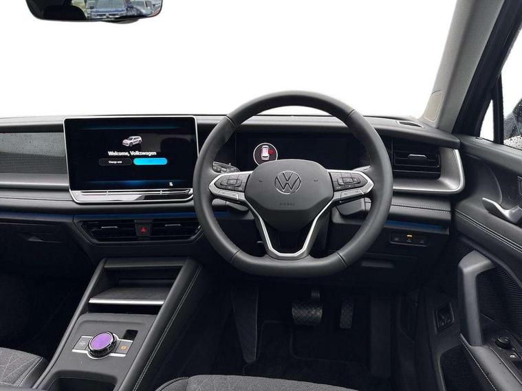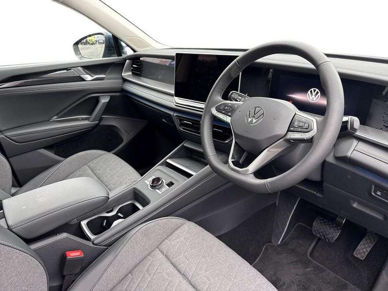 Adaptive cruise control (ACC), Digital Cockpit Pro - 10.25" high resolution dash display screen with customisable menus and information, Driver alert system, Driver attention monitoring system, Dynamic road sign display, E-Sim card for online connectivity, eCall emergency call system, Lane change system, Side assist, Rear traffic alert and Exit warning system, Multifunction front facing camera, Oncoming vehicle braking when turning including swerve support, Power assisted steering with speed sensitive, Start/stop system with regenerative braking, Voice activation spoken voice commands for telephone and navigation system, Warning signal and warning light for front and rear seatbelts not fastened, Wireless App-Connect, Adaptive chassis control DCC pro includes driving mode selection, Charging cable Mode 2 Type 2 / G (10A), Charging cable Mode 3 Type 2 / 3 (16A), Front shock absorption G08, Front wheel drive, Rear shock absorption, Digital radio reception (DAB), Diversity antenna for FM reception, Auto dimming interior rear view mirror, Automatic headlight control system, Body colour door handles, Body-coloured exterior mirror housings, Chrome moldings on the side windows, Comfort bumpers, Coming/leaving home lighting function, Exterior mirrors convex on the left and aspherical on the right, Heat insulating glass in side and rear windows, Laminated safety glass winshield, heat insulating, LED 3rd brake light, Puddle lights, Rain sensor windscreen wipers, Rear fog light on one side, reversing light on both sides, Rear side wing doors, Rear wiper, Reverse activated passenger's door mirror, Surround lighting with welcome light, Tilting and sliding panoramic sunroof with rear panoramic sunroof, 12V outlet in center console rear and in luggage compartment, 3 rear headrests, 3 rear seat bench in 2nd row, split folding, longitudinally movable and folding with load-through hatch, Carpet mats, front and rear, Centre console with illuminated storage compartment with sliding cover and two drinks holders, Door and side trim panel with leatherette insert, Flat luggage compartment floor, Front centre armrest, ISOFIX anchors for child seats on outer rear seats and front passenger seat compatible with i-Size, Mechanical rear seat release, Power adjustable lumbar support in front, Single front passenger seat, Sun visors with illuminated vanity mirrors, Comfort package with park assist pro - Tayron, 3 Point seat belts in front with pretensioners, 3 point seatbelts in outer rear with ECE label, Autonomous emergency braking front assist with pedestrian and cyclist monitoring, Driver and front passenger airbag with front passenger airbag deactivation, Electronic parking brake with auto hold, First aid kit with warning triangle and safety vest, Front and rear curtain airbags, Front and rear side airbags, Front centre airbag, Front disc brakes, Hill start assist, Rear disc brakes, Two tone horn, Decorative material set, Tool kit for tyre mobility set, Tyre mobility kit including compressor and sealing foam. In lieu of spare wheel,