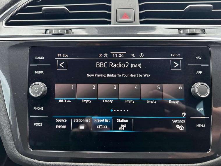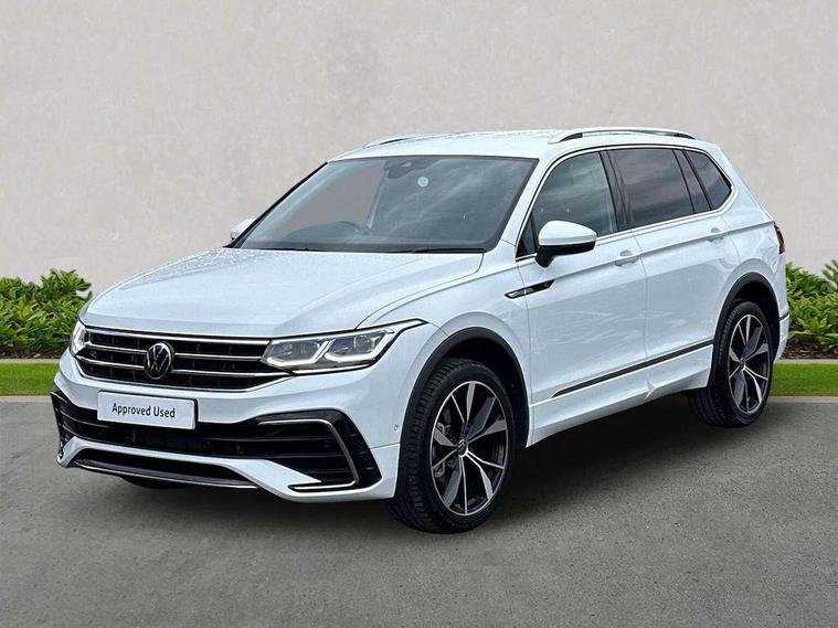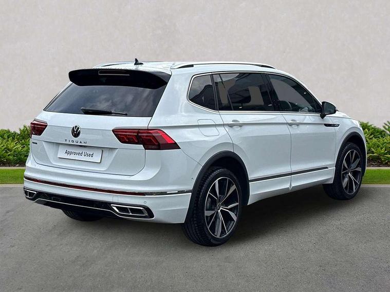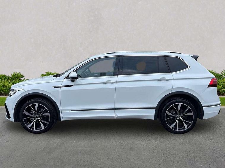 Adaptive cruise control, Advanced driver attention and drowsiness monitor, App-Connect, Digital cockpit pro, Driver profile selection, eCall emergency call service, Electric boot lid, Lane change assist, Lane keeping system Lane Assist, Mobile phone interface comfort with inductive charging feature, Multifunction front facing camera, Progressive steering, Speedo and rev counter, electronic odometer, trip, service interval display and exterior temperature gauge, Diesel particulate filter, Front wheel drive, Start-stop system with battery regeneration (recuperation - energy recovery during braking), 2 USB-C ports in the front, 1 USB-C charging socket on the center console in the rear, DAB Digital radio, Diversity antenna for FM reception, Auto dimming interior rear view mirror, Automatic headlight control system, Chrome mouldings on side window, Coming/leaving home lighting function, Exterior badge deletion, Rain sensor, Rear fog light, Rear side wing doors, Rear spoiler in R style, Rear wiper, Silver roof rails, Third brake light, 12-volt outlet in centre console rear and luggage compartment, 12V socket in centre console, 3 head restraints in rear, 3 individual folding 2nd row seats, 3rd row 2 individual seats, Air Care Climatronic 3 zone automatic climate control with enhanced air filter and controls in the rear, Black roof lining, Door and side trim panel with leatherette insert, Drawers under front seats, Driver + front passenger lumbar support, Driver and front passenger seat height adjustment, Foldable front passenger seat backrest, Front + rear carpet mats, Front centre armrest, Front footwell illumination, Illuminated scuff plates, ISOFIX anchorage points for mounting 2 child seats on rear seats and i-Size child seats, Leather gearshift handle, Leather wrapped multi function sports steering wheel with touch control and shifting paddles, LED interior light with switch off delay/dimmer and 2 front/rear LED reading lights, Stainless steel pedals, Sun visors with illuminated vanity mirrors, Top comfort sports seats in front with 'R' Logo, Ambience pack - Tiguan Allspace R Line, Driver assistance plus package - Tiguan Allspace, Park assist pack - Tiguan Allspace, 3 point seat belt for centre rear seat, 3 rear three point seatbelts, ABS+EBD+Brake assist, Driver and front passenger safety-optimised head restraints, Driver's and front passenger's airbag with front passenger's airbag deactivation switch, Electronic parking brake, Electronic Stability Control (ESC) inc EDL (Electronic Differential Lock) and ASR (Traction Control), Height adjustable front 3 point seatbelts + pretensioners, Manual rear child locks, Pedestrian monitoring, Rear disc brakes, Side airbag in front and rear with curtain airbag, Two tone horn, Warning buzzer for seatbelts if unfastened, Anti theft alarm system with interior monitoring, backup horn and towing protection, Anti-theft wheel bolts, Remote central locking with 2 remote folding keys,