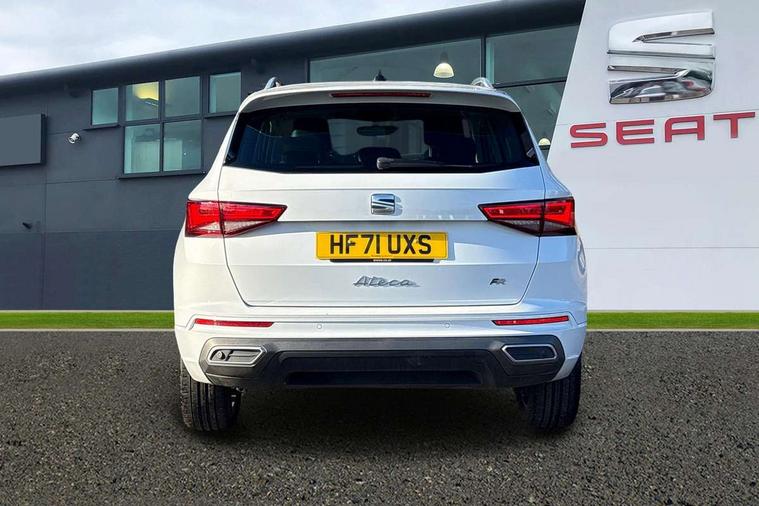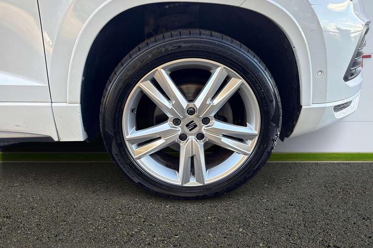 Cruise control system with speed limiter, Outside temperature gauge, Progressive power assisted steering, SEAT drive profile with driving experience button - Normal, Sport, Eco and Individual mode, gearshift, steering and throttle response, Self parking functionality (includes front and rear parking sensors), Trip computer, Wireless phone charger, Steering wheel mounted audio/phone controls, Body colour bumpers, Body coloured wheel arch surrounds, Chrome roof rails, Chrome side window trim, Cosmo grey front grille frame, Dark tinted rear windows, Daytime running lights, Door mirrors with welcome light silhouette, Dynamic headlight range control with self adjusting whilst driving, Electric adjustable/heated/folding door mirrors, Front and rear electric windows, Full LED headlamps with lens and LED front fog lamps with cornering function, Illuminated aluminium front door sill, LED rear tail lights with dynamic indicators, Rear fog lights, Rear spoiler, Rear wash/wipe, Simulated exhaust pipes in chrome frame, 12v socket in front, 60/40 split folding rear seat, Aluminium pedals, Dual zone climate control, Front and rear head restraints, Front centre armrest, Front seat back storage pockets, Height adjustable driver and passenger seat with lumbar adjustment, ISOFIX points in outer rear seats with top tether anchorage points, Leather steering wheel and gear knob, Microsuede upholstery with front sports seats, Rear armrest and easy back seat release mechanism from boot, Steering wheel mounted gearshift paddles, Storage compartment under driver's seat, Convenience pack - Ateca, Interior lighting pack - Ateca, Navigation system pack with DAB - Ateca, 3x3 point rear seatbelts, ABS, Traction control system (TCS), Electronic stability control (ESC) and Electronic differential lock system (XDS), Airbags - Driver and front passenger airbag with deactivation, front side, two curtain and driver's knee airbags, Electric parking brake with auto hold function, Front and rear seatbelt reminder, Front assist with autonomous emergency braking, Hill hold control, Tiredness recognition system, Traction control, Tyre pressure monitoring system, Alarm, Keyless entry, Locking wheel bolts, Wireless full link smartphone integration, Chrome interior detailing, 18" Brillaint silver alloy wheels,