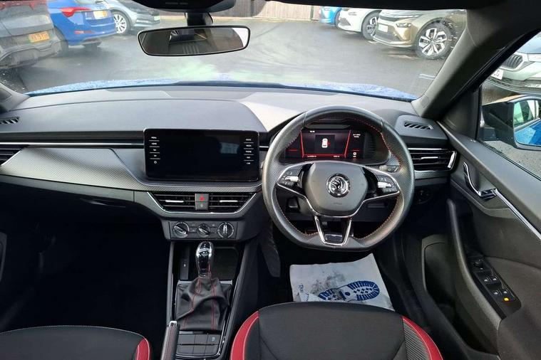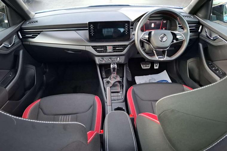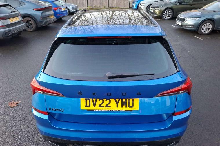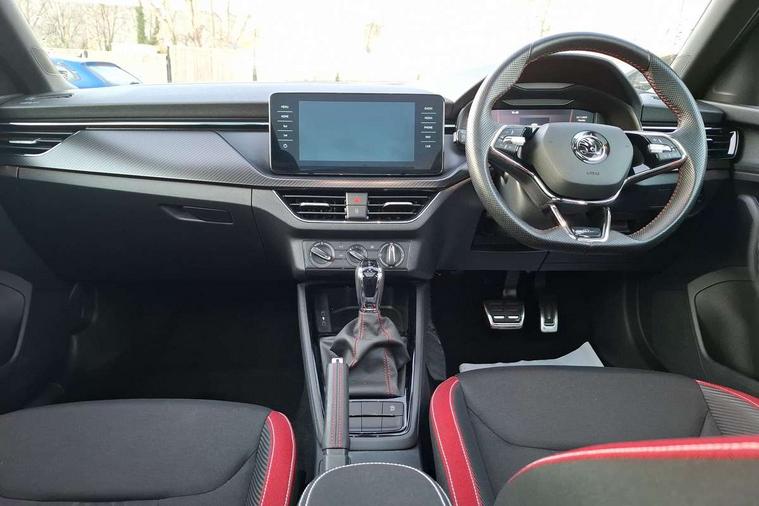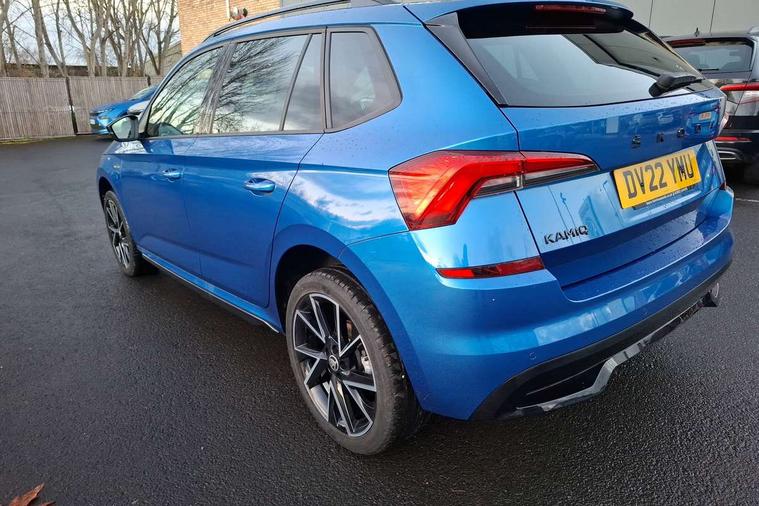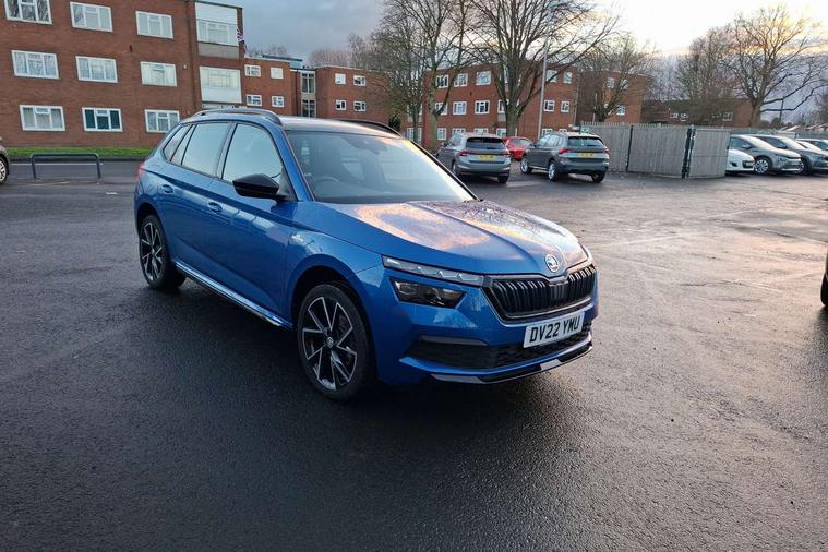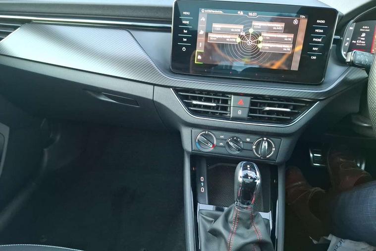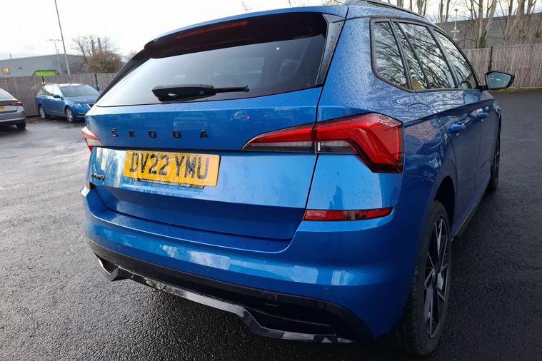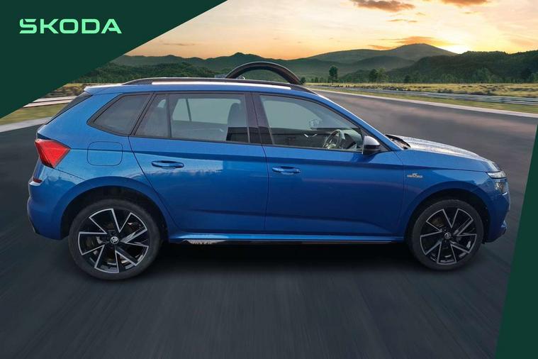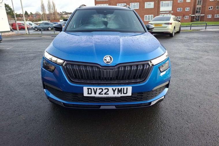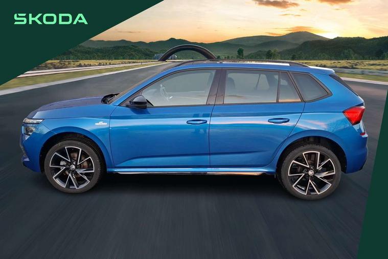 Amundsen satellite navigation with 9.2" touchscreen display, voice control, virtual cockpit and web radio, Bluetooth system, E-call, Front assist system, Gesture control, PAS, Service indicator, Speed limiter, Virtual cockpit with 10.25" display, Wireless SmartLink for apple car play, android auto and mirrorlink, 8 Speakers, Auxiliary input socket, DAB Digital radio, Black door mirrors, Black radiator grille, Black rear diffuser, Body colour bumpers, Body colour door handles, Body colour roof spoiler, Boot lettering in black, Chrome grille surround, Dimming rear view mirror with black surround, Electrically adjustable and heated door mirrors, Fixed panoramic sunroof with black roof rails, Front and rear electric windows, Front sport bumper, Full LED headlights with adaptive front light system and front cornering fog lights, Headlight range control, Heated rear window, KAMIQ Door sills, LED daytime running lights, LED rear lights - low functionality, Light sensors, Monte carlo plaque, Privacy glass, Rear fog lights, Rear side wing doors, Rear wiper, 12V Accessory socket in centre console, 3 seat bench in 2nd row, Aluminium pedals, Black ceiling for black/beige interior, Chrome inner door handles, Cloth upholstery, Front head restraints, Glove compartment with illumination, Ice scraper, Isofix child seat fittings on outer rear seats, ISOFIX on front passenger seat, Leather gear lever, Manual lumbar support for front seats, Rake/reach adjustable steering wheel, Reading lights, Single front passenger seat, Sports seats, Sun visors with illumination on front passenger, Textile floor mats, Third rear headrest, Top tether for front passenger seat, Umbrella in driver's door, 3x3 point rear seatbelts, Airbags - driver and front passenger, ESP, Front passenger airbag deactivation switch, Front side airbags with curtain airbags, Hill hold control, Manual parking brake, Manual rear child locks, One tone horn, Rear disc brakes, Seatbelt reminder for driver an co-driver, Traction control, Tyre pressure monitor, Anti-theft alarm system with interior monitoring, backup horn, towing protection and remote central locking with SAFE system, Anti-theft wheel bolts, Electronic engine immobilizer, Chrome air vent surrounds, 18" Vega alloy wheels in black,