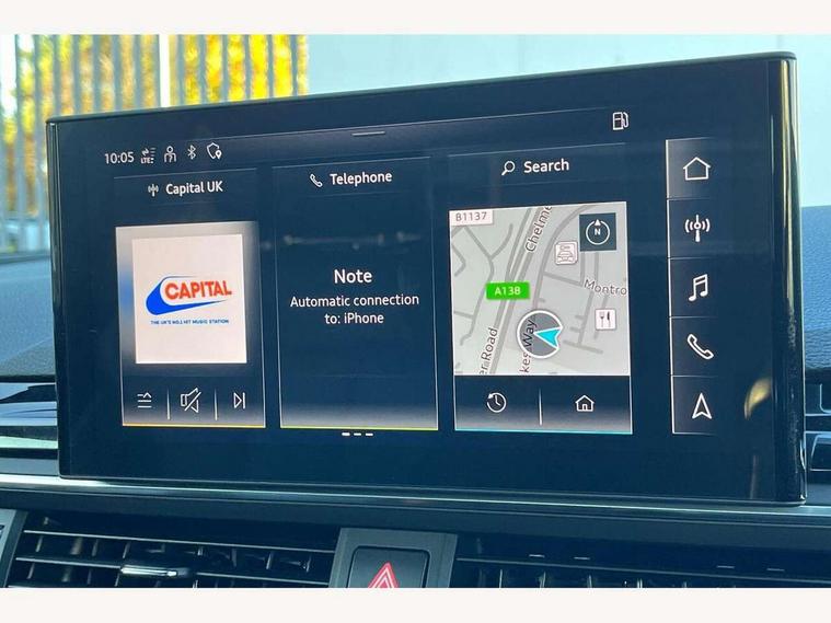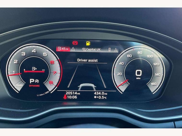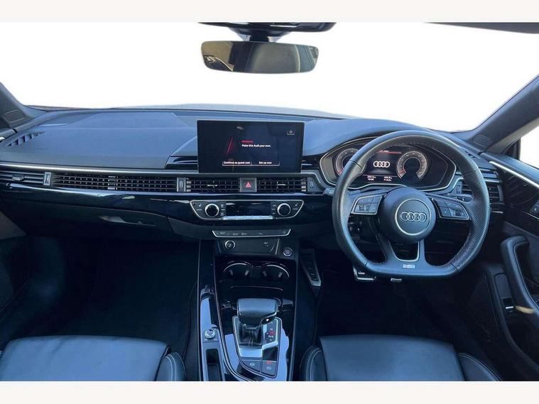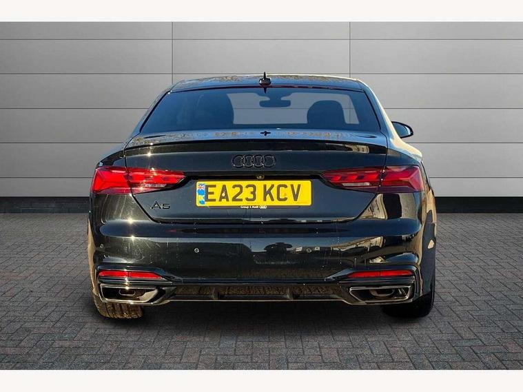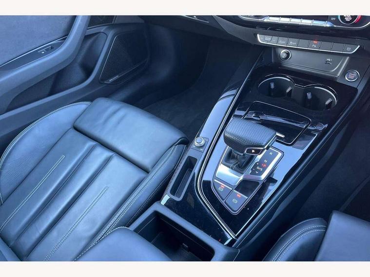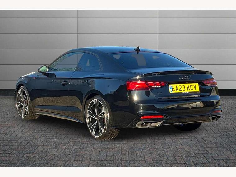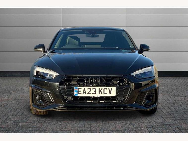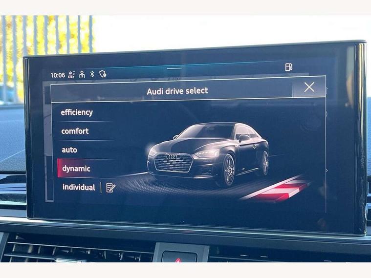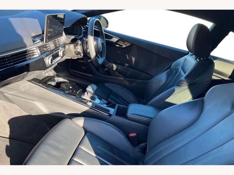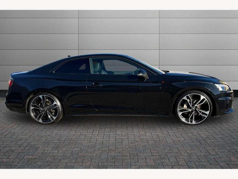 Audi connect safety and service (e-call), Audi connect with Amazon Alexa Integration, Audi drive select (Auto, Comfort, Dynamic, Efficiency and Individual), Audi parking system plus with front and rear sensors, Audi smartphone interface, Audi virtual cockpit - 12.3" full colour digital instrument cluster, vehicle/engine speed, Radio/media information+Driver assistance systems, Automatic start-stop system with coasting functionality and efficiency programme, Bluetooth interface, Electric boot lid release, Electro-mechanical power steering, Email, calendar and text messages displayed via MMI, MMI nav+ with MMI touch - 10.1" high resolution MMI display, touch sensitive, 3D map, route/country info, dynamic route guide, personal route assist, Rear view camera, Service interval indicator, Voice control system, Sports suspension lowered by 23mm, 8 passive loudspeakers, CD player, DAB digital radio reception, Two additional USB ports for rear passenger in rear centre console, Two SDXC card slots, Audi Beam uses LEDs to project the Audi logo, Audi matrix LED headlights with LED rear lights + dynamic front and rear indicators, Auto dimming door mirrors, Auto dimming rear view mirror, Black door mirror housings, Body colour door handles, Body colour front spoiler lip, Body colour side sill trim, Electric adjustable heated door mirrors, Electric folding door mirrors, Electric front windows, Exhaust tailpipe trims in dark chrome, Front and rear bumpers with side skirts, Front fog lights, Honeycomb structure radiator grille in grained matt black, Kerb-view function for passenger side, LED daytime running lights, LED side indicator lights integrated into door mirrors, LED third brake light, Privacy glass, Rain and light sensors, Rear boot, Rear diffuser in matt anthracite black with trim strip in matt aluminium silver, Rear side wing doors, S model rear spoiler in black, Side air inlets in grained matt black with matt aluminium silver inlay, Variable front intermittent wipers, Windscreen with acoustic glazing, 2 seat bench in 2nd row, 4 way electric lumbar support for driver and front passenger, 40/20/40 split folding 2 seater rear seat bench with rear centre armrest, Adjustable steering column, Black cloth headlining, Black perforated leather gearknob, Contrast stitching on seats, steering wheel and gear lever gaiter, Deluxe 3 zone electronic climate control, Front centre armrest, Front head restraints, Front/rear floor mats, Heated front seats, Illuminated door sill trim with S logo, ISOFIX child seat mounting and top tether, Luggage compartment mat, Manual seat adjustment, Rear headrests, Single front passenger seat, Stainless steel pedals, Sunvisors with vanity mirrors, Black styling pack - A5 Coupe/Sportback, LED interior light pack - A5/RS5, 2 x 3-point rear seatbelts, 6 airbags - Driver, front passenger, curtain and side airbags, Electromechanical parking brake, Electronic Stabilisation Control (ESC) including ABS, ASR and EDL, Front passenger airbag deactivation, Height adjustable front seatbelts, Hill hold assist, Multi collision brake assist, Pop-up bonnet for pedestrian protection, Pre sense city, Seatbelt monitoring, Tyre pressure warning, Variable restraint system, Warning triangle and first aid kit, Anti theft alarm system, Anti theft wheel bolts, Immobiliser, Keyless Go, Remote central locking, Piano black finish inlay, 20" 5 twin spoke polygon design alloy wheels in gloss anthracite black and gloss turned finish, Tool kit, Tyre repair kit,