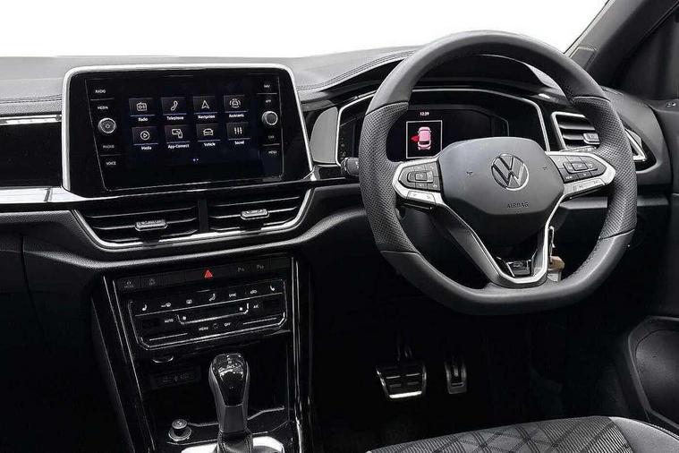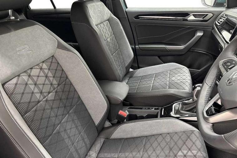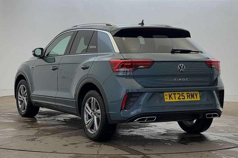 10.25" Digital cockpit pro, Advanced driver attention and drowsiness monitor, Emergency call service, Lane keeping system Lane Assist, Mobile phone interface, Modified key software - reduce switch off time for key status change to Long no motion, Online services, Park assist including front and rear parking sensors, Service interval indicator, Tailgate/trunk lid release from outside, Think blue trainer driver tips and journey analysis, Warning sound and light for front seatbelts unfastened, Wireless app connect, Battery regeneration during braking, Start/stop function with battery regeneration, DAB Digital radio, Diversity antenna for FM reception, Front and rear 6 speakers, Music playback - MP3, WMA and AAC files, Premium USB cable in choice of either Apple or Android smartphone compatibility, SD card slot, Simultaneous pairing of 2 compatible mobile devices, Title and cover art display, We Connect and We Connect Plus functionality, Auto dimming interior rear view mirror, Automatic hazard lights activation under emergency braking, Automatic headlight control with LED separate daytime running lights with coming/leaving home function, Body coloured exterior mirror housings and door handles, Electrically adjustable and heated door mirrors, Extended roof spoiler, Exterior mirrors aspherical on driver side, convex on front passenger side, External USB type C socket and charging sockets, Front windscreen wiper with intermittent wipe and 4 position delay, Heated rear window, LED 3rd brake light, LED rear combination lamps, LED rear number plate lights, Power windows with comfort operation and circuit breaker, Privacy glass for rear side windows and rear window, R-Line design body coloured bumpers, Rain sensor, Rear exhaust tailpipe, Rear fog light on one side and reversing lights on both sides, Rear side wing doors, Rear wash/wipe with intermittent wipe setting, Remote electrically foldable door mirrors, puddle lights and reverse activated passenger's door mirror, 12V power socket in centre console, 3 rear head restraints, 3 seat bench in 2nd row, 4 load lashing points in luggage compartment, Air care climatronic air conditoning system with active combination filter and 2-zone temperature control, Black roof lining, Chrome plated decorative trims, Chrome plated radiator grille inserts, air vent surrounds and light switch surrounds, Door and side trim panel with leatherette insert, Front + rear carpet mats, Front centre armrest, Front cupholders x 2, Front footwell illumination, Front reading light, Front scuff plates with R Line logo, Front seat back storage pockets, Glove compartment door with light, Instrument lighting, white adjustable panel illumination, Interior ambient lighting and surround lighting, Interior light delay, Isofix child seat preparation, Leather gearshift handle, Load-through provision with cup holder when folded down ('Unsplit rear seat bench, split folding backrest, with centre armrest), Luggage compartment lighting, Single front passenger seat, Stainless steel pedals, Storage compartment in left and right luggage area, Storage compartment in rear doors, Storage compartments in driver and front passenger doors, Sunvisors with illuminated vanity mirrors, Variable boot floor, height adjustable and removable, Driver assistance pack without proactive passenger protection - T-Roc, 3 point height adj front seatbelts + pretensioners, 3 point seatbelts in outer rear with ECE label, ABS, Child locks on rear doors, City emergency braking and pedestrian monitoring, Driver and front passenger airbag with front passenger airbag deactivation, Driver and front passenger safety-optimised head restraints, Drivers seatbelt reminder, Electronic parking brake, Electronic Stability Control (ESC) inc EDL (Electronic Differential Lock) and ASR (Traction Control), Front and rear passengers curtain airbag system including front side airbags, Hill start assist, Predictive pedestrian protection, Rear disc brakes, Two tone horn, Tyre pressure loss indicator, Volkswagen roadside assistance, Piano black decorative inserts in dashboard and front door trim panels, Trims for alloy wheels,