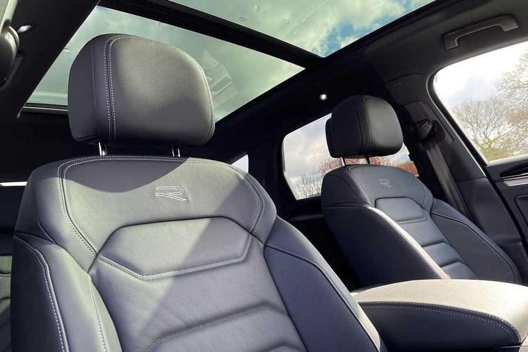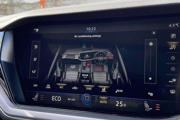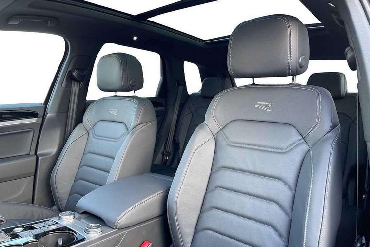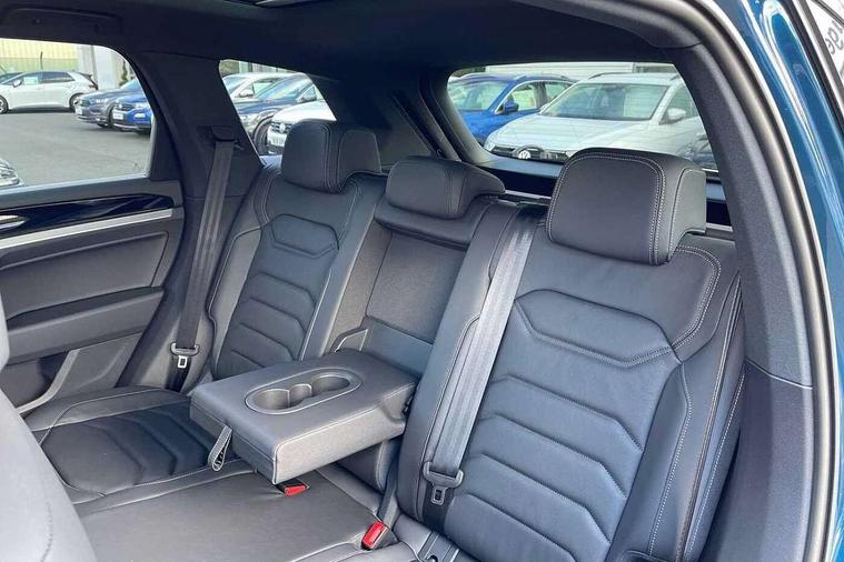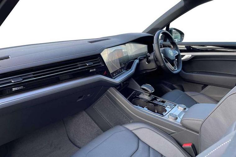 2D/3D map view, ACC - Adaptive cruise control with front assist, forward collision warning, distance monitoring, city emergency brake and speed limiter, Apple car play/Android Auto, Audible and visual fatigue detection system, Bluetooth hands free telephone connection, Car information display, Drive select with Damper control, Driver alert system, Driver profile selection, Dynamic road sign display camera controlled system with visual warning for traffic and road signs, eCall emergency system, Fully electric tailgate + keyless entry and start, Instrument cluster, MirrorLink, Multifunction camera with lane assist, Multifunction computer premium with 7" colour display, One touch indicators with repeat function, Service interval indicator, Speed sensitive power steering, Start/stop system with regenerative braking, Tailgate power latch, Think blue trainer driver tips and journey analysis, Traffic sign recognition, Voice control system, Wireless Smartphone charger, 24 litre AdBlue tank, Torsen limited slip differential, DAB Digital radio, Dynamic navigation based on TMC+, Gesture control for infotainment system, Multi device interface (MDI) with illuminated USB-C connection, Music playback - MP3, WMA and AAC files, SD card slot, Simultaneous pairing of 2 compatible mobile devices, SMS functionality - read, compose and send SMS messages using touch-screen display, Title and cover art display, Volkswagen media control, Adaptive low beam for urban and motorway use, Auto dimming rear view mirror, Automatic coming/leaving home lighting function, Automatic headlights, Black anodised roof rails, Black door mirrors, Black rear diffuser, Black side window surrounds, Black upper and lower grille louvres extending into headlights and radiator grille, Body colour door handles, Body coloured wheel arches, C signature gloss black front air intake, Chromed tailpipe on the left and right integrated in the bumper with trapezoid design, Dusk sensor, Dynamic headlight range control, Electric front tilt/slide panoramic sunroof and fixed rear sunroof, Electrically power adjustable, heated, folding, auto dimming, front passenger exterior door mirror lowering function, Front and rear electric windows, Galvanised body, Gloss black finish B pillar, Gloss black rear diffuser, Headlight washers, Heat insulating darkened glass in side and rear windows, Heated windscreen washer jets, IQ.Light-LED matrix headlight, daytime running light with dynamic cornering light and indicator, LED rear fog light, LED rear number plate lights, Plastic scuff plates in door apertures, Poor weather light, Puddle lights, Rain sensor, Rear side wing doors, Rear wiper, 12V socket in front and rear centre console and boot, 2 Coat hooks on B pillar, 3 rear head restraints, 3 spoke sport heated leather multi-function sports steering wheel with gear shift paddles - generation 2, 4 way adjustable front head restraints, 4 way electric lumbar support for driver and front passenger, 4 zone climate control, 40:20:40 split folding slide/recline rear seat, B pillar vents, Black lower edge of door extending sills, Branded points of interest, Double sun visor for drivier and passenger with LED illuminated vanity mirrors, Electric luggage compartment cover, Folding rear centre armrest with 2 cupholders, Front + rear carpet mats, Front centre armrest with storage box, Gear shift indicator, Height/reach adjust steering wheel, Illuminated air conditioned glovebox, Isofix preparation for 2 rear child seats, Jack and tool kit, Leather trimmed gear knob with gloss black inlay/aluminum trim, Leatherette door trim, LED luggage compartment lighting, Load through provision, Luggage compartment with load lashing rings, Plastic loading edge protection, Rear seat remote release levers, Soul black headlining, Stainless steel pedals, Innovision cockpit pack - Touareg, 3 point front seatbelts with pre-tensioners, ABS, Active bonnet, Automatic post collision braking system, Curtain airbags, Driver/Front Passenger airbags, EBD + Brake Assist, EDL, Electronic parking brake with auto hold, ESC with ASR, Front seat side impact airbags, Hill descent control, Hill start assist, Passenger airbag deactivate switch, Seatbelt warning lamp and buzzer, Three 3 point rear seatbelts, Two tone horn, Volkswagen roadside assistance, Warning triangle and first aid kit, Alarm with interior monitoring in cab, backup horn and towing protection, Child security locks for front and rear doors, Electronic engine immobiliser, Remote central locking, Black decorative trims on the side windows, High gloss black centre console,