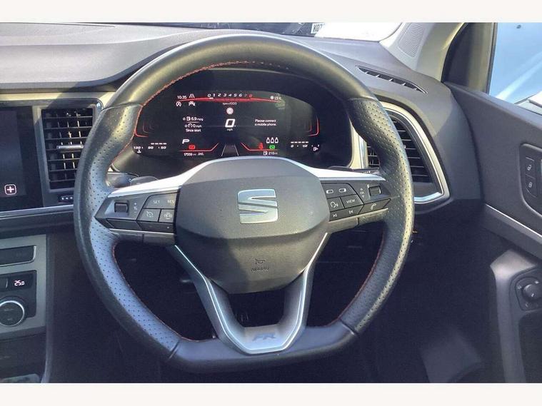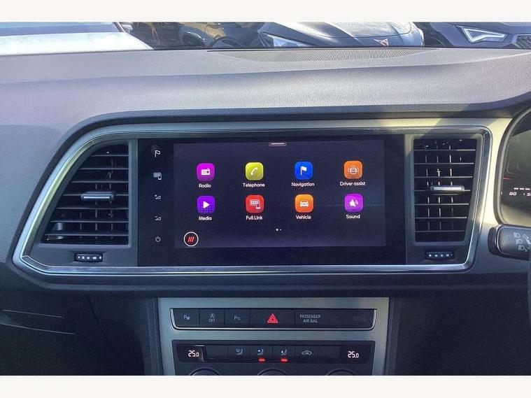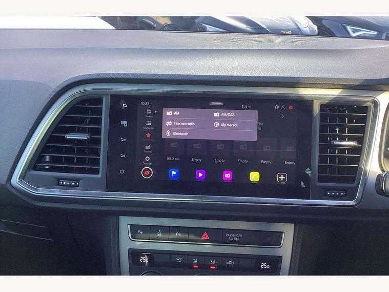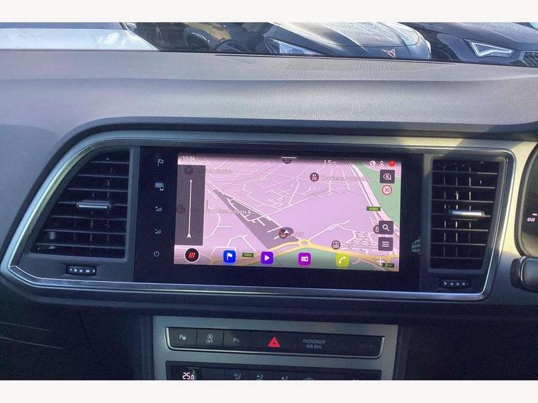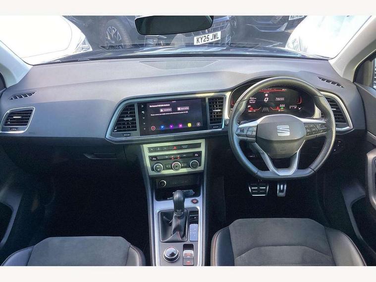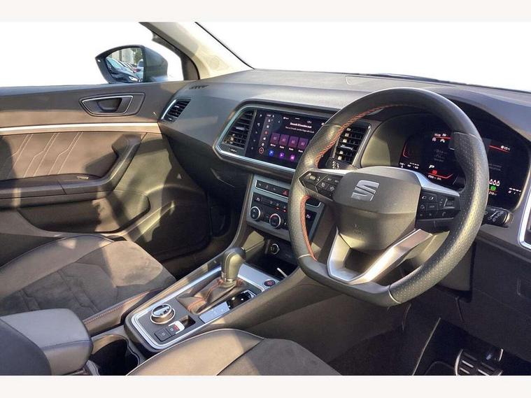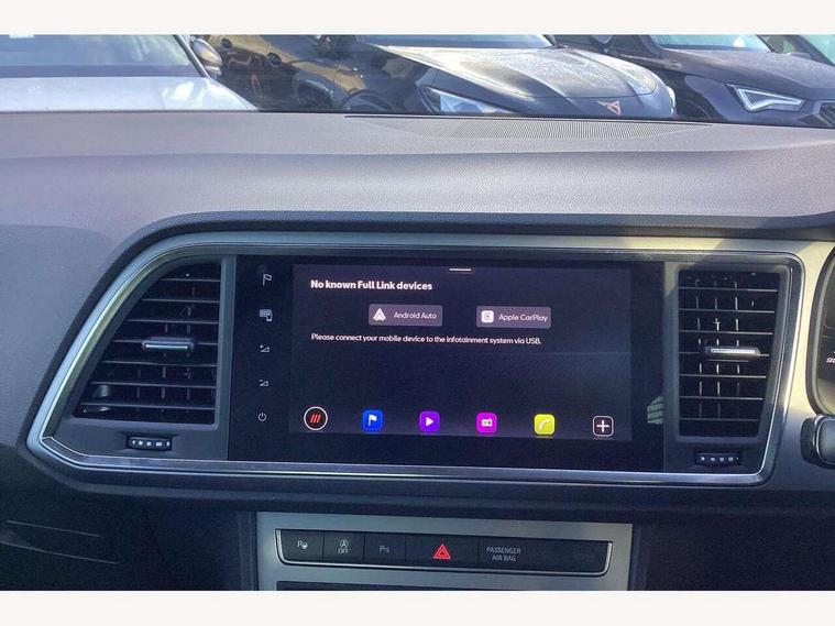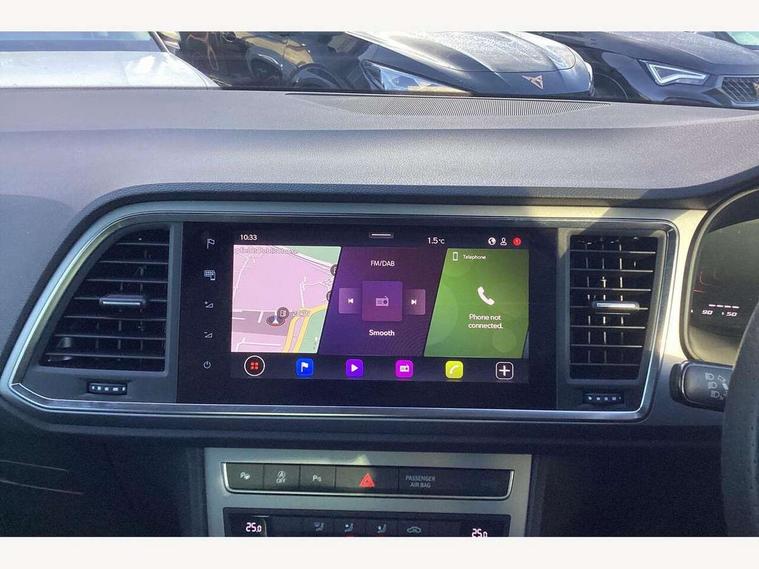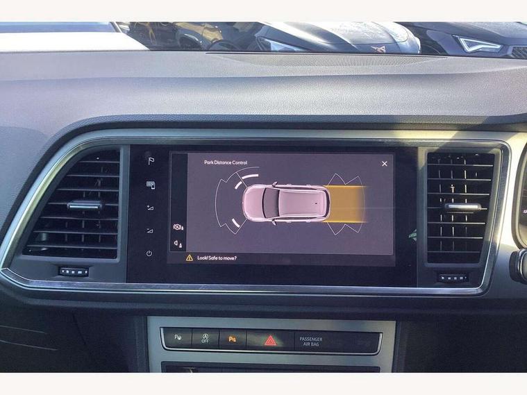 8" Digital cockpit, Colour multi-function on board computer display, Cruise control system with speed limiter, E-call, Outside temperature gauge, Progressive power assisted steering, SEAT drive profile with driving experience button - Normal, Sport, Eco and Individual mode, gearshift, steering and throttle response, Self parking functionality (includes front and rear parking sensors), Start/stop system, Tailgate, Trip computer, Wireless full link smartphone integration, Wireless phone charger, Steering wheel mounted audio/phone controls, Black roof rails, Black side window trim, Body colour bumpers, Body coloured wheel arch surrounds, Chrome front grille frame, Dark tinted rear windows, Daytime running lights, Door mirrors with welcome light silhouette, Dynamic headlight range control with self adjusting whilst driving, Electric adjustable/heated/folding door mirrors, Front and rear electric windows, Full LED headlamps with lens and LED front fog lamps with cornering function, Illuminated aluminium front door sill, LED 3rd brake light, LED rear tail lights with dynamic indicators, Rear exhaust tailpipe, Rear fog lights, Rear side wing doors, Rear wash/wipe, Roof spoiler, Variable front intermittent wipers, 12V socket in front, 3 seat bench in 2nd row, 60/40 split folding rear seat, Aluminium pedals, Dinamica upholstery with front comfort seats, Drawer under right front seat, Dual zone climate control, Front and rear head restraints, Front centre armrest, Front seat back storage pockets, Height adjustable driver and passenger seat with lumbar adjustment, ISOFIX points in outer rear seats with top tether anchorage points, Leather sports steering wheel and gear knob, Rear armrest and easy back seat release mechanism from boot, Single front passenger seat, Steering wheel mounted gearshift paddles, Convenience pack - Ateca, Interior lighting pack - Ateca, Navigation system pack with DAB - Ateca, Safety and driving pack with attention and drowsiness assist - Ateca, 3x3 point rear seatbelts, ABS, Traction control system (TCS), Electronic stability control (ESC) and Electronic differential lock system (XDS), Airbags - Driver and front passenger airbag with deactivation, front side, two curtain and driver's knee airbags, Electric parking brake with auto hold function, Front and rear seatbelt reminder, Front assist with autonomous emergency braking, Hill hold control, Manual rear child locks, Single tone horn, Tiredness recognition system, Tyre pressure monitoring system, Alarm, Keyless entry, Locking wheel bolts, Remote central locking, Chrome interior detailing, 18" Brillaint silver alloy wheels,