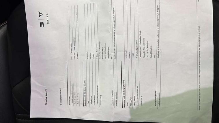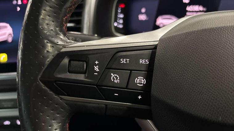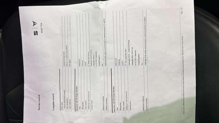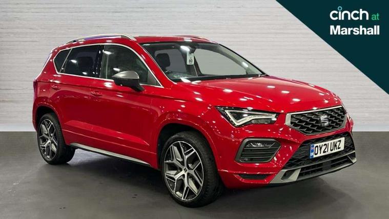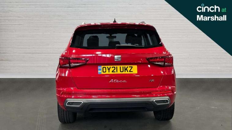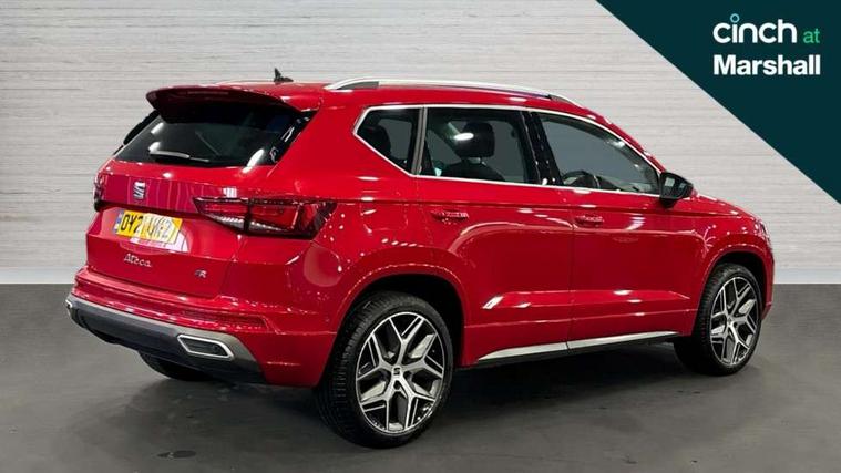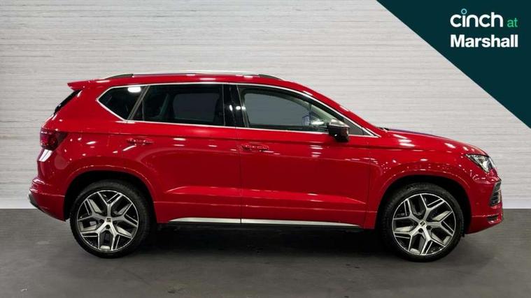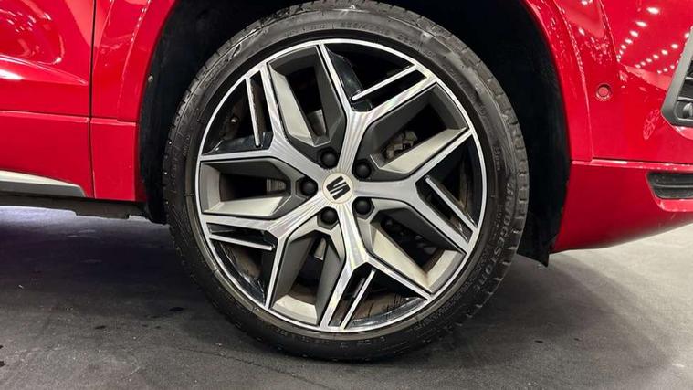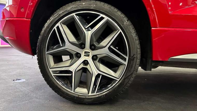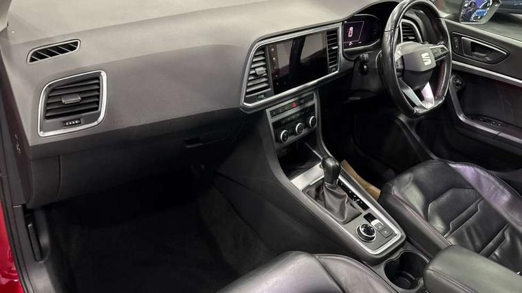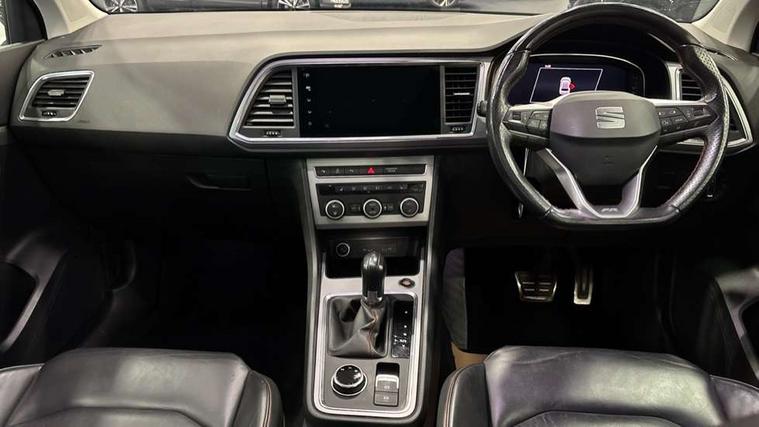 Cruise control system with speed limiter, Digital cockpit, Outside temperature gauge, Progressive power assisted steering, SEAT drive profile with driving experience button - Normal, Sport, Eco and Individual mode, gearshift, steering and throttle response, Self parking functionality (includes front and rear parking sensors), Trip computer, Wireless full link smartphone integration, Wireless phone charger, Steering wheel mounted audio/phone controls, Body colour bumpers, Body coloured wheel arch surrounds, Chrome roof rails, Chrome side window trim, Cosmo grey front grille frame, Dark tinted rear windows, Daytime running lights, Door mirrors with welcome light silhouette, Dynamic headlight range control with self adjusting whilst driving, Electric adjustable/heated/folding door mirrors, Front and rear electric windows, Full LED headlamps with lens and LED front fog lamps with cornering function, Illuminated aluminium front door sill, LED rear tail lights with dynamic indicators, Rear fog lights, Rear spoiler, Rear wash/wipe, Simulated exhaust pipes in chrome frame, 12V socket in front, 60/40 split folding rear seat, Aluminium pedals, Dual zone climate control, Electric adjustable driver seat with lumbar adjustment, Front and rear head restraints, Front centre armrest, Front seat back storage pockets, Heated front seats, Height adjustable passenger seats with lumbar adjustment, ISOFIX points in outer rear seats with top tether anchorage points, Leather steering wheel and gear knob, Leather upholstery with front sports seats, Multicoloured ambient lighting with LED interior illumination, Rear armrest and easy back seat release mechanism from boot, Steering wheel mounted gearshift paddles, Storage compartment in roof console for sunglass, Convenience pack - Ateca, Interior lighting pack - Ateca, Navigation system pack with DAB - Ateca, 3x3 point rear seatbelts, ABS, Traction control system (TCS), Electronic stability control (ESC) and Electronic differential lock system (XDS), Airbags - Driver and front passenger airbag with deactivation, front side, two curtain and driver's knee airbags, Electric parking brake with auto hold function, Front and rear seatbelt reminder, Front assist with autonomous emergency braking, Hill hold control, Tiredness recognition system, Traction control, Tyre pressure monitoring system, Alarm, Keyless entry, Locking wheel bolts, Chrome interior detailing, 19" Exclusive machined alloy wheels with decorative inserts 36/7 in cosmo grey,