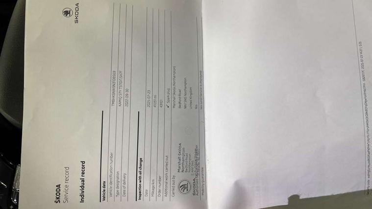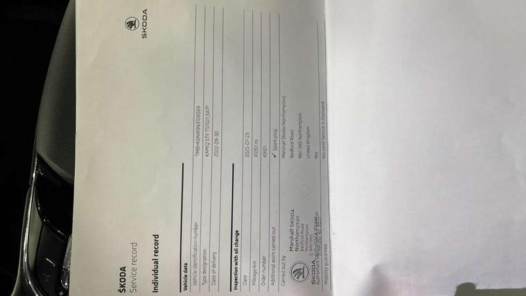 Amundsen satellite navigation with 9.2" glass colour touchscreen display, voice control, virtual cockpit, web radio and traffic sign recognition, Bluetooth system, E-call, Front and rear parking sensors, Front assist system, Gesture control, PAS, Rear view camera, Service indicator, Speed limiter, Virtual cockpit with 10.25" display, Wireless SmartLink for apple car play, android auto and mirrorlink, 8 Speakers, Auxiliary input socket, DAB Digital radio, Auto dimming rear view mirror, Body colour bumpers, Body colour door mirrors and handles, Chrome grille surround, Electric folding door mirrors, Electrically adjustable and heated door mirrors, Front and rear electric windows, Headlight range control, Heated rear window, LED rear lights - low functionality, Light sensors, Privacy glass, Rear fog lights, Rear side wing doors, Rear wiper, 12V Accessory socket in centre console, 3 seat bench in 2nd row, Chrome inner door handles, Dual zone climate control, Front head restraints, Glove compartment with illumination, Ice scraper, Isofix child seat fittings on outer rear seats, ISOFIX on front passenger seat, Manual lumbar support for front seats, Rake/reach adjustable steering wheel, Reading lights, Single front passenger seat, Sun visors with illumination on front passenger, Textile floor mats, Third rear headrest, Top tether for front passenger seat, Umbrella in driver's door, 3x3 point rear seatbelts, Airbags - driver and front passenger, ESP, Front passenger airbag deactivation switch, Front side airbags with curtain airbags, Hill hold control, Manual parking brake, Manual rear child locks, One tone horn, Rear disc brakes, Seatbelt reminder for driver an co-driver, Traction control, Tyre pressure monitor, Anti-theft alarm system with interior monitoring, backup horn, towing protection and remote central locking with SAFE system, Anti-theft wheel bolts, Electronic engine immobilizer, Latice curved decorative insert on the dashboard with hot stamping in copper and white ambient lighting white,