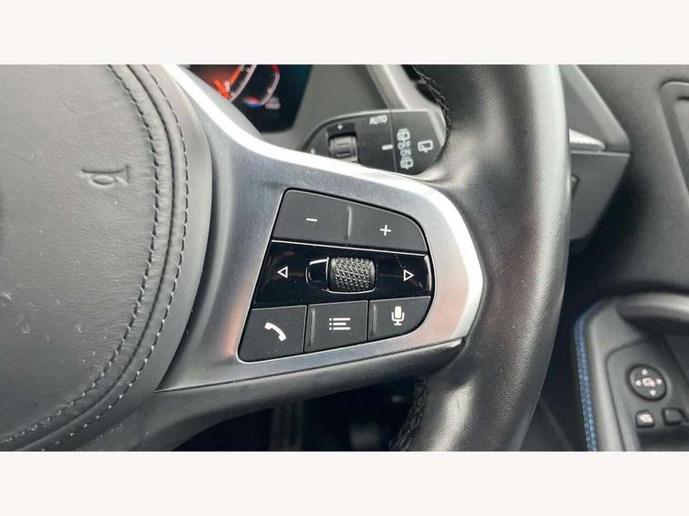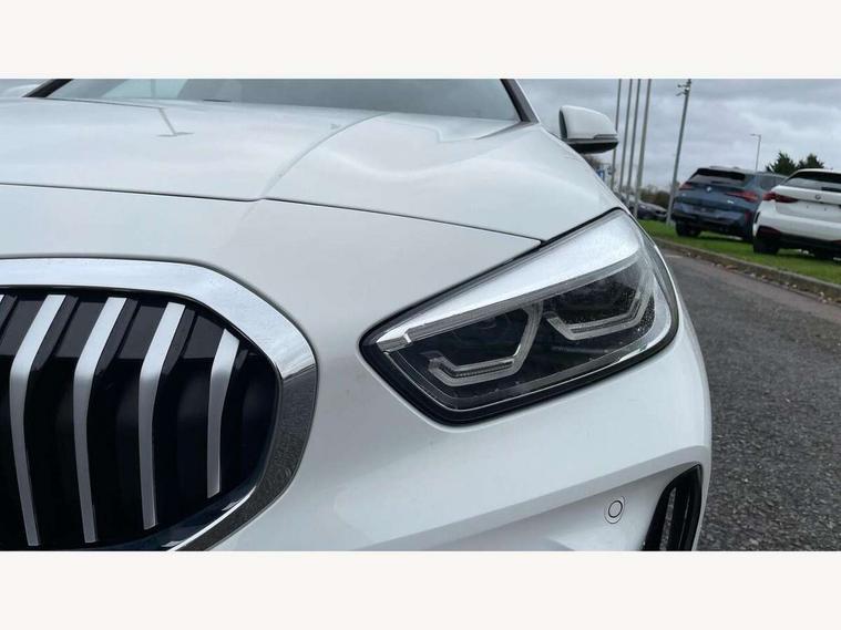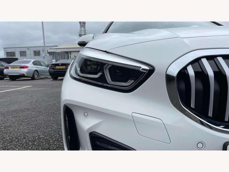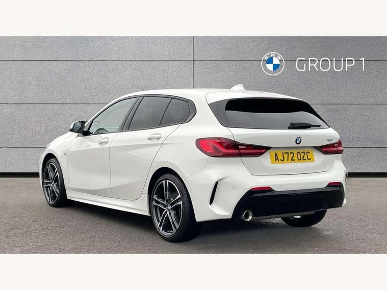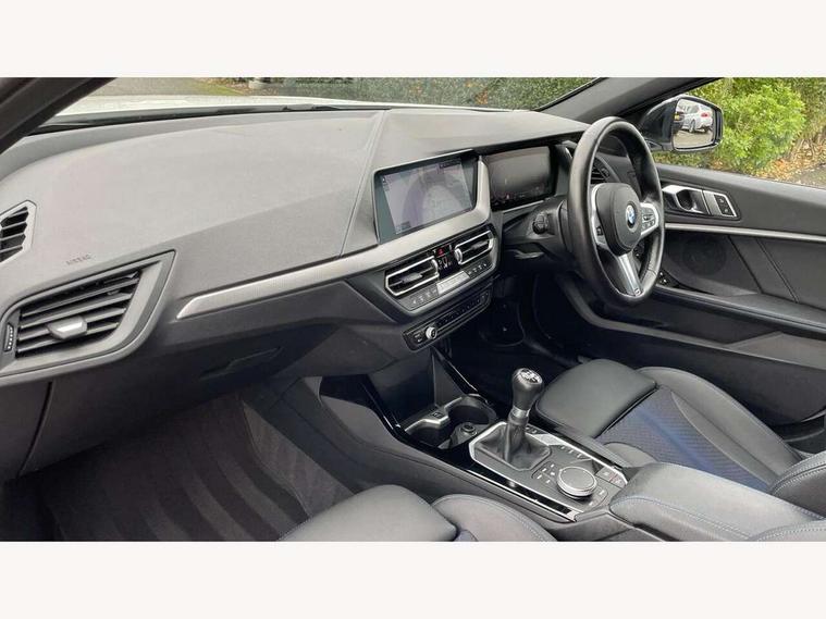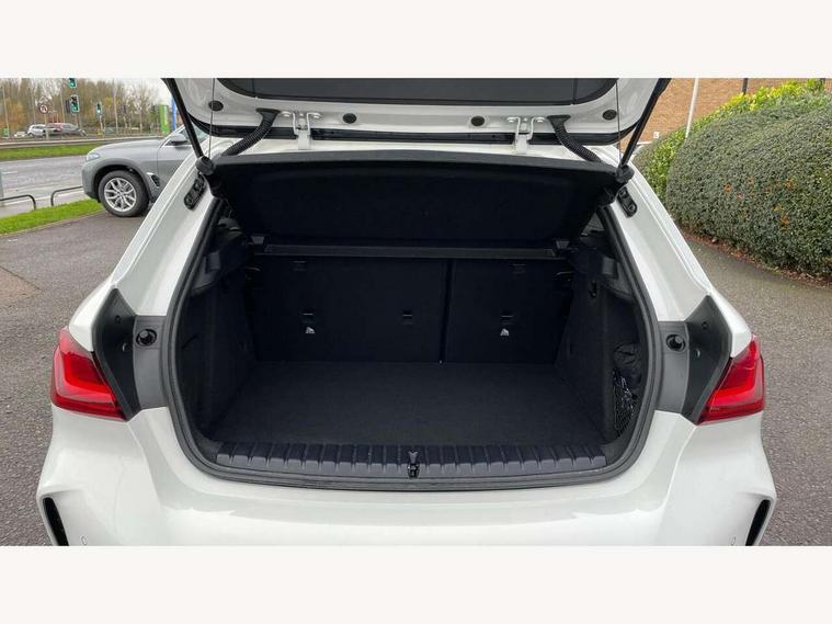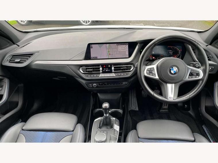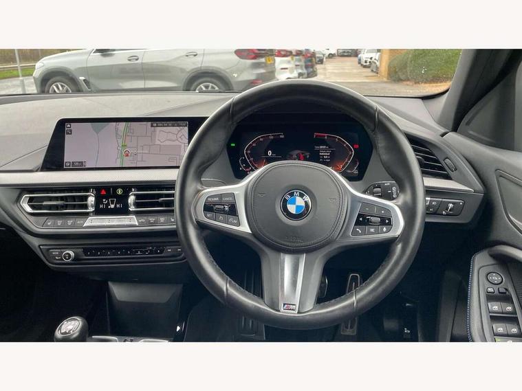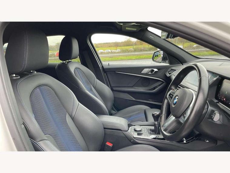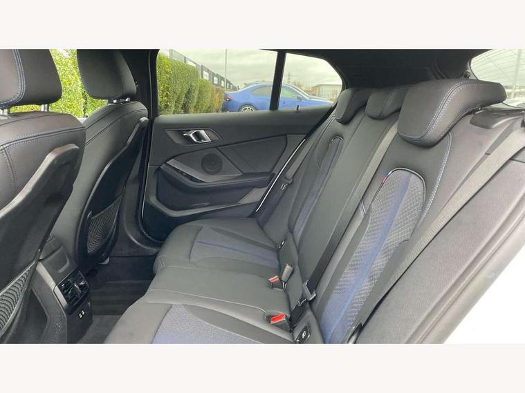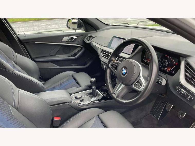 Active guard plus, Attentiveness assist, BMW ConnectedDrive online services, BMW Teleservices, Check Control warning system for monitoring of lights and door/luggage compartment open warning, Cruise control with brake assist, Eco pro mode, Front axle single joint with specific axle kinematics to minimise drive influences on steering + provide increased rigidity agile driving behaviour, Integrated owners handbook, Lane departure warning system, Oil sensor for level and grade, On board computer, Optimum shift indicator, Personal Profile, Pull away assistant, Rigidly mounted rear subframe - Multi link construction with separate spring / damper configuration and excellent driving characteristics, Speed limit Info including no-overtaking indicator, Speed limiter, Aluminium lightweight construction, Anti roll bar front and rear, Balancer shaft, Double VANOS twin scroll turbocharging system, Drive Performance Control, Electronic differential lock, High precision injection, M sport suspension, Petrol Particulate Filter, Twin tube gas filled shock absorbers with degressive characteristic curve, VALVETRONIC engine management, DAB Digital radio, Auto dimming rear view mirror, Automatic headlight beam throw control, Automatic windscreen wipers and automatic headlight, Body colour door handles, Body colour mirror caps, Body colour roof trims, Chrome 'M' logo side designation, Chrome exhaust twin tailpipes round 90mm in left, Chrome kidney grille frame with Satin Aluminium struts, Direction indicator side lights in exterior mirrors, Fading support, Folding side mirrors with auto dimming/folding wing mirrors with auto dimming, Follow me home headlights, Front and rear bumper system with replaceable deformation elements, Front and rear electric windows with open and close fingertip control, anti trap facility and comfort closing, Front door sill finishers in black plastic with M designation in metallic look, Green tinted heat protection glazing, Heated, electrically adjustable exterior mirror aspheric on driver side, convex on passenger side, High gloss shadowline window frame, Recess cover mirror frames and B/C pillar embelisher trim, High level third brake light, Integrated front windscreen with washer jets, LED daytime running lights, LED eyebrow turn indicators, LED front fog lights, LED Headlights, Lightweight engineering, Matt black air guide grilles, Matt black wheel arch trim, Model designation on electric bootlid, Nearside reverse light in rear light cluster, Preparation for high beam assistant, Rear fog lights, Rear side wing doors, Rear window wiper, Shark fin antenna, Trailer stabilisation logic, Visible VIN plate, Welcome lighting, 12V power socket in front centre console with blanking plug, 3 rear seat head restraints, 3 seat bench in 2nd row, 3 spoke sports leather steering wheel in black leather with black stitching and decorative finisher in pearl chrome, specific M badge + leather knob, Anthracite headlining, Black boot net with lashing eyes, Cargo function on 2nd seat row, Child seat ISOFIX attachment for two outer rear seats and front passenger seat with anchorage points, Conditioned based service, Driver and front passenger seat heating, Folding rear clothes hook, Four grab handles integrated in roof lining, Front and rear door pockets with bottle holders, Front and rear side armrest integrated into door trim, Front armrest, Front sports seats, Gearshift lever with M designation, Glove compartment, Height adjustable front head restraints, Luggage compartment for bag hooks on left and right, foldable luggage compartment liner and four lashing eyelets, Manual adjust steering wheel, Multi-function controls for steering wheel, Single front passenger seat, Storage compartment in centre console, Sun visors with vanity mirrors and insert tab, Two front centre console cupholders, Two zone automatic air conditioning, Velour floor mats, Additional interior lighting pack - 1 Series, BMW live cockpit professional pack- 1 Series, Connected pack professional - 1 Series, Interior lights pack - 1 Series, M Sport exterior styling aerodynamics pack - 1 Series, 2 tone horn, 3 point seatbelts on all seats, front pyrotechnic belt tensioners, stopper and belt force limiters, rear coded belt buckles, Airbags - Front driver/passenger, front and rear curtain head protection, front side, manual deactivation of front passenger airbag, Anti lock braking system (ABS) with brake assist, BMW emergency call, Brake drying, Braking readiness, Child proof locking system in rear door, City braking function, Comfort modes, Cornering brake control, Crash sensor activating central locking release, hazard warning lights, fuel cut off, interior lighting + activation of safety battery terminal clamp, Driver and front passenger seat belt security check, Dynamic stability control + (DSC+), Dynamic Traction Control - DTC, Electrically operated hand brake, Front and rear disc brakes, Seatbelt warning, Side impact protection, Tyre pressure monitoring system, Warning triangle and first aid kit, Central locking switch for all doors, fuel filler cap and luggage compartment, Deadlocking function system to all doors, Drive away locking system on all doors and luggage compartment with de-activated in iDrive settings, Locking wheel bolts, Remote control with integrated key with High-gloss Black inlay and M designation and 1 button for open/ close lock, window, open luggage compartment, Start/stop button illuminated in centre console with keyless engine start and auto start stop deactivation button, Thatcham Cat.1 alarm and immobiliser, Wheel slip limitation close to the actuator (ARB), Contrast stitching on instrument panel, Electrically powered 12V compressor, Reduced rolling resistance tyres,