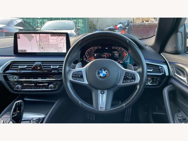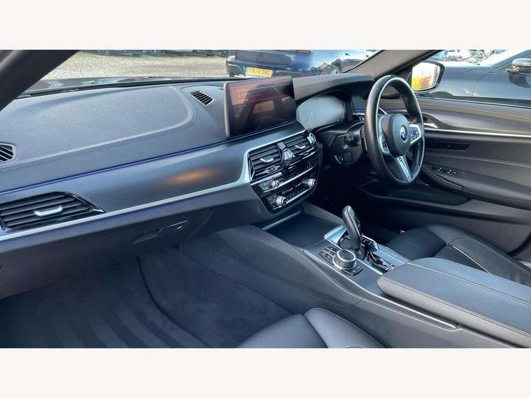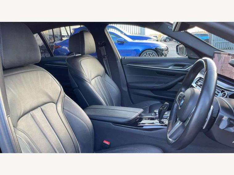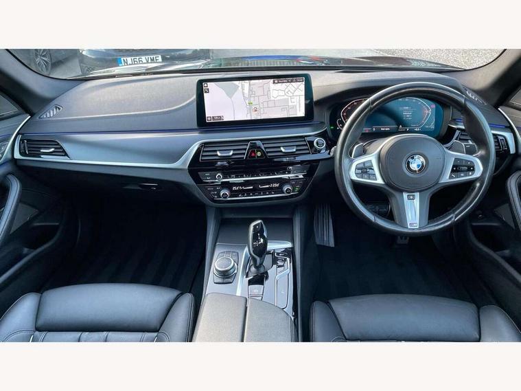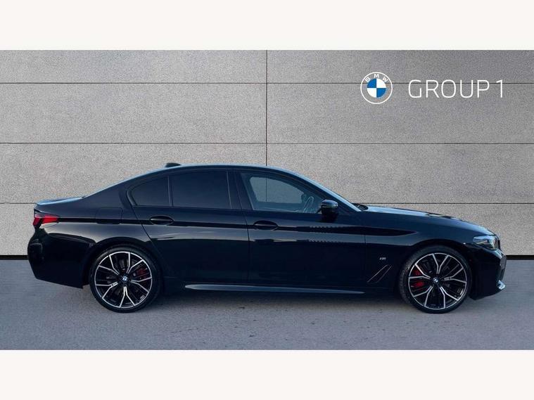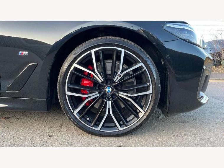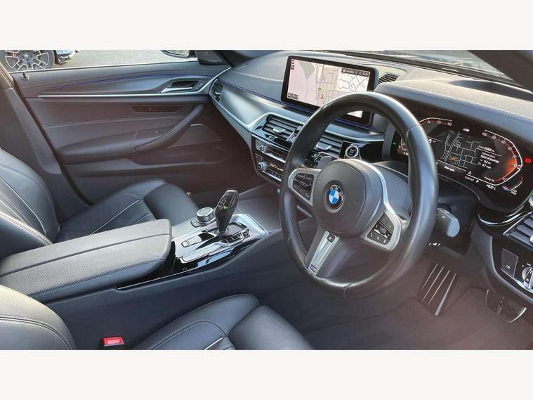 32GB hard disc drive (HDD) memory, Active Guard, Bluetooth connection, BMW ConnectedDrive online services, BMW Live Cockpit Professional sat nav system with 12.3" instrument display and high resolution control display, BMW Teleservices, Brake pad wear indicator, Cruise control with brake assist, Driving experience switch, eCall emergency call system, Electric Power Steering (EPS) with Servotronic, iDrive controller with shortcut buttons, Intelligent emergency call, Multifunctional instrument panel, Oil sensor for level and grade, On board computer inc. average speed, fuel consumption, liquid crystal Info display, journey computer, outside temperature display, personal profile, On-board diagnosis - OBD, Powered by Operating System 7.0, Service interval indicator, Speed limiting function, Stop/start button, 48V Mild hybrid technology, Drive performance control with ECO PRO comfort + sport mode, Engine cover with twin turbo designation, M sport suspension, Petrol Particulate Filter, Steptronic sport transmission with gearshift paddle switches on steering wheel, DAB Digital radio, Favourite buttons, Acoustic glazing, All round anti-corrosion system, Automatic windscreen wipers and automatic headlight, Automatically dimming rear view mirror, BMW Individual high gloss shadow line includes exterior mirror frame, window frame surround, B pillar finish, air breather in high gloss black, Body colour door handles, Body coloured bumpers, Door handle illumination, Dynamic brake lights with LED technology, Electric front and rear windows with fingertip open/close + anti-trap facility and comfort closing function, Electrically adjustable and heated exterior mirrors includes integrated direction indicators and automatic parking function, Folding exterior side mirror with auto- dimming, Follow me home headlight function, Heated windscreen washer jets, High gloss black active air stream kidney grille, LED daytime running lights, LED Headlights, LED third brake light, M designation on front side panels, left and right in chrome, M Sport exterior styling, Preparation for high beam assistant, Rear boot, Rear side wing doors, Trapezoidal visible exhaust tailpipes, 12V power socket in front and rear, 3 seat bench in 2nd row, Armrest - front and rear integrated door trim, centre console includes storage compartment, rear centre includes 2 cupholders, Child seat ISOFIX attachment with rear outer seats includes top tether, Cup holders (2 front and 2 rear), Front and rear footwell lights, Front reading lights, Height and length adjustable steering column and activation via lateral lever on the steering column, Lockable glove compartment with light, M door sill finishers, M specific pedals, M specific velour floor mats, Multifunction controls for leather steering wheel, Rear headrests, Single front passenger seat, Three spoke sport M leather steering wheel, Ambient lighting pack - 5 Series, Connected package professional - 5 Series, M Aerodynamic pack - 5 Series, Parking assistant pack - 5 Series, Airbags - driver/front passenger, rear and side, first and second row seats head airbags, front passenger seat airbag deactivation, Anti-lock braking system (ABS), Automatic Stability Control (ASC), Brake assist function, Brake energy regeneration, Cornering brake control (CBC), Crash sensor activating central locking release, hazard warning lights, fuel cut off and interior lighting, Deformation zones - front and rear with door reinforcements and bumpers up to 2.5 mph, DSC - Dynamic Stability Control, Dynamic brake control, Dynamic Traction Control - DTC, Electromechanical parking brake with automatic drive away release and auto hold function, Electronic brake force distribution, Engine drag torque control, Front and rear brake discs with interior ventilation, Front head restraints with anti-whiplash, Hill start assist, Mechanical child proof lock on rear doors, Passive protection for pedestrians, Rear door child safety locks, Side impact protection, Three point seat belts for all four seats, Two tone horn, Tyre pressure indicator, Warning triangle and first aid kit, Alarm system (Thatcham 1) with remote control and electronic engine immobiliser, Locking wheel bolts,