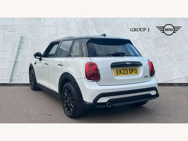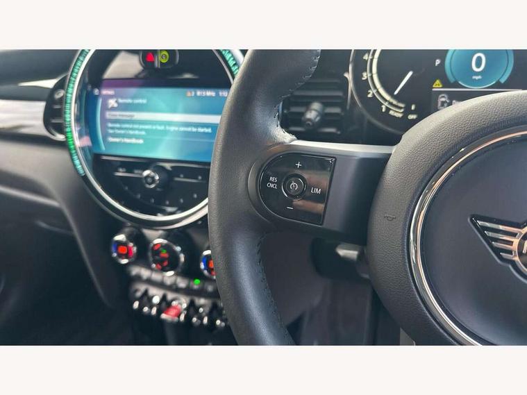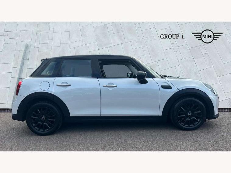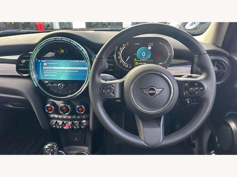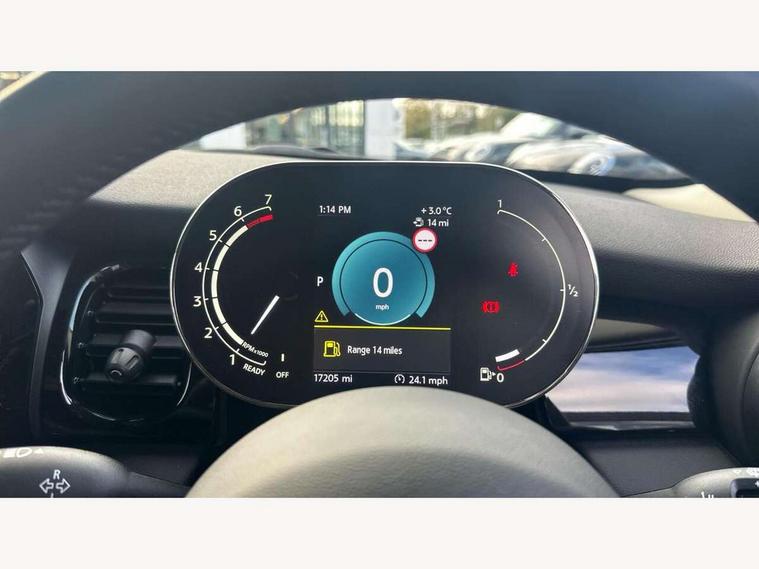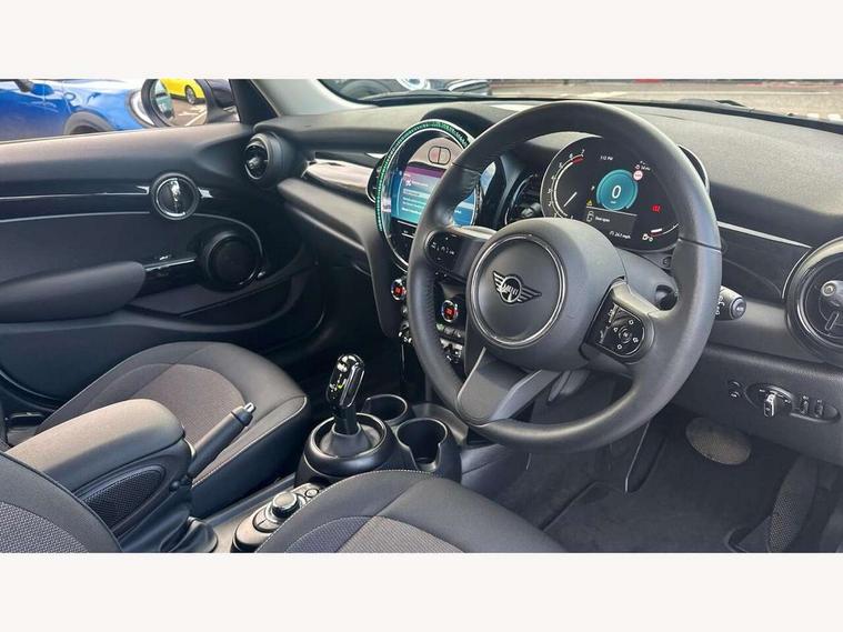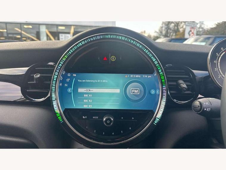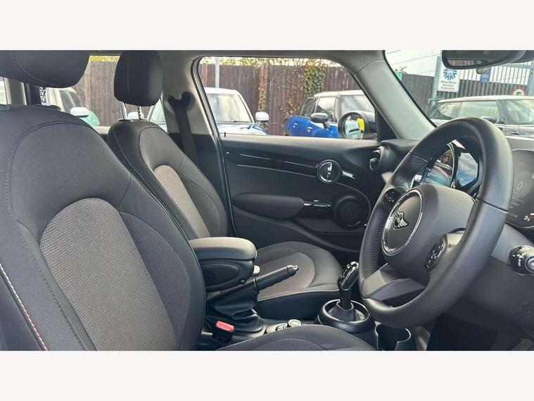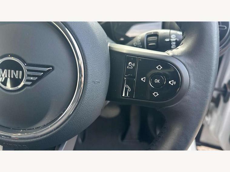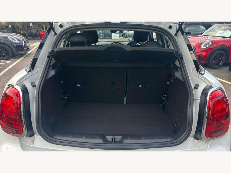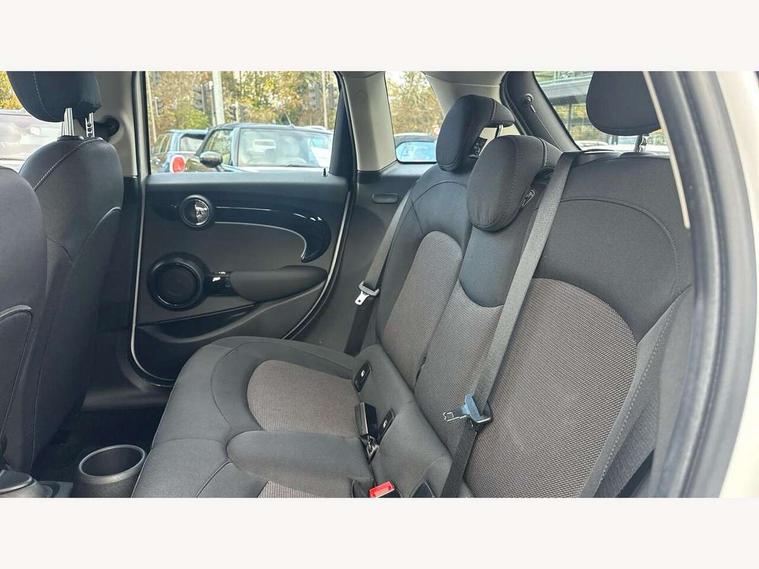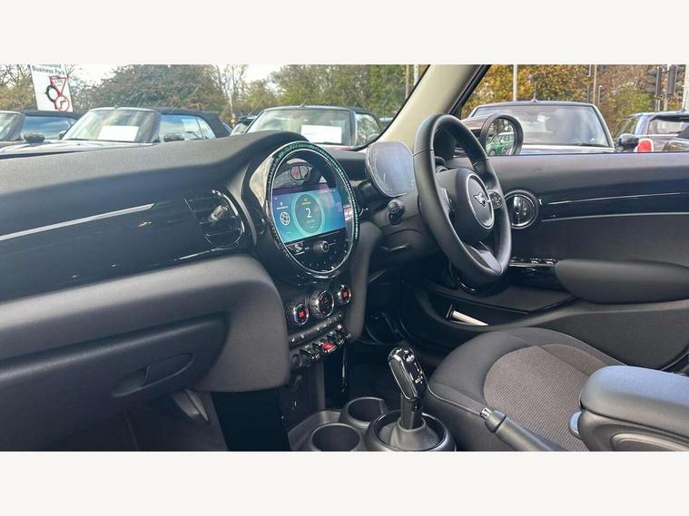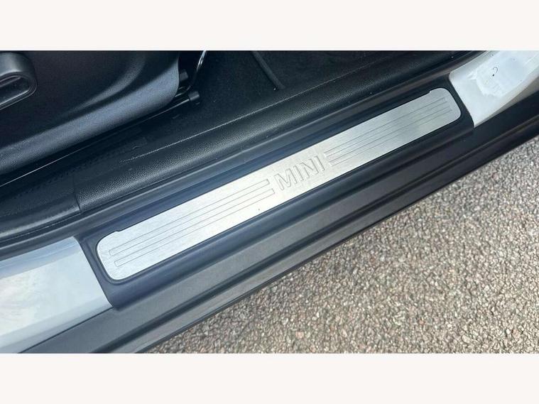 Apple CarPlay, Automatic start/stop function with brake energy recuperation, Compatible mobile phone bluetooth with audio streaming, Electro-mechanical speed dependant steering assistance, Flexible car sharing preparation, Mini E-call, MINI TeleServices, On board computer, Service interval indicator, Double Vanos system, Fully variable valve control, Gear change indicator display, High precision injection, Performance Control, Steptronic transmission with double clutch, 8.8" touchscreen with LED ring, FM tuner and DAB digital radio, 3rd brake light, Automatic headlight activation switch, Body colour fuel filler cap, Chrome border high gloss black slats radiator grille, Dynamic brake lights, Electric front+rear windows, Exhaust tailpipe on left with chrome finisher, Heated rear window, Heated windscreen washer jets, Metal door sill strips with MINI imprint, Model logo Cooper on right of tailgate, Rain sensor window wipers, Rear fog lights, Rear LED lights with union jack design, Rear side wing doors, Rear window wiper, Side scuttle panel with integrated indicator, Sun/heat protection glass, White indicator lenses, 12V Accessory socket in centre console, 3 seat bench in 2nd row, 4 lashing eyes in luggage compartment, 60/40 split folding rear seat, Ambient lighting, Carbon black colour line - Knee roll and door armrest, Chrome interior highlights, Cupholders, Front and rear head restraints, Front and rear isofix with front passenger airbag deactivation, Front and rear velour floor mats, Glove compartment, Height and length steering column adjustment, Interior lighting with 12 different colours across the dashboard, underneath door bezel with illuminated laser-engraved design on central display, Leatherette gearshift lever and handbrake gaiters, LED reading lights, vanity mirror lights, front foot well light and spotlight on front seats, Mechanical seat adjustment - forward/back & backrest for front seats and driver seat height adjust, Multifunction steering wheel, Satellite grey headlining including grab handles and clothes hooks, Single front passenger seat, Sport leather steering wheel with speed limiter and audio/communication controls, Storage compartments in doors, Sunvisors with vanity mirrors, 3 point seatbelts on all five seats, 6 Airbags - front, side, head and seat belt tensioners, Anti-lock braking system (ABS), Child locks on rear doors, DSC - Dynamic Stability Control, Front and rear disc brakes, Hill start assist, Single tone fanfare horn, Tyre pressure monitoring system, Alarm system with tilt sensor, monitoring doors, bonnet interior and tailgate, Electronic vehicle immobiliser, Start/stop toggle with keyless go, Piano black interior trim, Tool kit, Tyre repair kit,
