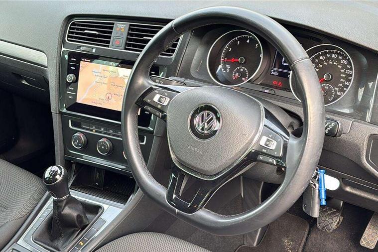 Brushed dark silver decorative inserts in dash and door panels, Chrome plated air vent surround, Chrome-plated light switch surround, Polar night black decorative inserts in centre console, Convenience Pack - Golf, Light and Sight pack - Golf, Mirror pack - Golf, Steel space saver spare wheel, Alarm with interior protection and deactivation via infotainment system, Electronic engine immobiliser, Composition media system, DAB Digital radio receiver, Driver Personalisation profile selection, MP3/WMA compatability, Multi device interface (MDI) with USB connection, Personalisation 1.1 profile for media, Premium USB cable in choice of either Apple or Android smartphone compatibility, SMS Functionality, Title and cover art display, 4 X 20W output, USB connection and socket, USB and SD card connectivity, 3 rear three point seatbelts, Airbags - Driver's and front passenger's, curtain airbag, Driver's knee, front side impact and passenger's airbag deactivation switch, Anti-lock Braking System (ABS) with Hydraulic Brake Assist (HBA), Automatic post collision braking system, Child locks on rear doors, Driver/Passenger optimised head restraints, Electronic parking brake with auto hold, Electronic stability control (ESC) including Electronic differential lock (EDL) and ASR (Traction control) with deactivation via infotainment system, Front ventilated disc brakes and rear disc brakes, Pre crash preventive occupant protection, Three point height adjustable front seatbelts with tensioners, Tyre pressure loss indicator, Auto dimming rear view mirror, Black front air intake and radiator grille with chrome insert, Black rear diffuser, Body colour bumpers, Body colour door handles, Body colour door mirrors with integrated indicators, Dusk sensor + automatic driving lights, Electric front windows, Electric rear windows, Electrically adjustable and heated door mirrors, Fully galvanised body, Heated rear windscreen, Hidden exhaust pipe, High level 3rd brake light incorporating LED Technology, LED front fog lights with static cornering light function, Range adjustable headlights via infotainment system with LED daytime running lights, Rear fog lamp, Rear number plate lights incorporating LED technology, Rear tinted glass 65% light absorbing from B pillar backwards, Rear window aerial, Rear window wash/wipe with intermittent wipe, Reflectors in all doors, Remote electrically foldable door mirrors, door mirror puddle lights and reverse activated kerb-view adjustment on passengers door mirror, Tailgate with integrated rear roof spoiler, Windscreen wipers/ intermittent wipe + 4 position delay, 12V socket in luggage compartment, 3 rear headrests, 4 load lashing points in luggage compartment, 60/40 split folding rear seat backrest, Auto fold down lever in rear seat backrest, Bag hook in luggage compartment x 2, Cooled glovebox, Cover for storage compartment in centre, Cupholder cover, Dust/pollen filter, Front and rear reading lights X 2, Front centre armrest with storage compartment and two rear air vents, Front seat back storage pockets, Grab handles front x 2, rear x 2 with integrated coat hooks, Height and reach adjustable steering wheel, Illuminated vanity mirrors, Instrument lighting white adjustable panel illumination, Interior light delay, Isofix preparation for 2 rear child seats, Load through provision with rear centre armrest and cupholders x2, Luggage compartment lighting, Overhead storage box, Passenger underseat drawer, Pearl grey headlining, Storage box in luggage compartment, Storage compartment in roof console with cover, Storage compartments in centre console, Storage compartments in front doors, Storage compartments in rear doors, Stowable luggage compartment cover, Sun visors, Variable boot floor, height adjustable and removable, 'Lights On' Reminder warning buzzer, ACC - Adaptive cruise control with front assist, forward collision warning, distance monitoring, city emergency brake and speed limiter, Bluetooth telephone and audio connection for compatible devices, Brake pad wear indicator warning light, Driver alert system, Driving Mode Selection with four preset modes - Eco, normal, sport or individual modes, Instrument cluster in white, Multifunction computer with visual gear change recommendation for fuel consumption, Power assisted speed sensitive electro-mechanical steering, Push tank flap, Speed limit display, Speedo, rev counter, electronic odometer, trip, service interval display, exterior temperature and fuel gauge, Stop/start system, Think blue trainer driver tips and journey analysis, Warning buzzer and light for front seatbelts unfastened, We Connect Go Dongle, Battery regeneration during braking, XDS electronic differential lock,