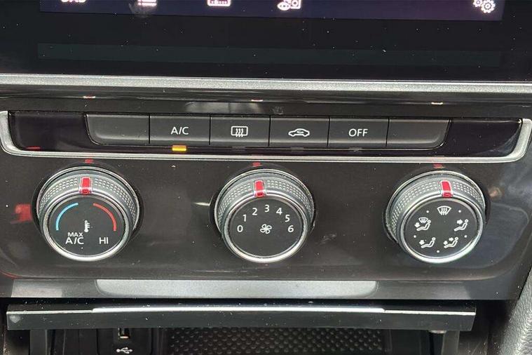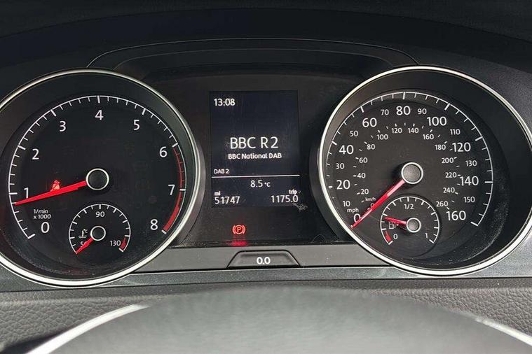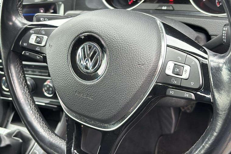 'Lights On' Reminder warning buzzer, 8" touch screen, Adaptive Cruise Control with pedestrian detection and speed limiter, App-Connect, Bluetooth hands free telephone connection, Brake pad wear indicator warning light, Driver alert system, Driver profile selection, Exterior temperature gauge, Instrument cluster in white, Multifunction computer, PAS - speed related, Rev counter, Trip and service interval display, Ultrasonic front and rear optical and audible parking sensors, Warning buzzer and light for front seatbelts unfastened, XDS electronic differential lock, CD/MP3/WMA, USB and SD card reader, aux-in, Composition media system, DAB Digital radio, Auto dimming rear view mirror, Automatic coming/leaving home lighting function, Automatic headlights, Black front air intake and radiator grille with chrome insert, Black rear diffuser, Black roof rails, Body colour bumpers, Body colour door handles, Body colour door mirrors, Electric front windows, Electric rear windows, Electrically adjustable and heated door mirrors, Heated rear windscreen, LED daytime running lights, LED rear lights, Rain sensor, Rear roof spoiler, Rear windscreen washer and wiper with interval delay, 12V socket in luggage compartment, 3 rear headrests, 3 spoke steering wheel, 60/40 split folding rear seat, Bag hook in luggage compartment, Boot lashing points, Cooled glovebox, Courtesy light delay, Cover for storage compartment in centre, Dust/pollen filter, Front and rear reading lights, Front centre armrest with storage box and rear air vents, Front passenger seat height adjust, Front seat back storage pockets, Grab handles, Height/reach adjust steering wheel, Illuminated vanity mirrors, Isofix preparation for 2 rear child seats, Load through provision with rear centre armrest and cupholders x2, Luggage compartment cover, Luggage compartment lighting, Multifunction leather steering wheel with leather gear knob/handbrake grip, Overhead storage box, Pearl grey headlining, Storage compartments in doors, Sun visors, Variable boot floor, height adjustable and removable, Mirror pack - Golf, 3 point height adj front seatbelts + pretensioners, 3 rear 3 point seatbelts, ABS, Automatic post collision braking, Child locks on rear doors, Driver/Front Passenger airbags, Driver/Passenger whiplash optimised head restraints, Drivers knee airbag, Electronic parking brake with auto hold, ESP with EDL + ASR, Front and rear curtain airbags, Front assist including city emergency braking, Front passenger airbag deactivation, Front side airbags, Pre crash system, Tyre pressure monitor, Alarm with interior protection, Electronic engine immobiliser, Locking wheel bolts, Remote central locking with 2 remote folding keys, Brushed dark metal decorative inserts in dash and front door panels, Chrome-plated light switch surround, Polar night black centre console, Steel space saver spare wheel,