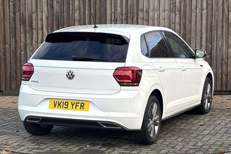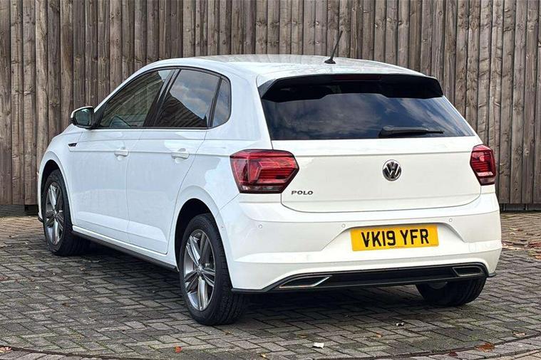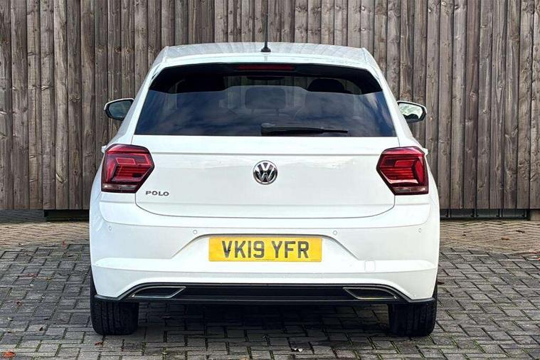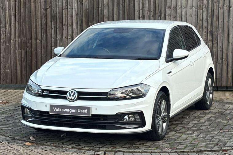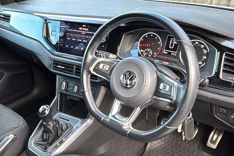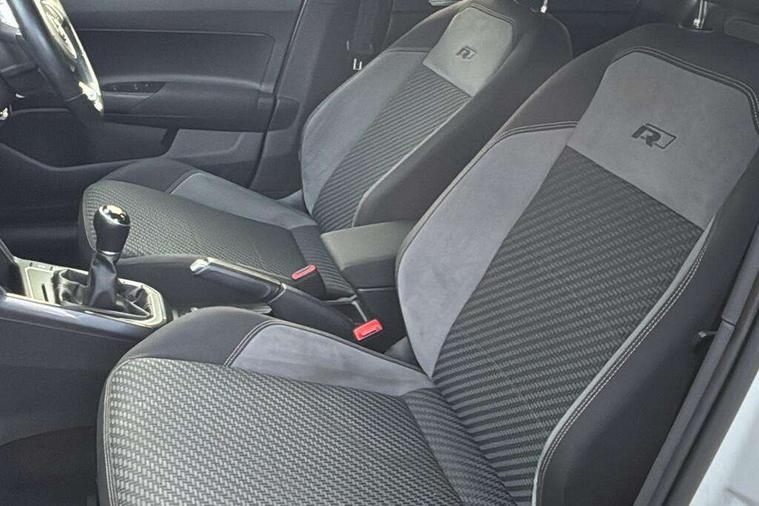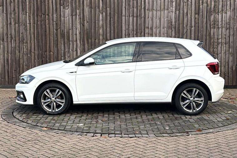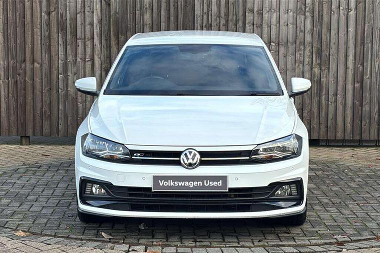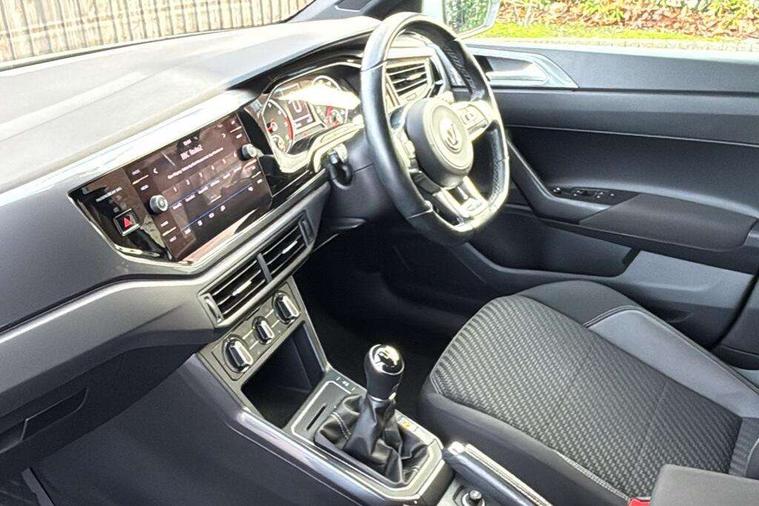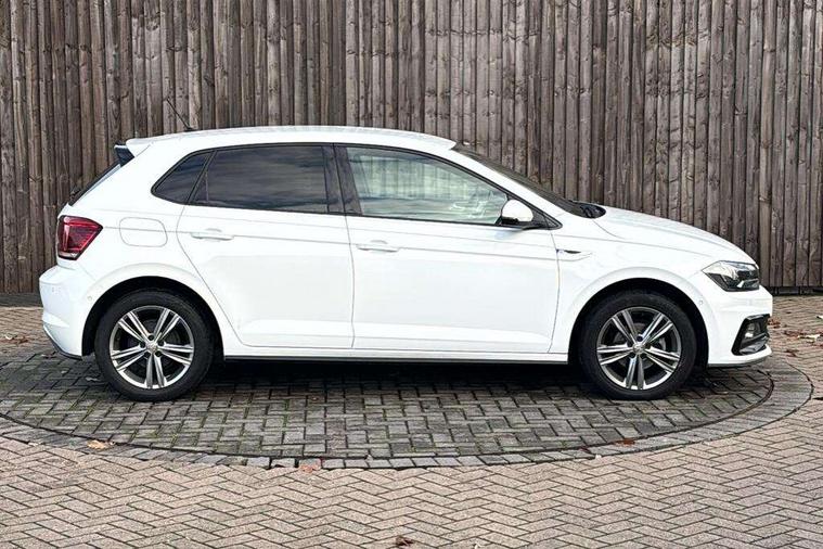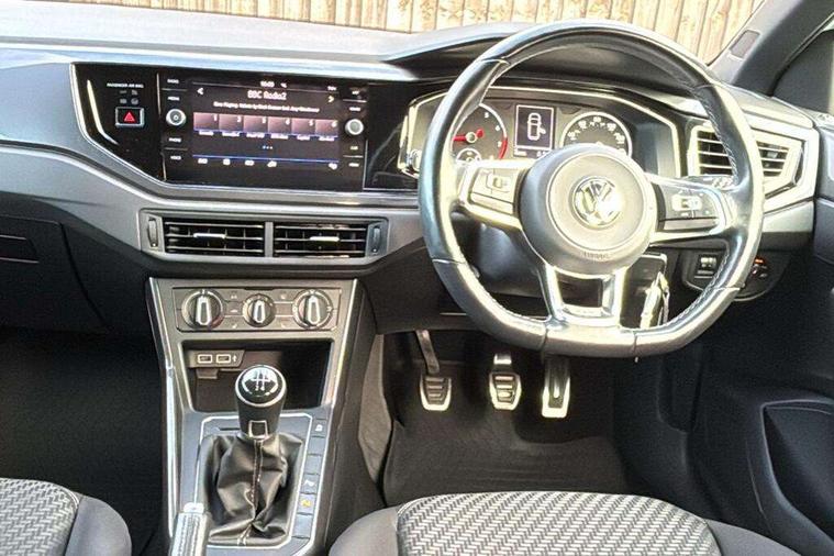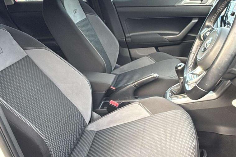 App-Connect, Bluetooth Telephone preparation, Driver alert system, Multifunction colour display, PAS - speed related, Service interval indicator, Start/stop system, Trip computer, Warning buzzer and light for front seatbelts unfastened, Battery regeneration during braking, 6 speakers, Composition media system with radio, glovebox mounted CD, colour touch screen, SD card, aux-in, USB, multimedia interface, DAB Digital radio, Automatic dimming interior rear view mirror with rain sensor, Automatic headlamp activation, Black grille with chrome surround, Black radiator grille with chrome insert, Body colour bumpers, Body colour door handles, Body colour rear spoiler, Body coloured side sills, Chrome insert to lower bumper, Chrome trimmed front air intake surrounds, Electric folding door mirrors, Electric front windows, Electric operated/heated door mirrors, Front fog lights including static cornering, Front wash/wipe with interval delay, Fully galvanised body, Heated rear window with auto timer, High level 3rd brake light, LED darkened rear light clusters, LED daytime running lights, LED rear number plate lights, Manual coming/automatic leaving home lighting function, R Line body kit, Rear diffuser, Rear electric windows, Rear windscreen washer and wiper with interval delay, Stainless steel door sill protection, Twin chrome exhaust tailpipes, 12V power socket in centre console, 2 bag hooks in luggage compartment, 2 cupholders, 3 rear head restraints, 3 spoke steering wheel, 60/40 split folding rear seat, Ambient lighting, Carbon flag cloth upholstery, Chrome-plated electric window button surround, Driver/front passenger seat height adjustment + underseat drawers, Driver/passenger sunvisors with illuminated vanity mirrors, Dust/pollen filter, Front + rear carpet mats, Front centre armrest with storage compartment, Front seat backrest storage nets, Front sport seats, Front/rear reading lights, Glovebox, Handbrake grip button in chrome effect, Height/reach adjustable steering column, Instrument lighting, white adjustable panel illumination, Interior light with delay, Isofix Preparation 2 Rear child seats, Jack and tool kit, Leather multifunction steering wheel, LED footwell lights, Luggage compartment cover, removable, Luggage compartment lighting, Matt chrome gear lever gaiter surround, R Line badge, Stainless steel pedals, Storage compartment in front doors, Storage compartment in rear doors, Storage compartment under front seats, Titanium black headlining, Titanium black roof lining, Variable boot floor, Variable Luggage compartment, Light and sight pack - Polo, R Line styling pack - Polo, 3 point height adj front seatbelts + pretensioners, 3x3 point rear seatbelts, ABS, Automatic post collision braking, Driver/front passenger airbag, Driver/Passenger whiplash optimised head restraints, ESP with EDL + ASR, Front and rear passengers curtain airbag system including front side airbags, Front passenger airbag deactivation, Front/rear disc brakes, HBA (Hydraulic Brake Assist), Hill hold control, Two tone horn, Tyre pressure monitoring system, Alarm with remote central locking and interior protection, Electronic engine immobiliser, Chrome plated electric mirror adjustment light switch surround, Cortina silver air vent surround, Matt chrome interior trim, Snow shadow steel dashboard pads, Steering wheel aluminium inserts, Space saver spare wheel,