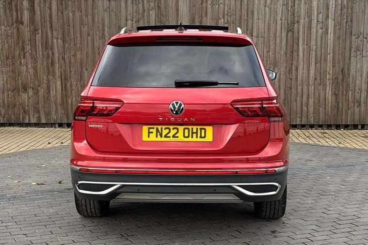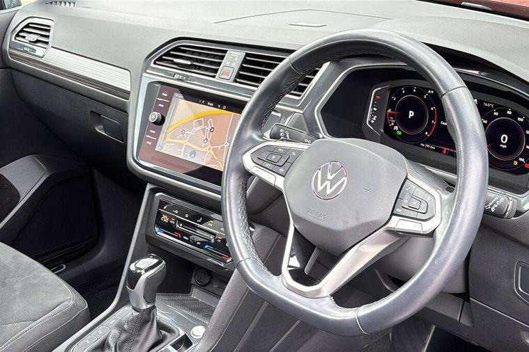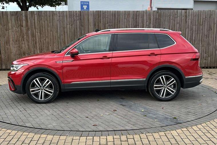 Adaptive cruise control, App-Connect, Digital cockpit pro, Driver alert system, Driver profile selection, Dynamic road sign display, eCall emergency call service, Electric boot lid, Lane change system side assist and rear traffic alert, Lane keeping system Lane Assist, Mobile phone interface comfort with inductive charging feature, Multifunction front facing camera, Power assisted speed sensitive steering, Speedo and rev counter, electronic odometer, trip, service interval display and exterior temperature gauge, Front wheel drive, Start-stop system with battery regeneration (recuperation - energy recovery during braking), 2 USB-C ports in the front, 1 USB-C charging socket on the center console in the rear, DAB Digital radio, Diversity antenna for FM reception, Radio, Auto dimming interior rear view mirror, Automatic headlight control system, Body coloured comfort bumpers, Chrome mouldings on side window, Coming/leaving home lighting function, Exterior badge deletion, Exterior mirror housings painted in silver, Heated windscreen washer jets, IQ light adv HBC, dyn light assist LED matrix headlamps, DH range, dark red LED rear combo light, poor weather, CL, LED headlamp with LED DRL and DCL - PXC, Privacy glass, Rain sensor, Rear fog light, Rear side wing doors, Rear wiper, Silver roof rails, Third brake light, Tilting and sliding panoramic sunroof, 12-volt outlet in centre console rear and luggage compartment, 12V socket in centre console, 3 head restraints in rear, 3 individual folding 2nd row seats, 3rd row 2 individual seats, Air Care Climatronic 3 zone automatic climate control with enhanced air filter and controls in the rear, Door and side trim panel, Drawers under front seats, Driver and front passenger seat height adjustment, Foldable front passenger seat backrest, Front + rear carpet mats, Front centre armrest, Front footwell illumination, Heated front seats, Illuminated scuff plates, ISOFIX anchorage points for mounting 2 child seats on rear seats and i-Size child seats, Leather gearshift handle, Leather-wrapped heated multi-function steering wheel with paddle shift, LED interior light with switch off delay/dimmer and 2 front/rear LED reading lights, Sun visors with illuminated vanity mirrors, Ambience pack - Tiguan Allspace, Easy open and close pack with safelock - Tiguan Allspace, Park assist pack - Tiguan Allspace, 3 point seat belt for centre rear seat, 3 rear three point seatbelts, ABS+EBD+Brake assist, Driver and front passenger safety-optimised head restraints, Driver's and front passenger's airbag with front passenger's airbag deactivation switch, Electronic parking brake, Electronic Stability Control (ESC) inc EDL (Electronic Differential Lock) and ASR (Traction Control), Height adjustable front 3 point seatbelts + pretensioners, Manual rear child locks, Pedestrian monitoring, PreCrash preventive occupant protection Front and rear, Rear disc brakes, Side airbag in front and rear with curtain airbag, Two tone horn, Warning buzzer for seatbelts if unfastened, Anti theft alarm system with interior monitoring, backup horn and towing protection, Anti-theft wheel bolts, Electronic steering lock, Remote central locking with 2 remote folding keys, Chequered flag tinanium decorative inserts,