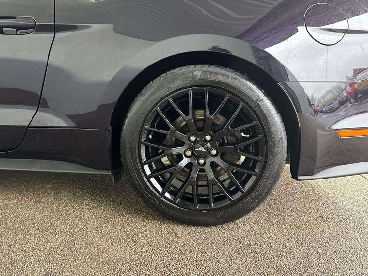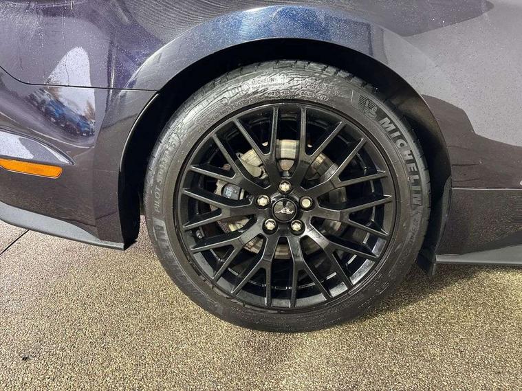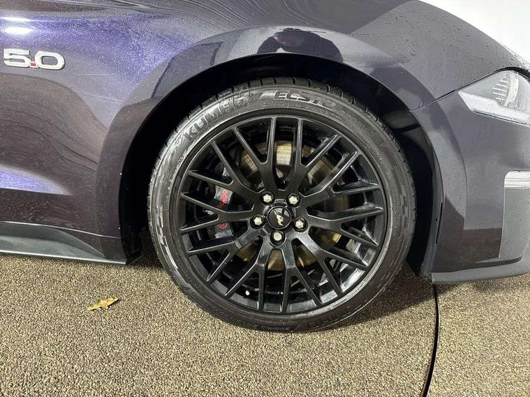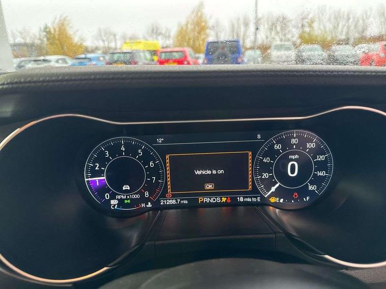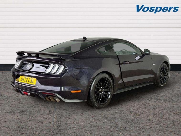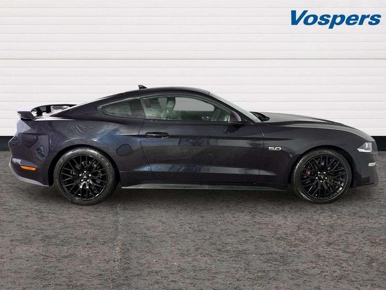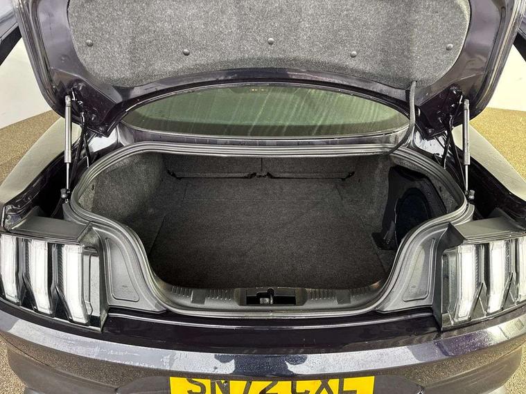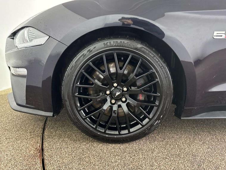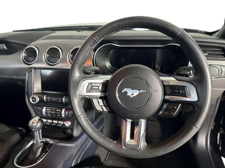 12" digital LCD instrument cluster, Adaptive cruise control with adjustable speed limiter, Apple car play/Android Auto, Bluetooth connectivity with voice control, Electric power steering, Emergency services call system, Ford pass connect embedded modem, Ford SYNC 3 with 8" colour touch screen, Lane keeping aid with lane keeping assist, Oil pressure gauge, Rear view camera with rear parking sensors, Selectable driving modes - normal, mymode, snow/wet, sport+, track and drag mode, Service interval indicator, SYNC Emergency Assistance, Track apps with accelerometer technology, Trip computer, Adaptive damping system, Fully independent front and rear suspension, Limited slip differential, DAB Digital radio, USB connection, 3rd brake light, 5.0 Exterior badge on front wings, Active exhaust system with quad tailpipes, Auto dimming rear view mirror, Auto high beam, Automatic headlights, Automatic rain sensing wipers, Body colour bumpers, Body colour door mirrors, Bonnet air intake, Electric front windows, GT exterior badge on bootlid, GT front grille with vertical power bars, LED headlamps with daytime running lights and LED fog lamps, LED rear lights, Magnetic blade decklid rear spoiler, Power folding door mirrors with Mustang logo projection puddle lamps, Rear boot, 6 way power adjustable front seats and driver seat power lumbar adjust, Ambient lighting, Cup holders, Dual electronic automatic temperature control, Front headrests, Heated steering wheel, Illuminated entry system, Individually folding 2 rear seats in 2nd row, Isofix system on outer rear seats, Leather gearknob, Leather multifunction steering wheel, Leather upholstery, Reach and rake adjustable leather steering wheel with integrated controls, Rear head restraints, Single front passenger seat, 4 seatbelts, ABS, Drivers knee airbag, Dual front airbags, Electronic Line Lock, Electronic Stability Control (ESC) with three settings, ESP, Front side airbags, Performance brake system with brembo 6 piston front callipers and electronic brake prefill, Pre-collision assist with AEB and pedestrian and cyclist detection, Side curtain airbags, Tyre pressure monitor, Ford key free system with power starter button and keyless entry, Immobiliser, MyKey system, Thatcham Cat.1 alarm, 19" 10x2 spoke black finish alloy wheels with michelin pilot sport 4 tyres, Tyre repair kit,