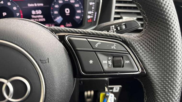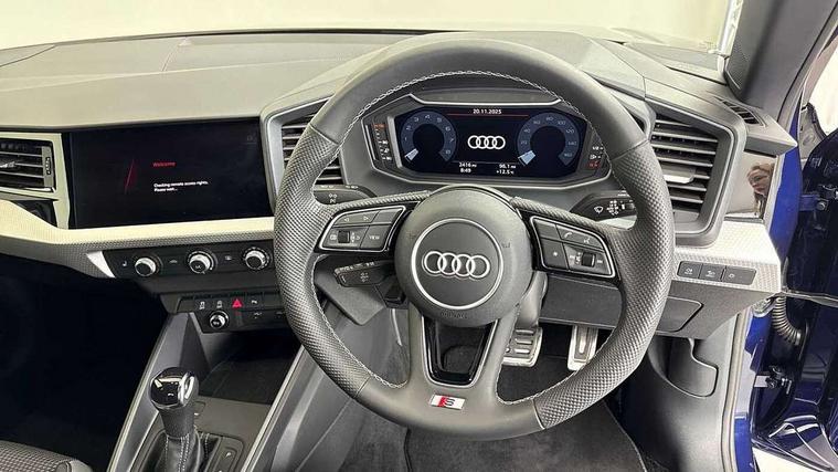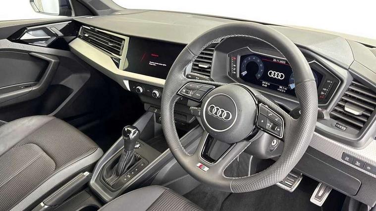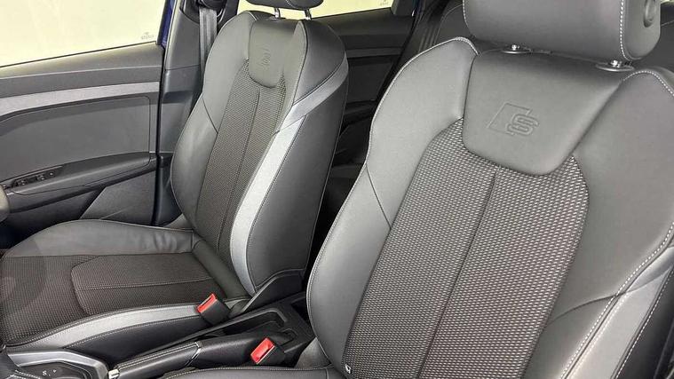 10.25" Digital instrument cluster display classis style instrument dials + speed, odometer, time, outside temperature, telephone menu + fuel level warning, Advanced driver attention and drowsiness monitor, Audi connect emergency call and service, Audi remote connect and control, Audi smartphone interface, Bluetooth interface, Camera based traffic sign recognition, Cruise control, Driver's information system, Electromechanical power steering, Lane departure warning system, Rear parking sensor, Service interval indicator, Speed limiter, Start stop system with recuperation, Voice control system, Washer fluid level indicator, Sports suspension, 2 x USB type C connection points, 6 loudspeakers, DAB Digital radio, MMI radio plus with 10.1" colour MMI display screen and MMI touch, Auto dimming rear view mirror, Body coloured door mirrors, Door sill trims with aluminium inlays and S line logo in front, Electric front and rear windows, Electrically adjustable, heated, folding door mirrors with integrated LED side indicator, Front side air inlets in grained matt black and C frame in anthracite black, Headlight cleaning system, Heat insulating glass windscreen and side windows, Heated rear windscreen, High level LED brake light, LED daytime running lights, LED headlights with range control LED rear lights + dynamic rear indicators, Privacy glass, Radiator grille and rear diffuser in matt anthracite black, Radiator protective grille frame in matt aluminium silver, Rain and light sensors, Rear fog lights, Rear side wing doors, Rear wiper, S line badges on front wings, Side front spoiler lips in grained matt black, 12V socket in centre console with two cup holders, 3 rear seats with headrests, 3 seat bench in 2nd row, 3 spoke leather multi-function plus steering wheel features S badging and grips in perforated leather with contrast stitching, 40:60 Split folding rear seat or fully collapsed, Black cloth headlining, Front and rear velour black floor mats with contrast stitching in fine silver, Front head restraints, Front passenger seat, Height and reach adjustable steering wheel, Interior lighting includes roof module, front and rear reading lights and right luggage compartment lighting, ISOFIX child seat mounting for front passenger and outer rear seats including top tether attachment point of outer rear seats, Leather gear knob with aluminium trim, Leather handbrake grip, Manual air conditioning, Manual height adjustable for driver and front passenger seat, Manually adjustable lumbar support in front seats, Stainless steel pedals, Ambient lighting package - A1, Luggage compartment pack - A1, S line exterior styling pack - A1 Sportback, 3x3 point rear seatbelts, Audi pre-sense front with pedestrain and cyclist recognition, Brake assist function, Driver and front passenger airbag with front side and head airbags, Electronic Stability Control including ABS, EBD, ASR and EDL, Front passenger airbag deactivation switch, Hill hold assist, Manual rear child locks, Seatbelt height adjustment for front seats, Seatbelt monitoring, Tyre pressure loss indicator, Warning triangle and first aid kit, Anti theft alarm, Anti theft wheel bolts, Immobiliser, Remote control key with safelock, Aluminium trim for control switches, air vents and digital instrument cluster, Black dashboard, Silver grey inlays polygon structure in diamond paint finish, Structured grey accent surfaces insert of air vents, interior door handle recesses and centre console in quartz paint finish,