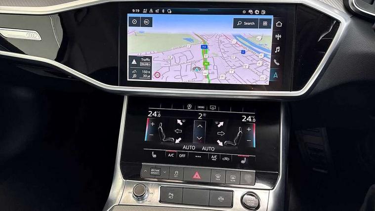 7" high resolution colour driver information display system, Audi connect safety and service (e-call), Audi drive select, Audi parking system plus - acoustic and visual park assist system for front and rear, Audi smartphone interface, Automatic start/stop system with coasting functionality, Bluetooth interface, Cruise control + speed limiter, Electric boot lid release, Lane departure warning system, Progressive steering, Rear view camera, Service interval indicator, Voice control system, Standard suspension, Audi music interface, Audi sound system, Auxiliary input socket, DAB Digital radio, USB connection, All weather LED headlights, Body colour bumpers, Body coloured door mirrors, Electric front/rear windows, Frameless auto dimming interior rear view mirror, Heat insulating glass in side and rear windows, Heat insulating glass in windshield, LED rear lights, Matt black rear diffuser with diffuser strip and tailpipes in chrome, Matt black side air intake grille with inlay in matt aluminium, Radiator grille in titanium black matt, single frame in chrome and horizontal struts in matt aluminium silver, Rain and light sensors, 2 zone deluxe electronic climate control, 3 spoke high multi-function leather steering wheel with shift paddles, 4 way electric lumbar support for driver and front passenger, 40/20/40 split folding 3 rear seat bench in 3 parts with rear centre armrest, Centre armrest matches seat colour, Door sill trims with aluminium inlay, Front centre armrest, Front head restraints, Front/rear floor mats, Heated front seats, Height/reach adjust steering wheel, Illuminated sun visors with vanity mirrors, ISOFIX child seat mounting and Top Tether with front passenger airbag deactivation, Leather gear knob, Lunar silver cloth headlining, Manually adjustable front seats, Rear headrests, Tool kit and car jack, LED Interior Ambient Lighting Pack - A6, Non smoking pack - A6, 3 point seatbelts on all seats, Airbags - Front side, front and rear including head, Audi pre-sense front, EBD - Electronic brakeforce distribution, Electromechanical parking brake, Electronic Stability Control (ESC) including ABS, ASR and EDL, Extended pedestrian protection measures, Seatbelt monitoring, Tyre pressure warning light, Warning triangle and first aid kit, Anti theft alarm with tow away protection, Anti-theft wheel bolts and wheel loosening detection, Immobiliser, Keyless Go, Remote central locking, Aluminium fragment inlay,