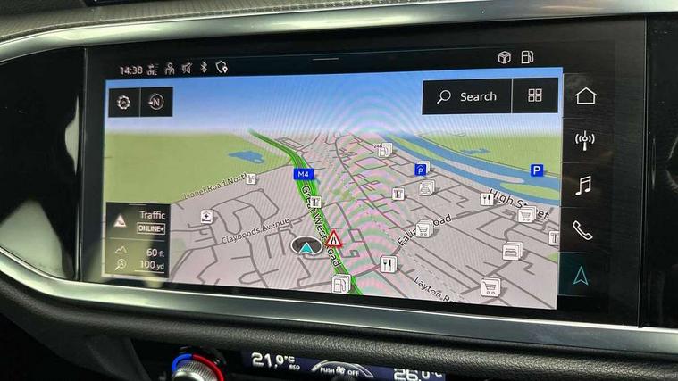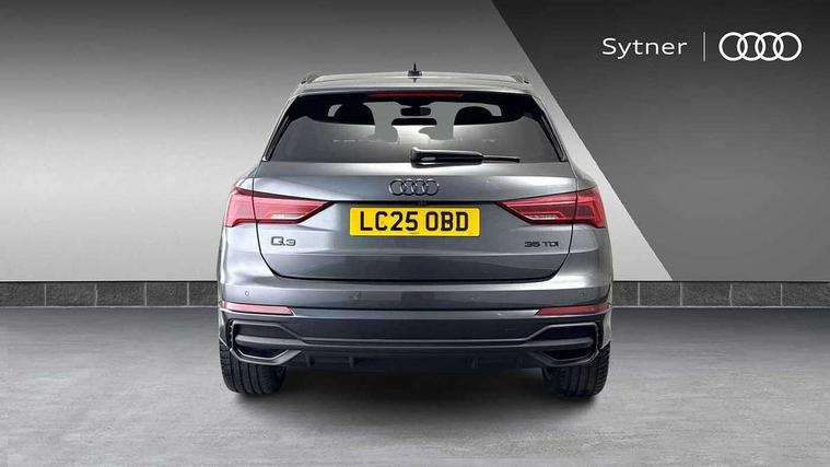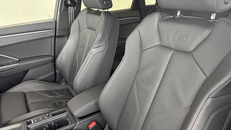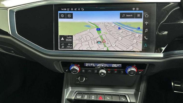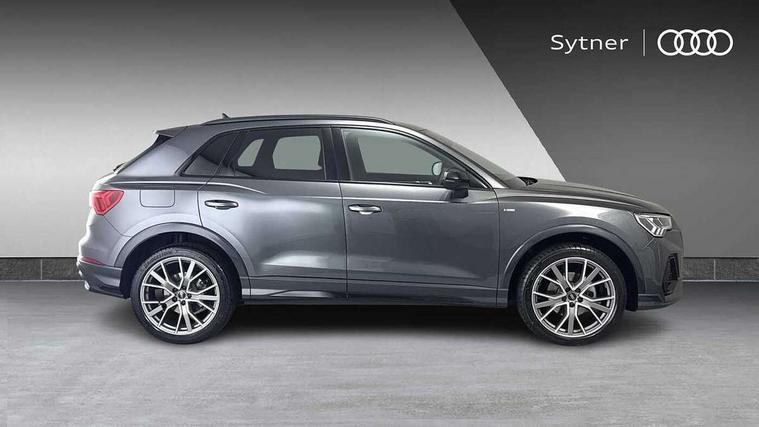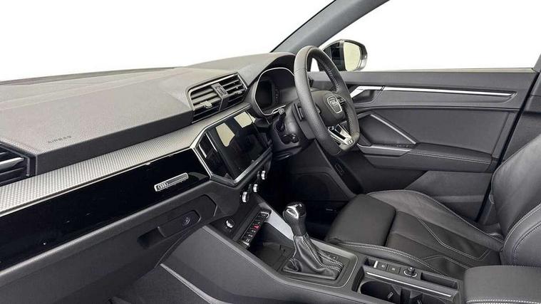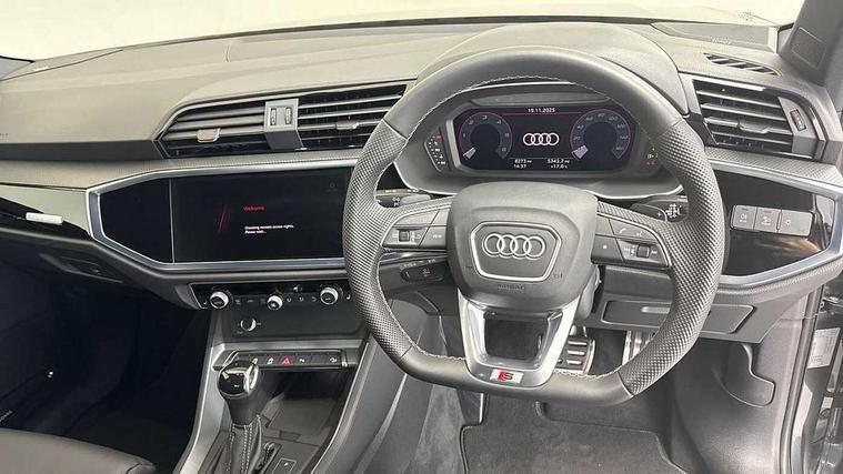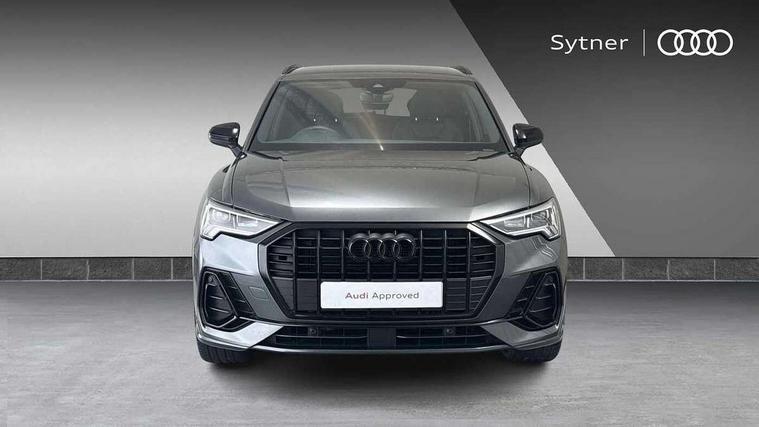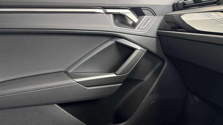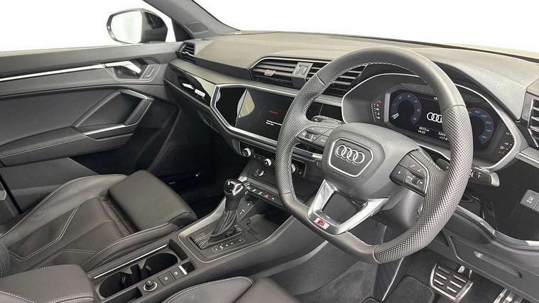 Amazon alexa Integration, Audi connect safety and service, Audi drive select, Audi lane departure warning, Audi Virtual Cockpit - 10.25" display, Bluetooth interface, Camera based traffic sign recognition, Distraction and Fatigue warning, Legal emergency call, MMI Navigation Plus with high resolution 10.1 inch touchscreen colour display, Power operated tailgate, Progressive steering, Service interval indicator, Smartphone interface includes wireless Apple carplay/Android Auto, Start stop system with recuperation, Voice control system with natural language interaction, Diesel particulate filter, Sports suspension, 2 USB-C ports with charge and data functions, 6 passive loudspeakers, DAB digital radio module, Acoustic windscreen, Audi Beam uses LEDs to project the Audi logo onto the ground as you exit your Q3, Auto dimming door mirrors, Auto dimming frameless rear view mirror, Black roof rails, Electrically folding, adjustable and heated door mirrors with integrated LED side indicators and kerb view function for passenger side, Front and rear electric windows, Front fog lights, Grille vertical bars in aluminium silver/Matt, High gloss black finish B and C pillars, LED Dynamic rear indicators, LED headlights with LED daytime running lights, LED rear lights, LED third brake light, Privacy glass dark tinted rear and rear-side windows (from B-pillar backwards), Rain and light sensors, Rear diffuser grille in grained matt black, Rear diffuser strip in matt anthracite black, Rear side wing doors, Rear wiper, S line bumpers in contrasting Manhattan grey, Variable front intermittent wipers, 12V socket in rear centre console, 3 seat bench in 2nd row, 40:20:40 folding with manual adjustment for 60:40 forwards/backwards position and backrest angle, Adjustable rear seat bench/backrest with centre armrest and cupholder, Black cloth headlining, Dual zone electronic climate control, Electric lumbar support, Front and rear black floor mats with contrast stitching in rock grey, Front and rear headrests, Front centre armrest, Height and reach adjustable steering wheel, Illuminated door sill trims with S logo, ISOFIX child seat mounting for front passenger with airbag deactivation and outer rear seat including top tether attachment point for outer rear seats, Manual front seats with height adjustment, Perforated leather gearknob, Single front passenger seat, Stainless steel luggage compartment sill finisher, Stainless steel pedals, Twin leather upholstery with front sport seats + S embossing, Black styling pack - Q3, Non smoking pack - Q3, 3x3 point rear seatbelts, 6 airbags - Driver, front passenger, curtain and side windows, Audi pre-sense front with pedestrain and cyclist recognition, Electrically operated child locks on rear doors, Electromechanical parking brake, Electronic stabilisation control including ABS, ASR and EDL, Front seatbelt reminder, Hill descent control, Hill hold assist, Pre sense basic, Seatbelt monitoring, Tyre pressure warning, Warning triangle and first aid kit, Anti theft wheel bolts, Immobiliser, Remote central locking, Thatcham approved category 1 anti theft alarm, Aluminium look interior elements, Detail dashboard around MMI touch colour display in glass look, black with surround in aluminium look, Leatherette door armrest, Piano black inlay,