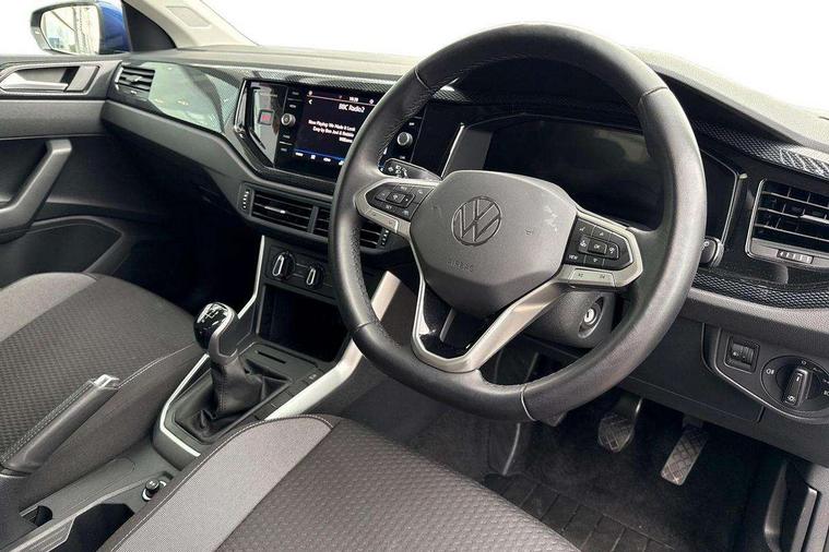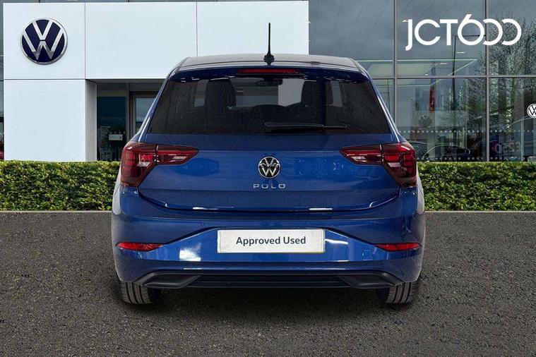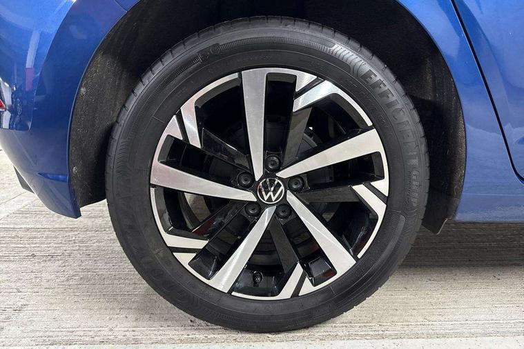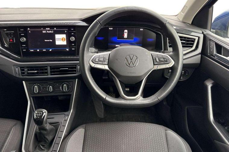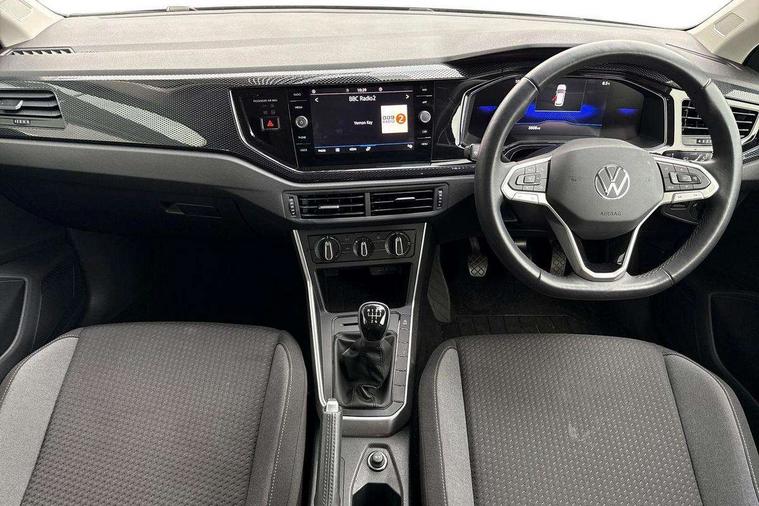 Adaptive cruise control without follow-to-stop and speed limiter, Advanced driver attention and drowsiness monitor, Bluetooth mobile phone interface, Dynamic road sign display, Emergency call service, Multifunction front facing camera for distance control, Park distance control, Power assisted speed sensitive steering, Preparation for navigation system with media and internet package, Preparation for We connect and We connect plus, Rear view camera, Speedo and rev counter, electronic odometer, trip, service interval display and exterior temperature gauge, Standard rear axle, Travel Assist - Lane keeping system and traffic jam assist, Travel assist including emergency assist, Trip computer, Warning signal and warning light for front and rear seatbelts not fastened, Washer fluid level indicator, Wireless app connect, Front wheel drive, Rear shock absorpion, Start-stop system with battery regeneration (recuperation - energy recovery during braking), DAB Digital radio, Diversity antenna for FM reception, Front and rear 6 speakers, Automatic dimming interior rear view mirror, Automatic headlight control with LED separate daytime running lights with coming/leaving home function, Body colour bumpers with chrome inserts, Body colour door handles, Body colour door mirrors, Electric front windows, Engine badge deletion, Headlight range adjustment, Heat insulating and laminated safety glass windshield, LED Headlights, LED rear combination lamps, Power folding adjustable/heated exterior mirrors and front passenger exterior mirror lowering function, Rain sensor, Rear electric windows, Rear fog light, Rear side wing doors, Rear tinted glass from B-pillar backwards approx 65% tinted, Rear windscreen washer and wiper with interval delay, Third brake light, 12V power socket in centre console, 2 front and 2 rear reading lights with switch off delay and dimmer, 2 USB-C ports in the front, 2 USB-C charging sockets on the center console in the rear, 3 rear head restraints, 60/40 split folding rear seat and rear seat bench not split, Ceramique roof lining, Chrome plated radiator grille inserts, air vent surrounds and light switch surrounds, Door and side trim panel, Driver and front passenger seat height adjustment, Driver/passenger sunvisors with illuminated vanity mirrors, Front centre armrest, Front seat backrest storage pockets, Front standard seats, Handbrake lever handle in leather, Hartley/Thomas cloth upholstery, Headliner in recycled material, Isofix child seat preparation easy-fit (for two outer rear seats, and front passenger seat) compatible with I-size, Leather trimmed gear knob, Luggage compartment cover, Luggage compartment lighting, Removable luggage compartment floor, Single front passenger seat, Standard climatic zones, Standard pedal cluster, Three spoke leather wrapped multifunction steering wheel, Light and vision pack - Polo, 3 point height adj front seatbelts + pretensioners, 3 point seat belt for centre rear seat, 3 point seatbelts, outer rear with ECE lable, ABS, Driver and front passenger airbag with front passenger airbag deactivation, Drivers and front passengers safety optimised head restraints, ESC (Electronic stability control) + EDL (Electronic Differntial lock) and ASR (Traction control), Extended and predictive pedestrian/ cyclist protection, Front assist with autonomous emergency braking (for Adaptive Cruise Control ACC up to 130 mph), Front curtain and side airbags with center airbag, Front disc brakes, Hill hold control, Manual child lock in rear doors, Rear drum brakes, Single tone horn, Tyre pressure loss indicator, Alarm with interior protection, Anti-theft alarm system with interior monitoring, backup horn, and towing protection, Anti-theft wheel bolts, Electronic engine immobiliser, Lava stone black gloss/matt decorative inserts in dash and front door panels, 16" Torsby alloy wheels, Low rolling resistance tyres,