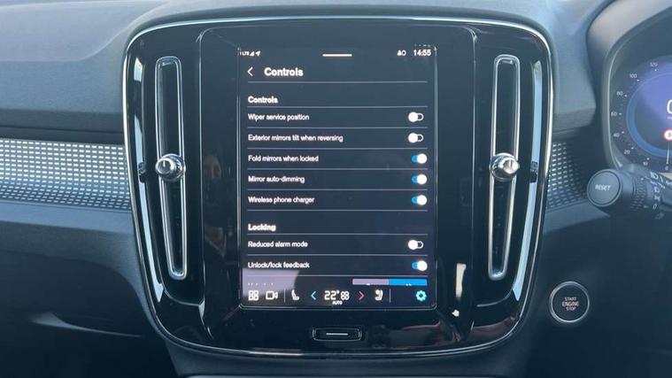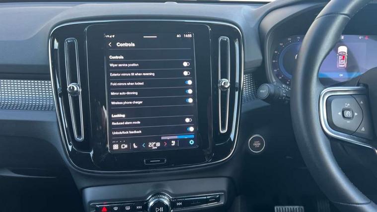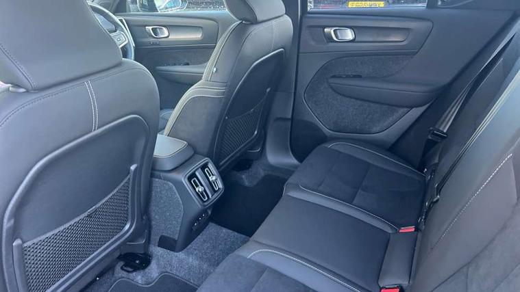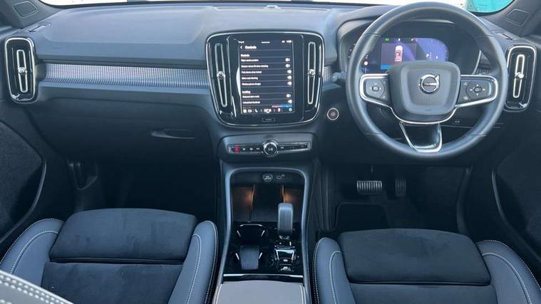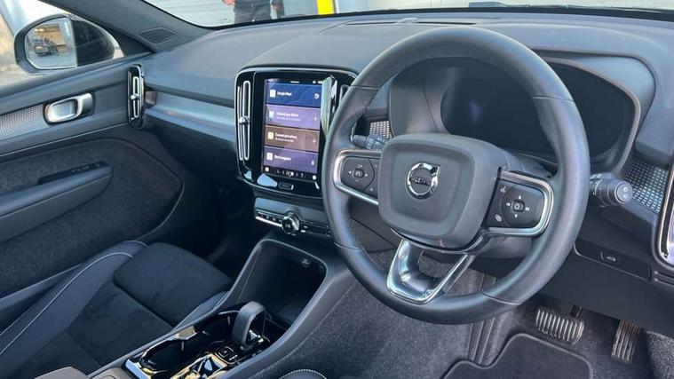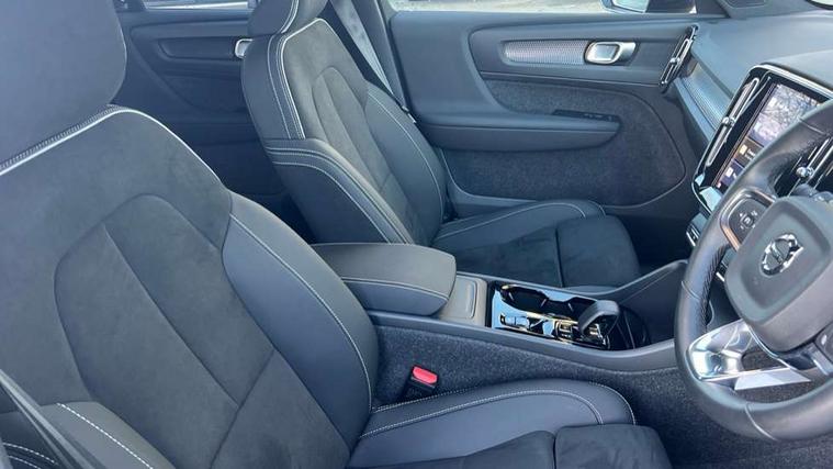 12.3" Progressive Driver Display, 9" centre console portrait touch screen, Adjustable steering wheel force, Android auto (Wired), Apple carplay (wired), Bluetooth handsfree system, Driver alert control, Driver assistance (pilot assist and adaptive cruise control), Driver awareness - Blind spot information system with steer assist, cross traffic alert with autobrake and rear collision warning and mitigation, E-call, Front park assist, Google automotive services - Enabled entertainment apps, navigation with google maps, voice recognition with google assistant, Hands free power tailgate, Intelligent speed assistance, Lane keeping aid, Oncoming Lane Mitigation, Rear park assist, Speed sensitive steering, Volvo cars services with app - Driving journal, emergency and breakdown call, engine remote start, remote door locking/unlocking and vehicle dashboard, Wireless/Inductive Mobile Phone Charging, Automatic transmission with start/stop and manual change functions, Dynamic chassis, DAB Digital radio, Steering wheel mounted remote controls, Adaptive brake lights with high level LED brake lights, Auto dimming feature for exterior door mirrors, Auto dimming interior mirror, Automatic headlamp levelling, Automatic LED Headlights + Active high beam incorporating daytime running lights, Colour coordinated auto folding and heated power door mirrors, Dark tinted windows - rear side windows and rear screen, Front aluminium tread plates, Front and rear electric windows, High gloss black front and rear skid plate, High gloss black front bumper deco, High gloss black front grille strikethrough and ironmark, High gloss black rear model, engine and volvo logo badges, High gloss black window trim, Home safe and approach lighting, Integrated roof rails in high gloss black, LED front fog lights, Puddle lights, Rain sensor with automatic windscreen wiper activation, Rear side wing doors, Rear wiper, Roof antenna, Roof spoiler, Visible VIN plate, 12V socket in front tunnel console and luggage compartment, 2-Zone electronic climate control with CleanZone air quality system and pollen filter, 3 seat bench in 2nd row, 3 Spoke tailored steering wheel with chrome trim, 60/40 versatile split folding rear seat, Centre console cupholders and storage, Charcoal headlining, Connect textile/microtech upholstery, Flexible load floor and grocery bag holder, Floor mats, Front cabin courtesy lights, Front door pocket, front cupholder, ambient front door, rear reading, rear courtesy, instrument panel and tailgate lighting, Front footwell illumination, Front headrests, Front reading lights, Front seat cushion extensions, Front side step illumination (under door), Glovebox bag hook, Heated front seats, Height adjustable passenger seat, Height/reach adjustable steering column, High gloss centre tunnel deco, Illuminated glovebox, Illuminated luggage compartment, Illuminated vanity mirrors + ticket holder, Integrated waste bin, Isofix attachments on outer rear seats, Load cover, Load protection net, Multi directional lumbar support for driver and passenger seat, Power driver seat with memory + exterior mirrors memory, Rear armrest with cupholders, Rear headrests, Single front passenger seat, Underfloor cargo storage, Climate pack without heated front seats - XC40, 3x3 point rear seatbelts, City safety with steering support with Pedestrian + cyclist + front collision warning with full auto brake and rear auto brake, Driver and passenger airbags, Drivers knee airbag, Electronic parking brake with auto hold, First aid kit, Front and outer rear seatbelt reminder and pretensioners, Front seats SIPS airbags, Hill descent control, Hill start assist, Inflatable curtain, Passenger airbag cut-off device, Power child locks on rear doors, Road sign information display, Run off Road Protection, SIPS (Side Impact Protection System), Slippery road and hazard light alert, Stability and Traction Control with Spin control, Engine Drag Control and Corner Traction Control, Tyre pressure monitoring system, Vehicle deceleration control with Anti-lock Brake System, Electronic Brake Distribution and Emergency Brake Assist, Warning triangle, WHIPS whiplash protection system - front, 2 x Key integrated remote control central locking including with deadlocking system and auto open/close windows, Anti-theft alarm including immobiliser/volume sensor + level sensor, Keyless drive includes keyless entry and keyless start, Locking wheel nuts, 20" 5 spoke high gloss black alloy wheels,