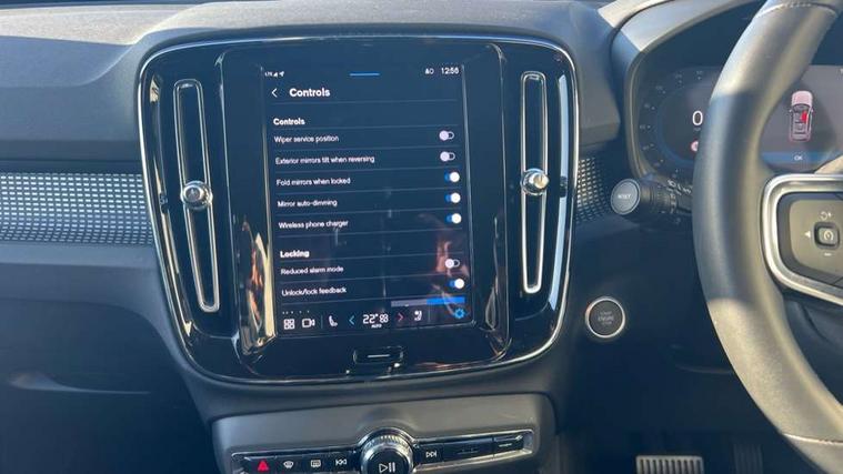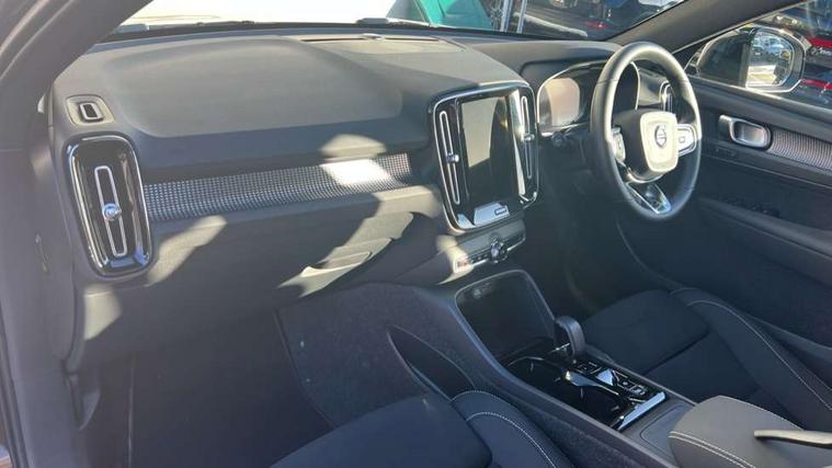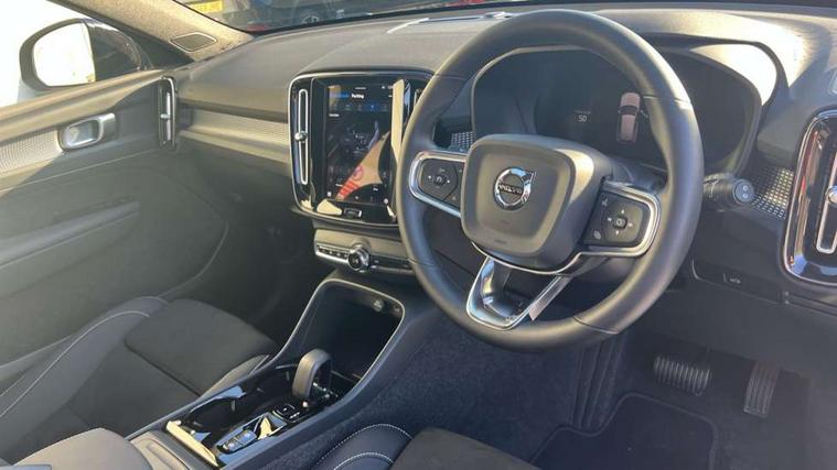 12.3" Progressive Driver Display, 9" centre console portrait touch screen, Adjustable steering wheel force, Android auto (Wired), Apple carplay (wired), Bluetooth handsfree system, Driver alert control, Driver assistance (pilot assist and adaptive cruise control), Driver awareness - Blind spot information system with steer assist, cross traffic alert with autobrake and rear collision warning and mitigation, E-call, Front park assist, Google automotive services - Enabled entertainment apps, navigation with google maps, voice recognition with google assistant, Hands free power tailgate, Intelligent speed assistance, Lane keeping aid, Oncoming Lane Mitigation, Rear park assist, Speed sensitive steering, Volvo cars services with app - Driving journal, emergency and breakdown call, engine remote start, remote door locking/unlocking and vehicle dashboard, Wireless/Inductive Mobile Phone Charging, Automatic transmission with start/stop and manual change functions, Dynamic chassis, DAB Digital radio, Steering wheel mounted remote controls, Adaptive brake lights with high level LED brake lights, Auto dimming feature for exterior door mirrors, Auto dimming interior mirror, Automatic headlamp levelling, Automatic LED Headlights + Active high beam incorporating daytime running lights, Front aluminium tread plates, Front and rear electric windows, High gloss black front and rear skid plate, High gloss black front bumper deco, High gloss black mesh front grille with high gloss black surround, High gloss black window trim, Home safe and approach lighting, Integrated roof rails in high gloss black, LED front fog lights, Puddle lights, Rain sensor with automatic windscreen wiper activation, Rear side wing doors, Rear wiper, Roof antenna, Roof spoiler, Visible VIN plate, 12V socket in front tunnel console and luggage compartment, 2-Zone electronic climate control with CleanZone air quality system and pollen filter, 3 seat bench in 2nd row, 3 Spoke tailored steering wheel with chrome trim, 60/40 versatile split folding rear seat, Centre console cupholders and storage, Charcoal headlining, Connect textile/microtech upholstery, Flexible load floor and grocery bag holder, Floor mats, Front cabin courtesy lights, Front door pocket, front cupholder, ambient front door, rear reading, rear courtesy, instrument panel and tailgate lighting, Front footwell illumination, Front headrests, Front reading lights, Front seat cushion extensions, Front side step illumination (under door), Glovebox bag hook, Heated front seats, Height adjustable passenger seat, Height/reach adjustable steering column, High gloss centre tunnel deco, Illuminated glovebox, Illuminated luggage compartment, Illuminated vanity mirrors + ticket holder, Integrated waste bin, Isofix attachments on outer rear seats, Load cover, Load protection net, Multi directional lumbar support for driver and passenger seat, Power driver seat with memory + exterior mirrors memory, Rear armrest with cupholders, Rear headrests, Single front passenger seat, Underfloor cargo storage, Climate pack without heated front seats - XC40, 3x3 point rear seatbelts, City safety with steering support with Pedestrian + cyclist + front collision warning with full auto brake and rear auto brake, Driver and passenger airbags, Drivers knee airbag, Electronic parking brake with auto hold, First aid kit, Front and outer rear seatbelt reminder and pretensioners, Front seats SIPS airbags, Hill descent control, Hill start assist, Inflatable curtain, Passenger airbag cut-off device, Power child locks on rear doors, Road sign information display, Run off Road Protection, SIPS (Side Impact Protection System), Slippery road and hazard light alert, Stability and Traction Control with Spin control, Engine Drag Control and Corner Traction Control, Tyre pressure monitoring system, Vehicle deceleration control with Anti-lock Brake System, Electronic Brake Distribution and Emergency Brake Assist, Warning triangle, WHIPS whiplash protection system - front, 2 x Key integrated remote control central locking including with deadlocking system and auto open/close windows, Anti-theft alarm including immobiliser/volume sensor + level sensor, Keyless drive includes keyless entry and keyless start, Locking wheel nuts,