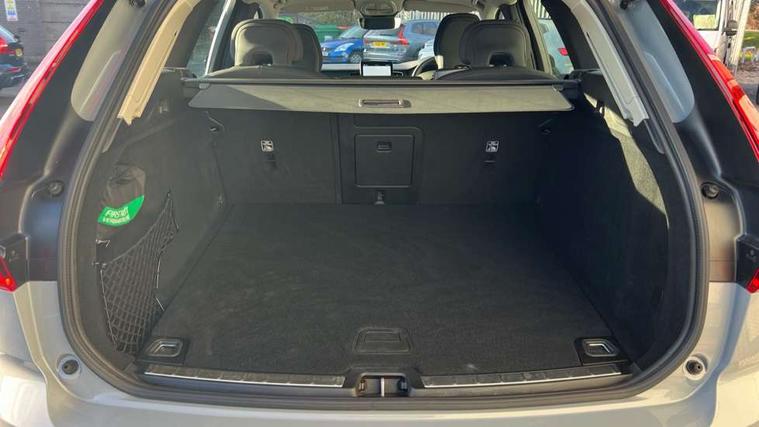 11.2" centre console touch screen, 12.3" Progressive Driver Display, 360 degree surround view parking camera with side proximity sensors, Adaptive cruise control, Adjustable steering wheel force, Android auto (Wired), Apple carplay (wired), Bluetooth handsfree system, Driver alert control with lane keeping aid, Emergency services call system, Front and rear park assist, Google Automotive Services, Intelligent speed assistance, Oncoming Lane Mitigation, PAS, Power operated tailgate with handsfree opening and closing, Service interval indicator, Speed limiter, Speed sensitive steering, Trip computer, Volvo cars services with app, Volvo on call with App, Wireless/Inductive Mobile Phone Charging, 8 speed automatic transmission with start/stop + manual change functions, DAB Digital radio, Premium Sound by Harman Kardon, dirac unison, dolby pro logic II surround sound, 13 speakers/600W output and fresh air subwoofer, Steering wheel remote infotainment controls, Adaptive brake lights with high level LED brake lights, Auto dimming interior + exterior mirrors, Automatic headlight levelling system, Automatic LED Headlights + Active high beam incorporating daytime running lights, Electric adjustable/heated/auto power folding door mirrors, Electric front+rear windows, Front aluminium tread plates, Heated front windscreen, High gloss black door mirrors, High gloss black front and rear bumper decoratives, High gloss black mesh front grille with high gloss black surround, Home safe and approach lighting, Integrated roof rails in high gloss black, Puddle lights, Rain sensor with automatic windscreen wiper activation, Rear side wing doors, Rear wiper, Roof antenna, Roof spoiler, Tinted windscreen, Visible VIN plate, 12V socket in front tunnel console and luggage compartment, 3 seat bench in 2nd row, 3 Spoke tailored steering wheel with chrome trim, 4 Zone electronic climate control, A-pillar parking ticket holder, Air purifier particulate matter (PM) 2.5 filter, B Pillar ventilation, Bright metal luggage scuff plate, Centre console cupholders and storage, Charcoal floor mats, Front and rear courtesy lights, Front and rear door pocket illumination, Front cupholder illumination, Front footwell illumination, Front reading lights, Front seat cushion extensions, Glovebox compartment with illumination, Head restraints for all seats, Heated front seats, Heated steering wheel, Height/reach adjustable steering column, Illuminated luggage compartment, Illuminated vanity mirrors + ticket holder, Inner door release handle illumination, ISOFIX attachment on outer rear seats, Load cover, Load protection net, Multi directional lumbar support, Power driver seat with memory + exterior mirrors memory, Power height adjustable passenger seat, Power passenger seat with memory, Quilted nordico leather upholstery, Rear armrest with cupholder, Rear footwell and front and rear side step illumination, Rear reading lights, Rear seat concealed storage, Single front passenger seat, Tailgate illumination and ambient door lighting, Underfloor stowage compartment, Versatile split folding rear seat - 60/40, Driver assist pack without Adaptive cruise control - XC60, 5 three point seatbelts, City safety with steering support with Pedestrian + cyclist + front collision warning with full auto brake and rear auto brake, Drivers knee airbag, Dual stage driver/passenger airbags, Electronic parking brake with auto hold, First aid kit, Front seats SIPS airbags, Hill descent control - Off-road drive mode, Hill start assist, IC (Inflatable Curtains) - Full Length, Passenger airbag cut-off device, Power child locks on rear doors, Road sign information display, Run off Road Mitigation, Run off Road Protection, Seatbelt reminder and pretensioners, SIPS (Side Impact Protection System), Slippery road and hazard light alert, Stability and Traction Control with Spin control, Engine Drag Control and Corner Traction Control, Tyre pressure monitoring system, Vehicle deceleration control with Anti-lock Brake System, Electronic Brake Distribution and Emergency Brake Assist, Warning triangle, WHIPS whiplash protection system - front, Anti-theft alarm including immobiliser/volume sensor + level sensor, Key integrated remote control central locking + fuel flap with deadlocking system and auto open/close power windows, Keyless Drive (includes Keyless Entry and Keyless Start), Locking wheel nuts, Private locking for tailgate, Summer tyres,