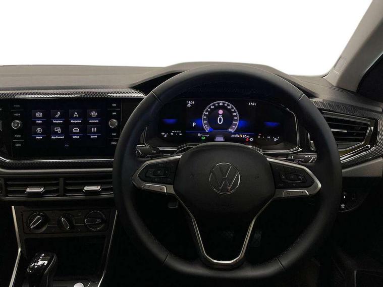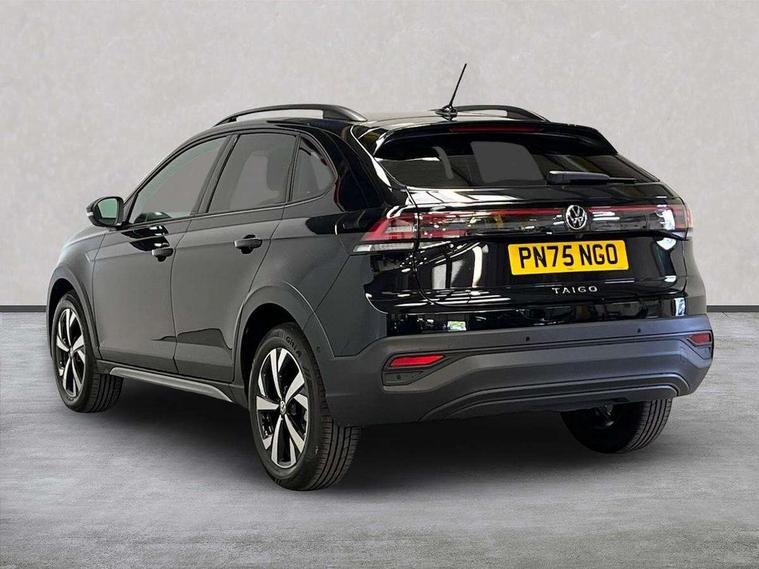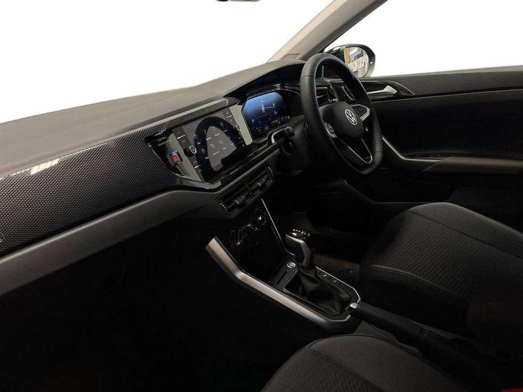 8" Digital cockpit basic display, Adaptive cruise control, Advanced driver attention and drowsiness monitor, Dynamic road sign display, e-Call (emergency call), Power Steering, Rear view camera, Travel assist including emergency assist, Washer fluid level indicator, Wireless Charging including Bluetooth, Start-stop system with battery regeneration (recuperation - energy recovery during braking), Digital radio reception (DAB+), WeConnect plus, Ambient lighting with logo projection, Aspherical driver's exterior mirror, Body coloured bumpers, Body coloured exterior mirror housings and door handles, Electric windows, External USB type C socket and charging sockets, Heat insulating glass windscreen, LED rear combination lamp, LED third brake light, Left convex exterior mirror, Power folding adjustable/heated exterior mirrors and front passenger exterior mirror lowering function, Rear fog light on one side, reversing light on both sides, Rear side wing doors, Rear wash/wipe with intermittent wipe setting, Side windows in heat-insulating glass, from B-pillar and rear window dark tinted, 'Slash/ Austin' Cloth upholstery, 12V socket in centre console, 2 front reading lights, 3 rear head restraints, 3 seat bench in 2nd row, Black carpets, Ceramique headliner, Child seat anchor for child seat system i-Size, 2x top tether and child seat anchor in front on front passenger side, Door and side trim panels in titan black, Driver and front passenger seat height adjustment, Front centre armrest, Handbrake lever handle in leather, Height and reach adjustable steering wheel, Leather trimmed gear knob, Leather wrapped multifunction steering wheel with paddle shift, Luggage compartment floor, Luggage compartment light, Lumbar support for driver's and front passengers seat, Seat covers in titanium black, Single front passenger seat, Split folding backrest with centre armrest and unsplit rear seat bench, Storage compartment under front seats, Sun visors with illuminated vanity mirrors, Titanium black instrument panel, Chrome Package - Taigo, Drivers assistance package - Taigo, Light and sight pack - Taigo, 2 x 3-point seatbelts/outer rear seats with ECE label, 3-point seat belts in front with pretensioner and height adjustment, 3-point seatbelt for centre rear seat, Driver and front passenger airbag with front passenger airbag deactivation, Driver and front passenger safety-optimised head restraints, Electronic stability control, Extended and predictive pedestrian/ cyclist protection, Front and rear disc brakes, Front curtain and side airbags with center airbag, Hill start assist, Manual rear child locks, Single tone horn, Tyre pressure loss indicator, Anti-theft alarm system with interior monitoring, backup horn, and towing protection, Keyless locking and starting system keyless access with safelock, Black (slush) Dashboard, Lava stone black gloss/matt decorative inserts in dash and front door panels, Low rolling resistance tyres,