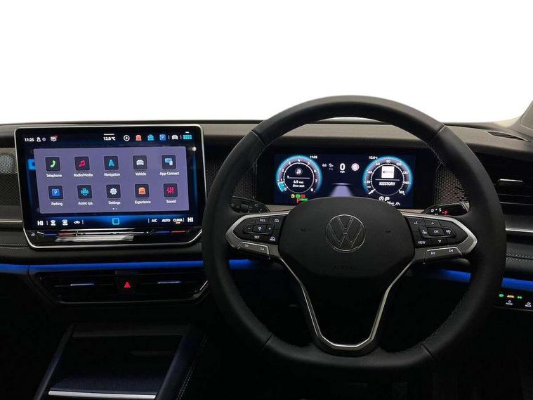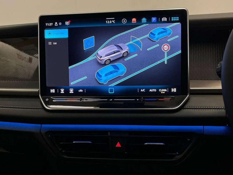Adaptive cruise control (ACC), Digital Cockpit Pro - 10.25" high resolution dash display screen with customisable menus and information, Driver alert system, Driver attention monitoring system, Dynamic road sign display, E-Sim card for online connectivity, eCall emergency call system, Lane change system, Side assist, Rear traffic alert and Exit warning system, Multifunction front facing camera, Oncoming vehicle braking when turning including swerve support, Start/stop system with regenerative braking, Voice activation spoken voice commands for telephone and navigation system, Warning signal and warning light for front and rear seatbelts not fastened, Wireless App-Connect, Front wheel drive, Digital radio reception (DAB), Diversity antenna for FM reception, Auto dimming interior rear view mirror, Automatic headlight control system, Body colour door handles, Body-coloured exterior mirror housings, Chrome moldings on the side windows, Comfort bumpers, Coming/leaving home lighting function, Exterior mirrors convex on the left and aspherical on the right, Heat insulating glass in side and rear windows, Laminated safety glass winshield, heat insulating, LED 3rd brake light, Puddle lights, Rain sensor windscreen wipers, Rear fog light on one side, reversing light on both sides, Rear side wing doors, Rear wiper, Reverse activated passenger's door mirror, Surround lighting with welcome light, 12V outlet in center console rear and in luggage compartment, 3 rear headrests, 3 rear seat bench in 2nd row, backrest split folding with centre armrest and 2 seats in 3rd row of seats, Carpet mats, front and rear, Centre console with illuminated storage compartment with sliding cover and two drinks holders, Door and side trim panel with leatherette insert, Flat luggage compartment floor, Front centre armrest, ISOFIX anchors for child seats on outer rear seats and front passenger seat compatible with i-Size, Mechanical rear seat release, Power adjustable lumbar support in front, Single front passenger seat, Sun visors with illuminated vanity mirrors, 3 Point seat belts in front with pretensioners, 3 point seatbelts in outer rear with ECE label, Autonomous emergency braking front assist with pedestrian and cyclist monitoring, Driver and front passenger airbag with front passenger airbag deactivation, Electronic parking brake with auto hold, First aid kit with warning triangle and safety vest, Front and rear curtain airbags, Front and rear side airbags, Front centre airbag, Front disc brakes, Hill start assist, Rear disc brakes, Two tone horn, Decorative material set,