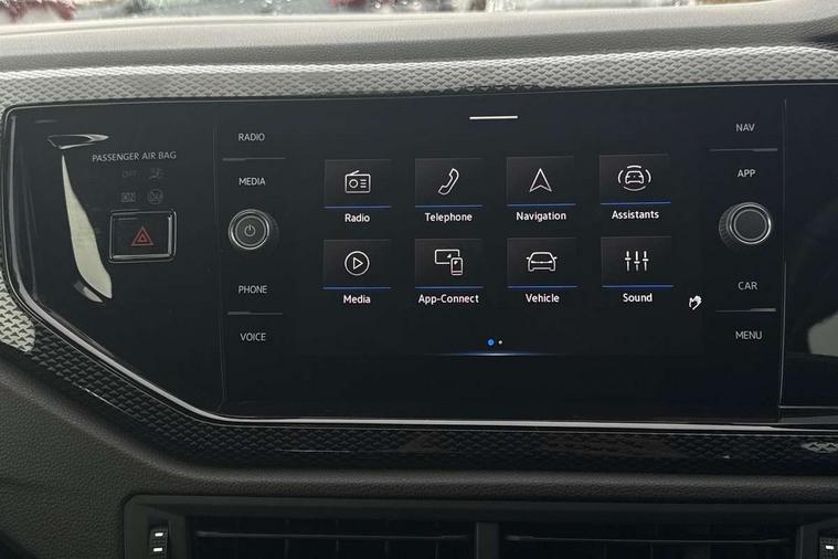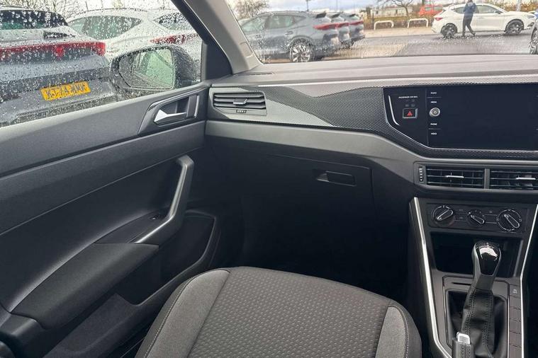 Adaptive cruise control with follow-to-stop and speed limiter, Advanced driver attention and drowsiness monitor, Bluetooth mobile phone interface, Dynamic road sign display, Emergency call service, Power assisted speed sensitive steering, Preparation for navigation system with media and internet package, Preparation for We connect and We connect plus, Speedo and rev counter, electronic odometer, trip, service interval display and exterior temperature gauge, Standard rear axle, Travel Assist - Lane keeping system and traffic jam assist, Travel assist including emergency assist, Trip computer, Warning signal and warning light for front and rear seatbelts not fastened, Washer fluid level indicator, Wireless app connect, Front wheel drive, Rear shock absorpion, Start-stop system with battery regeneration (recuperation - energy recovery during braking), DAB Digital radio, Diversity antenna for FM reception, Automatic dimming interior rear view mirror, Automatic headlight control with LED separate daytime running lights with coming/leaving home function, Body colour bumpers with chrome inserts, Body colour door handles, Body colour door mirrors, Electric front windows, Engine badge deletion, Headlight range adjustment, Heat insulating and laminated safety glass windshield, Heat insulating darkened glass in side and rear windows, Heat insulating glass windscreen, LED Headlights, LED rear combination lamps, Power folding adjustable/heated exterior mirrors and front passenger exterior mirror lowering function, Rain sensor, Rear electric windows, Rear fog light, Rear side wing doors, Rear windscreen washer and wiper with interval delay, Third brake light, 12V power socket in centre console, 2 front and 2 rear reading lights with switch off delay and dimmer, 2 USB-C ports in the front, 2 USB-C charging sockets on the center console in the rear, 3 rear head restraints, 60/40 split folding rear seat and rear seat bench not split, Ceramique roof lining, Chrome plated radiator grille inserts, air vent surrounds and light switch surrounds, Door and side trim panel, Driver and front passenger seat height adjustment, Driver/passenger sunvisors with illuminated vanity mirrors, Front centre armrest, Front seat backrest storage pockets, Front standard seats, Handbrake lever handle in leather, Hartley/Thomas cloth upholstery, Headliner in recycled material, Isofix child seat preparation easy-fit (for two outer rear seats, and front passenger seat) compatible with I-size, Leather trimmed gear knob, Luggage compartment cover, Luggage compartment lighting, Removable luggage compartment floor, Single front passenger seat, Standard climatic zones, Standard pedal cluster, Three spoke leather wrapped multifunction steering wheel with shifting paddles, Light and vision pack - Polo, 3 point height adj front seatbelts + pretensioners, 3x3 point rear seatbelts, ABS, Driver and front passenger airbag with front passenger airbag deactivation, Drivers and front passengers safety optimised head restraints, ESC (Electronic stability control) + EDL (Electronic Differntial lock) and ASR (Traction control), Extended and predictive pedestrian/ cyclist protection, Front assist with autonomous emergency braking (for Adaptive Cruise Control ACC up to 130 mph), Front curtain and side airbags with center airbag, Front disc brakes, Hill hold control, Manual child lock in rear doors, Rear drum brakes, Single tone horn, Tyre pressure loss indicator, Alarm with interior protection, Anti-theft alarm system with interior monitoring, backup horn, and towing protection, Anti-theft wheel bolts, Electronic engine immobiliser, Lava stone black gloss/matt decorative inserts in dash and front door panels, Low rolling resistance tyres,