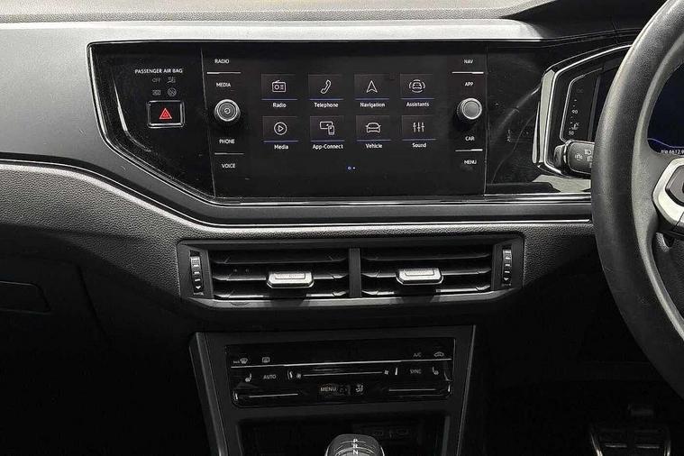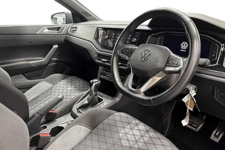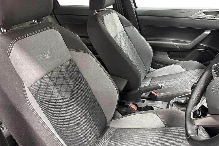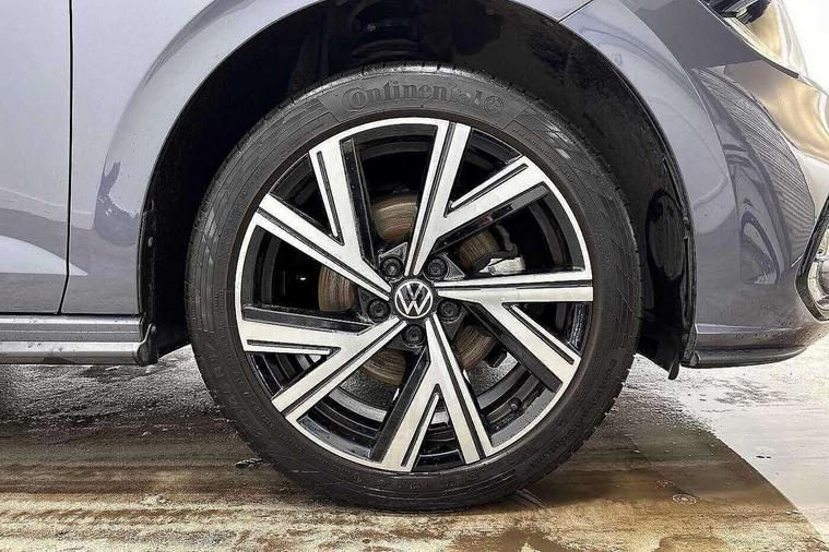 Adaptive cruise control with follow-to-stop and speed limiter, Advanced driver attention and drowsiness monitor, Bluetooth mobile phone interface, Digital Cockpit Pro with 10.25" Display, Dynamic road sign display, Emergency call service, Multifunction camera, Power assisted speed sensitive steering, Preparation for We connect and We connect plus, Speedo and rev counter, electronic odometer, trip, service interval display and fuel gauge, Standard rear axle, Travel Assist - Lane keeping system and traffic jam assist, Travel assist including emergency assist, Trip computer, Warning signal and warning light for front and rear seatbelts not fastened, Washer fluid level indicator, Wireless app connect, Front wheel drive, Rear shock absorpion, Start-stop system with battery regeneration (recuperation - energy recovery during braking), DAB Digital radio, Diversity antenna for FM reception, Front and rear 6 speakers, Body colour bumpers, Body colour door handles, Electric front windows, Front scuff plates with R-Line logo, Heat insulating glass windscreen, Power folding adjustable/heated exterior mirrors and front passenger exterior mirror lowering function, Rear electric windows, Rear fog light, Rear side wing doors, Rear windscreen washer and wiper with interval delay, Third brake light, 12V power socket in centre console, 2 USB-C ports in the front, 2 USB-C charging sockets on the center console in the rear, 3 rear head restraints, 60/40 split folding rear seat and rear seat bench not split, Air care climatronic air conditoning system with active combination filter and 2-zone temperature control, Black roof lining, Carpet mats, front and rear, Chrome plated radiator grille inserts, air vent surrounds and light switch surrounds, Door and side trim panel, Driver and front passenger seat height adjustment, Driver/passenger sunvisors with illuminated vanity mirrors, Front centre armrest, Front footwell illumination, Front seat backrest storage pockets, Front sports comfort seats, Handbrake lever handle in leather, Headliner in recycled material, Isofix child seat preparation easy-fit (for two outer rear seats, and front passenger seat) compatible with I-size, Karoso artvelours cloth upholstery, Leather trimmed gear knob, LED interior light with switch off delay and dimmer, 2 reading lights front and rear, Luggage compartment cover, Luggage compartment floor, Luggage compartment lighting, Lumbar adjustment for front seats, Single front passenger seat, Stainless steel pedals, Standard pedal cluster, Three spoke leather wrapped multifunction steering wheel with shifting paddles, Light and sight pack - Polo R-Line/Black Edition, 3 point height adj front seatbelts + pretensioners, 3x3 point rear seatbelts, ABS, Driver and front passenger airbag with front passenger airbag deactivation, Drivers and front passengers safety optimised head restraints, ESC (Electronic stability control) + EDL (Electronic Differntial lock) and ASR (Traction control), Extended and predictive pedestrian/ cyclist protection, Front curtain and side airbags with center airbag, Front/rear disc brakes, Hill hold control, Manual child lock in rear doors, Single tone horn, Tyre pressure loss indicator, Alarm with interior protection, Anti-theft alarm system with interior monitoring, backup horn, and towing protection, Anti-theft wheel bolts, Electronic engine immobiliser, Chrome applications on rotary light, mirror adjustment, window regulator switches, outlet with frame in black, Dark grey anodised matt decorative inserts in dash and front door panels, 16" Coventry alloy wheels, Low rolling resistance tyres,