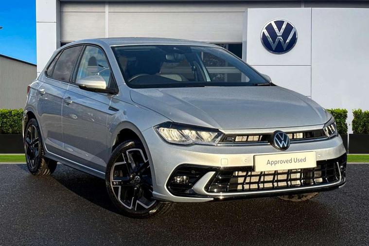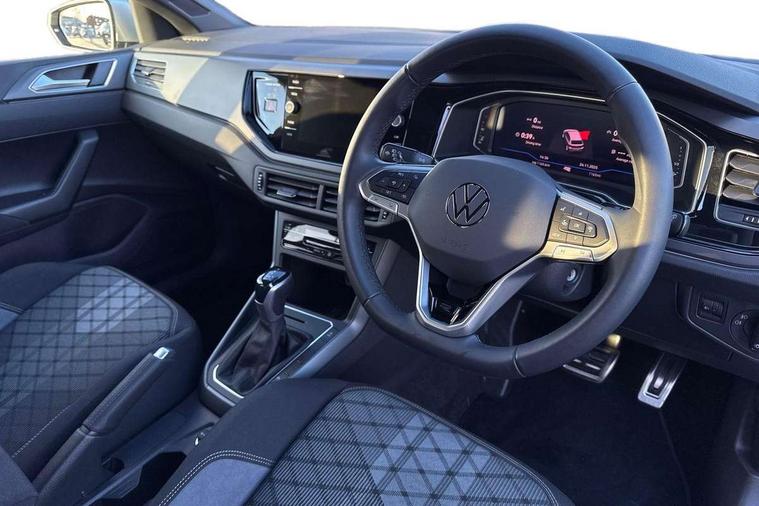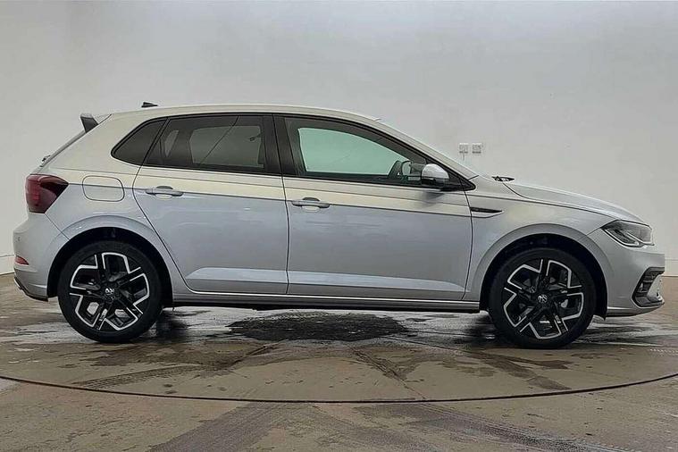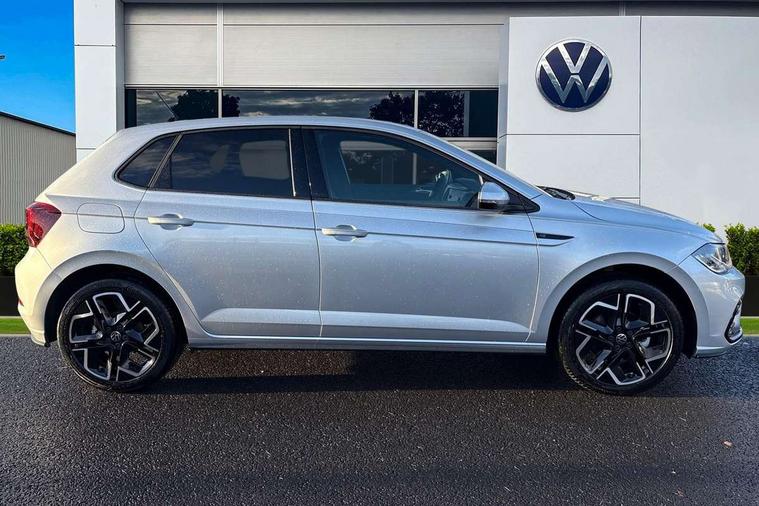 Adaptive cruise control with follow-to-stop and speed limiter, Advanced driver attention and drowsiness monitor, Bluetooth mobile phone interface, Digital Cockpit Pro with 10.25" Display, Dynamic road sign display, Emergency call service, Multifunction camera, Power assisted speed sensitive steering, Preparation for We connect and We connect plus, Speedo and rev counter, electronic odometer, trip, service interval display and fuel gauge, Standard rear axle, Travel Assist - Lane keeping system and traffic jam assist, Travel assist including emergency assist, Trip computer, Warning signal and warning light for front and rear seatbelts not fastened, Washer fluid level indicator, Wireless app connect, Front wheel drive, Rear shock absorpion, Start-stop system with battery regeneration (recuperation - energy recovery during braking), DAB Digital radio, Diversity antenna for FM reception, Front and rear 6 speakers, Body colour bumpers, Body colour door handles, Electric front windows, Front scuff plates with R-Line logo, Heat insulating glass windscreen, Power folding adjustable/heated exterior mirrors and front passenger exterior mirror lowering function, Rear electric windows, Rear fog light, Rear side wing doors, Rear windscreen washer and wiper with interval delay, Third brake light, 12V power socket in centre console, 2 USB-C ports in the front, 2 USB-C charging sockets on the center console in the rear, 3 rear head restraints, 60/40 split folding rear seat and rear seat bench not split, Air care climatronic air conditoning system with active combination filter and 2-zone temperature control, Black roof lining, Carpet mats, front and rear, Chrome plated radiator grille inserts, air vent surrounds and light switch surrounds, Door and side trim panel, Driver and front passenger seat height adjustment, Driver/passenger sunvisors with illuminated vanity mirrors, Front centre armrest, Front footwell illumination, Front seat backrest storage pockets, Front sports comfort seats, Handbrake lever handle in leather, Headliner in recycled material, Isofix child seat preparation easy-fit (for two outer rear seats, and front passenger seat) compatible with I-size, Karoso artvelours cloth upholstery, Leather trimmed gear knob, LED interior light with switch off delay and dimmer, 2 reading lights front and rear, Luggage compartment cover, Luggage compartment floor, Luggage compartment lighting, Lumbar adjustment for front seats, Single front passenger seat, Stainless steel pedals, Standard pedal cluster, Three spoke leather wrapped multifunction steering wheel with shifting paddles, Light and sight pack - Polo R-Line/Black Edition, 3 point height adj front seatbelts + pretensioners, 3x3 point rear seatbelts, ABS, Driver and front passenger airbag with front passenger airbag deactivation, Drivers and front passengers safety optimised head restraints, ESC (Electronic stability control) + EDL (Electronic Differntial lock) and ASR (Traction control), Extended and predictive pedestrian/ cyclist protection, Front curtain and side airbags with center airbag, Front/rear disc brakes, Hill hold control, Manual child lock in rear doors, Single tone horn, Tyre pressure loss indicator, Alarm with interior protection, Anti-theft alarm system with interior monitoring, backup horn, and towing protection, Anti-theft wheel bolts, Electronic engine immobiliser, Chrome applications on rotary light, mirror adjustment, window regulator switches, outlet with frame in black, Dark grey anodised matt decorative inserts in dash and front door panels, 16" Coventry alloy wheels, Low rolling resistance tyres,
