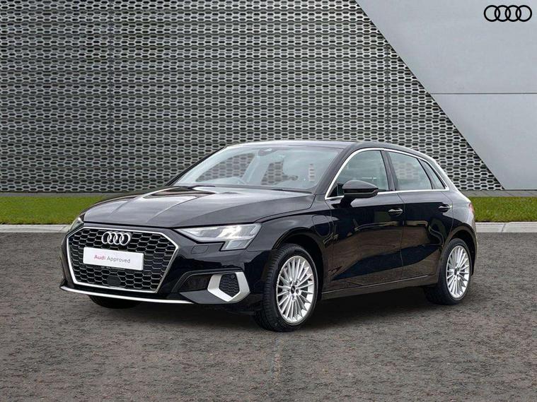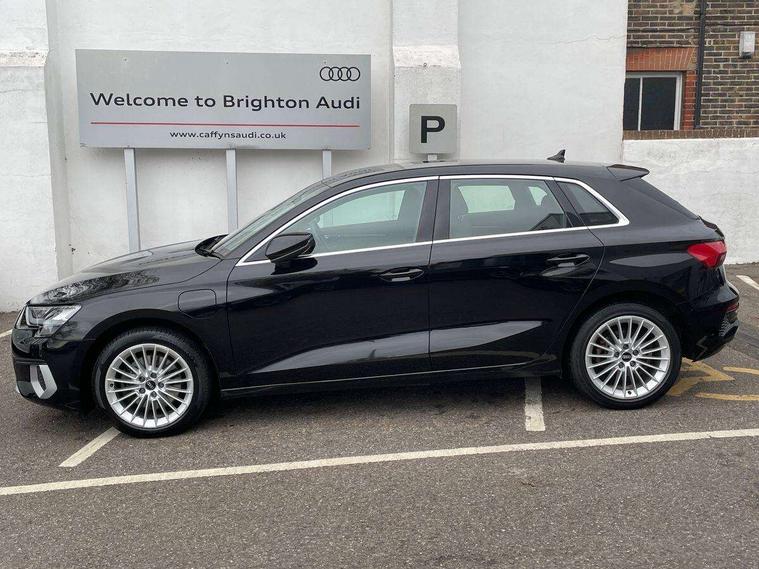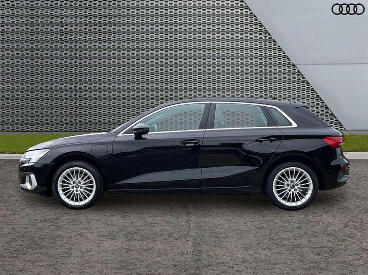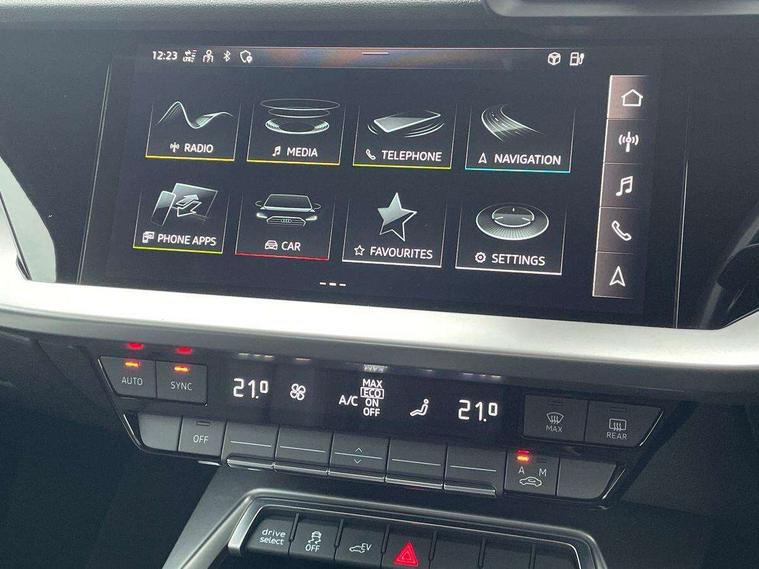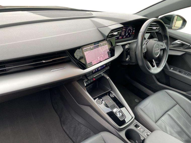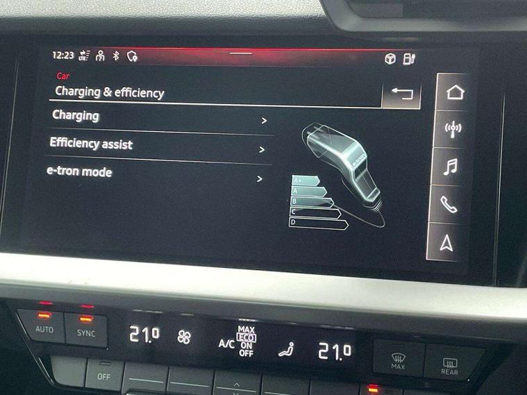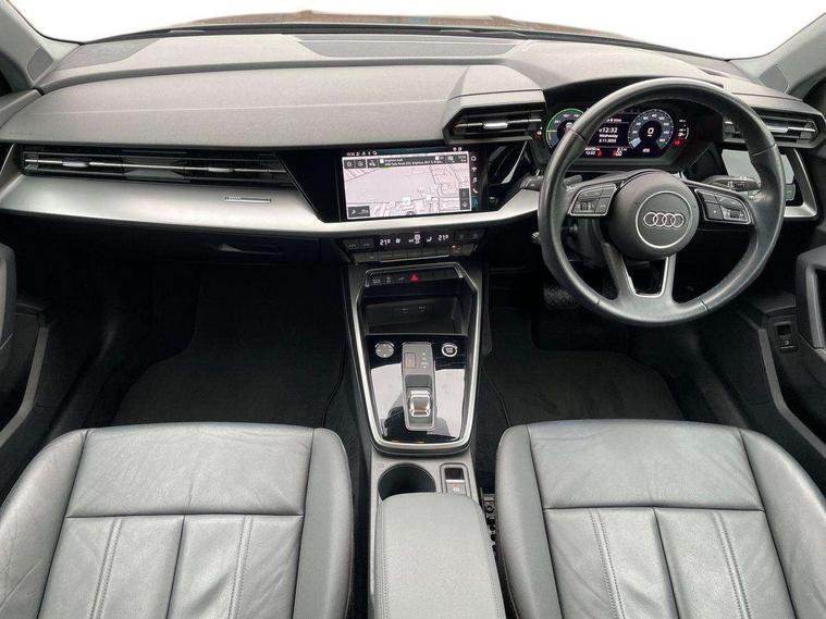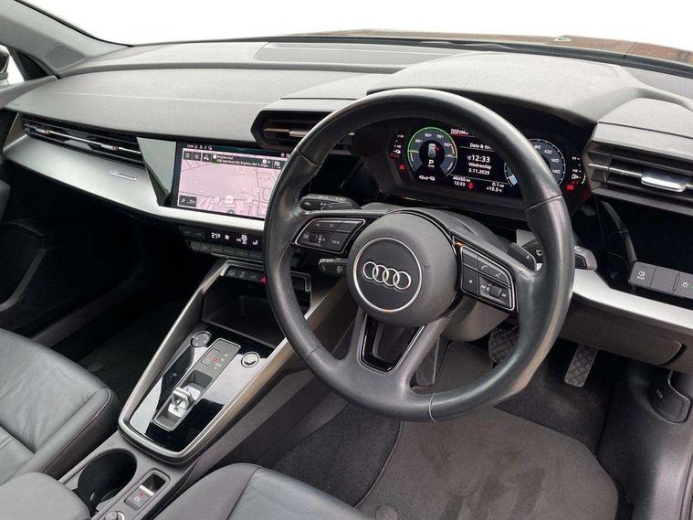 Inlays with silk effect paint in platinum grey, Aluminium interior elements pack - A3 Sportback, Sport styling pack - A3 Sportback, Tyre repair kit, Anti theft alarm, Anti-theft wheel bolts, Electronically operated child lock, Immobiliser, Remote control central locking, 2xUSB-C connection with data and charging functions, 6 passive loudspeakers, DAB Digital radio, 3x3 point rear seat belts, Driver and front passenger airbag with passenger airbag deactivation, Electronic Stabilisation Control (ESC) including ABS, ASR and EDL, First aid kit with warning triangle and 2 safety vests, Front side airbags with head airbags and interaction airbag, Hill hold assist, Pre-sense front with pedestrian and cyclist detection, Seatbelt monitoring, Tyre pressure loss indicator, Acoustic glass windscreen, Aluminium window trim, Auto dimming frameless rear view mirror, Body colour exterior mirrors, Body colour roof spoiler, Electrically adjustable/heated/folding/dimming door mirrors with kerb view includes integrated LED indications + kerb view function for passenger side, Front electric windows, LED daytime running lights, LED headlights and halogen rear lights, Light and rain sensors, Rear electric windows, Rear window, rear door windows and rear side windows in clear glass, Rear wiper, 12V socket and storage compartment in front centre console, 40/20/40 split folding rear seat bench with cupholder, Dual zone electronic climate control, Front and rear centre armrest, Front and rear headrests, Front door sill trims with aluminium inlay, Front/rear floor mats, Height and reach adjustable steering wheel, Interior lighting - Front and rear roof module including reading lights, glove compartment light and right hand side, Luggage compartment floor covering, Manual boot compartment lid, Manually adjustable front seats, Seat side bolsters, Steel grey cloth headlining, Tool kit, Twin leather upholstery, Audi connect emergency call and service, Audi drive select (Auto, Comfort, Dynamic, Efficiency and Individual), Audi smartphone interface, Audi Virtual Cockpit - 10.25" digital and colour instrument cluster, Automatic start/stop system with recuperation, Bluetooth interface, Collision avoidance assistant, Electromechanical power speed sensitive steering, Lane departure warning system, MMI Navigation Plus with high resolution 10.1" colour touch screen display, Service indicator, Trip computer, Voice control system with natural language interaction, 3 pin 10 amp domestic charging cable, Standard suspension, Type 2 mode 3 32 amp charging cable, Type 2 socket for AC charging,