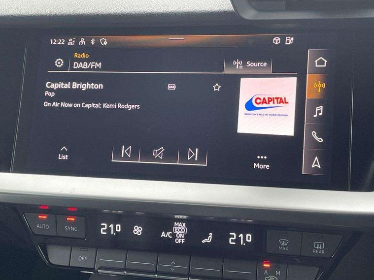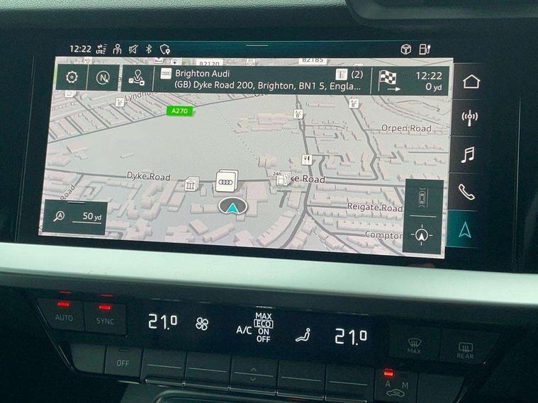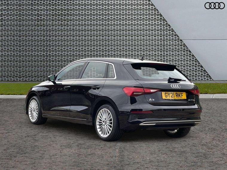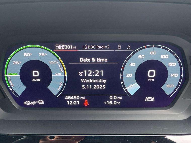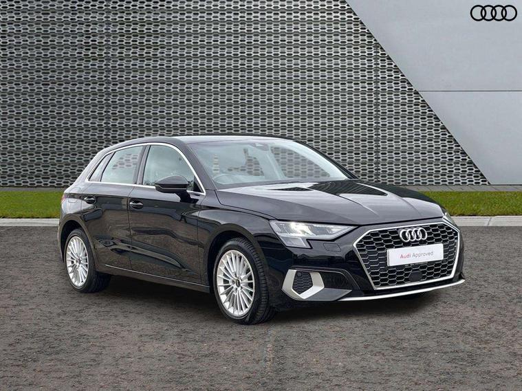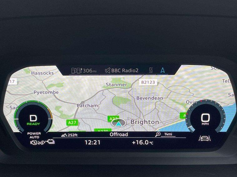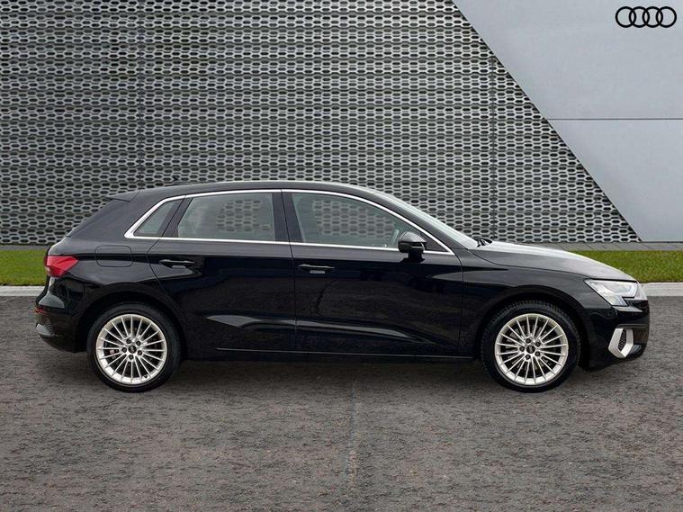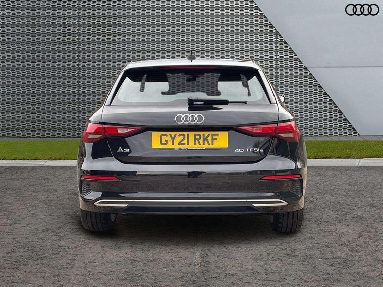 Inlays with silk effect paint in platinum grey, Aluminium interior elements pack - A3 Sportback, Sport styling pack - A3 Sportback, Tyre repair kit, Anti theft alarm, Anti-theft wheel bolts, Electronically operated child lock, Immobiliser, Remote control central locking, 2xUSB-C connection with data and charging functions, 6 passive loudspeakers, DAB Digital radio, 3x3 point rear seat belts, Driver and front passenger airbag with passenger airbag deactivation, Electronic Stabilisation Control (ESC) including ABS, ASR and EDL, First aid kit with warning triangle and 2 safety vests, Front side airbags with head airbags and interaction airbag, Hill hold assist, Pre-sense front with pedestrian and cyclist detection, Seatbelt monitoring, Tyre pressure loss indicator, Acoustic glass windscreen, Aluminium window trim, Auto dimming frameless rear view mirror, Body colour exterior mirrors, Body colour roof spoiler, Electrically adjustable/heated/folding/dimming door mirrors with kerb view includes integrated LED indications + kerb view function for passenger side, Front electric windows, LED daytime running lights, LED headlights and halogen rear lights, Light and rain sensors, Rear electric windows, Rear window, rear door windows and rear side windows in clear glass, Rear wiper, 12V socket and storage compartment in front centre console, 40/20/40 split folding rear seat bench with cupholder, Dual zone electronic climate control, Front and rear centre armrest, Front and rear headrests, Front door sill trims with aluminium inlay, Front/rear floor mats, Height and reach adjustable steering wheel, Interior lighting - Front and rear roof module including reading lights, glove compartment light and right hand side, Luggage compartment floor covering, Manual boot compartment lid, Manually adjustable front seats, Seat side bolsters, Steel grey cloth headlining, Tool kit, Twin leather upholstery, Audi connect emergency call and service, Audi drive select (Auto, Comfort, Dynamic, Efficiency and Individual), Audi smartphone interface, Audi Virtual Cockpit - 10.25" digital and colour instrument cluster, Automatic start/stop system with recuperation, Bluetooth interface, Collision avoidance assistant, Electromechanical power speed sensitive steering, Lane departure warning system, MMI Navigation Plus with high resolution 10.1" colour touch screen display, Service indicator, Trip computer, Voice control system with natural language interaction, 3 pin 10 amp domestic charging cable, Standard suspension, Type 2 mode 3 32 amp charging cable, Type 2 socket for AC charging,