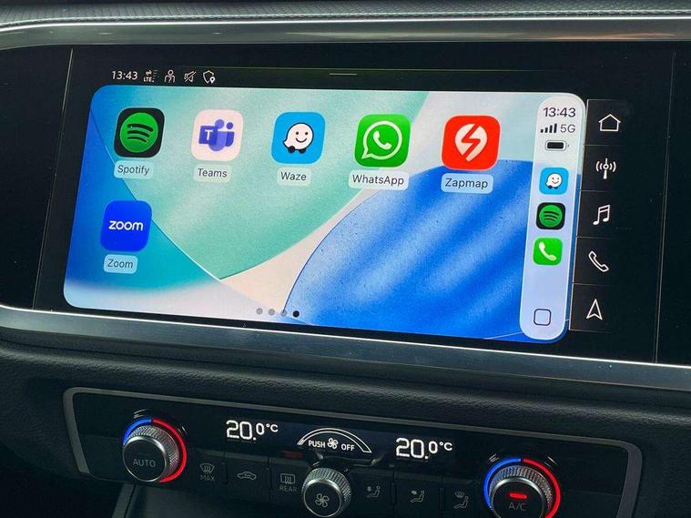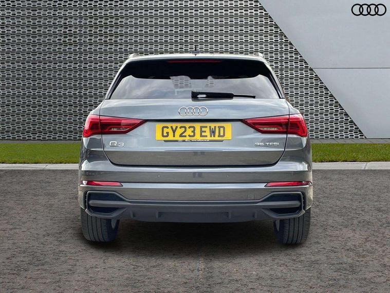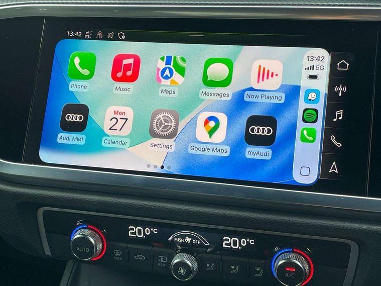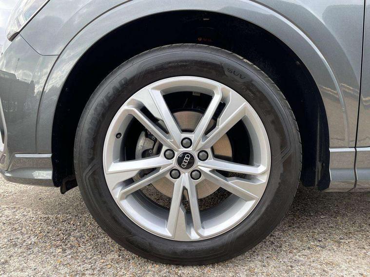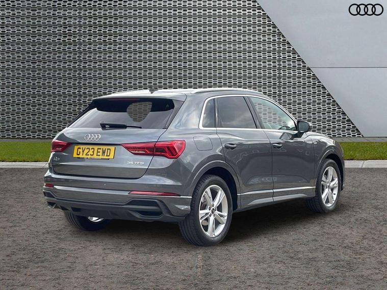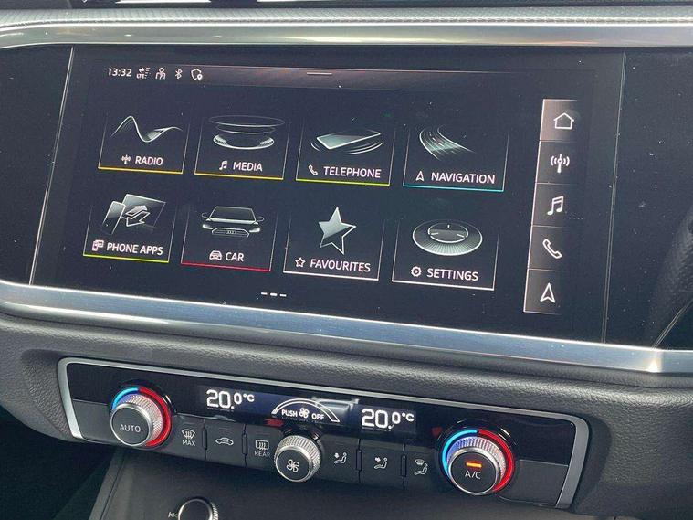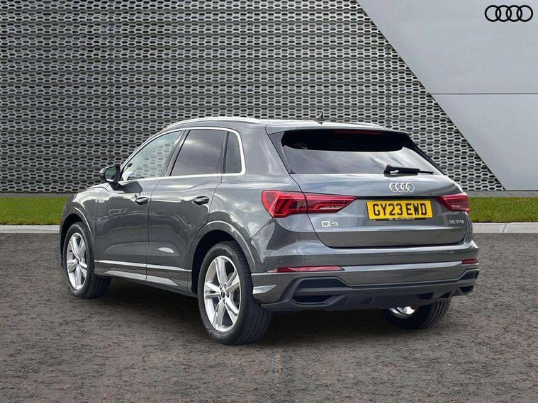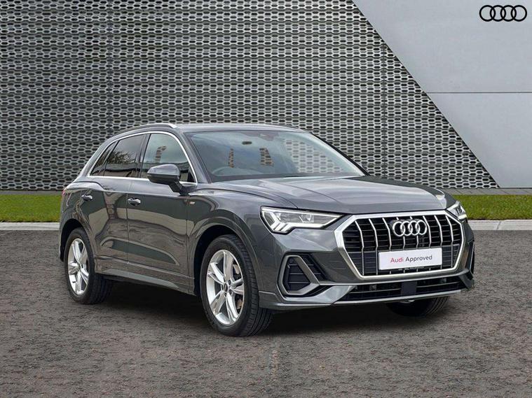 Amazon alexa Integration, Audi drive select, Audi lane departure warning, Audi smartphone interface includes wireless Apple carplay/Android Auto, Audi Virtual Cockpit - 10.25" display, Bluetooth interface, Camera based traffic sign recognition, Legal emergency call, MMI Navigation Plus with high resolution 10.1 inch touchscreen colour display, Power operated tailgate, Progressive steering, Service interval indicator, Start stop system with recuperation, Voice control system with natural language interaction, Sports suspension, 2 USB-C ports with charge and data functions, 6 passive loudspeakers, DAB digital radio module, Acoustic windscreen, Aluminium roof rails, Aluminium window trim, Anthracite black radiator grille, Auto dimming frameless rear view mirror, Body colour front spoiler blade, Body coloured bumpers, Electrically folding, adjustable and heated door mirrors with integrated LED side indicators and kerb view function for passenger side, Front and rear electric windows, Front fog lights, Front side air inlets in matt platinum grey, Grille vertical bars in aluminium silver/Matt, High gloss black finish B and C pillars, LED Dynamic rear indicators, LED headlights with LED daytime running lights, LED rear lights, LED third brake light, Privacy glass dark tinted rear and rear-side windows (from B-pillar backwards), Rain and light sensors, Rear diffuser grille in grained matt black, Rear diffuser strip in matt anthracite black, Rear side wing doors, Rear wiper, S line badges on front wings, S Line front and rear bumpers, Side skirt insert in matt Platinium grey, Variable front intermittent wipers, 12V socket in rear centre console, 3 seat bench in 2nd row, 3 spoke leather multifunction steering wheel features S badging and grips in perforated leather with contrast stitching, 40:20:40 folding with manual adjustment for 60:40 forwards/backwards position and backrest angle, Adjustable rear seat bench/backrest with centre armrest and cupholder, Black cloth headlining, Dual zone electronic climate control, Front and rear black floor mats with contrast stitching in rock grey, Front and rear headrests, Front and rear roof module including reading lights, Front centre armrest, Glove compartment lighting, Height and reach adjustable steering wheel, Illuminated door sill trims with S logo, ISOFIX child seat mounting for front passenger with airbag deactivation and outer rear seat including top tether attachment point for outer rear seats, Luggage compartment light, Manual front seats with height adjustment, Perforated leather gearknob, Single front passenger seat, Stainless steel luggage compartment sill finisher, Stainless steel pedals, Ambient lighting pack - Q3, Non smoking pack - Q3, 3x3 point rear seatbelts, 6 airbags - Driver, front passenger, curtain and side windows, Audi pre-sense front with pedestrain and cyclist recognition, Electrically operated child locks on rear doors, Electromechanical parking brake, Electronic stabilisation control including ABS, ASR and EDL, Front seatbelt reminder, Hill descent control, Hill hold assist, Pre sense basic, Seatbelt monitoring, Tyre pressure warning, Warning triangle and first aid kit, Anti theft alarm, Anti theft wheel bolts, Immobiliser, Remote central locking, Aluminium look interior elements, Dark matt brushed aluminium inlay, Detail dashboard around MMI touch colour display in glass look, black with surround in aluminium look, Leatherette door armrest,