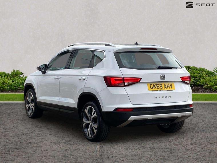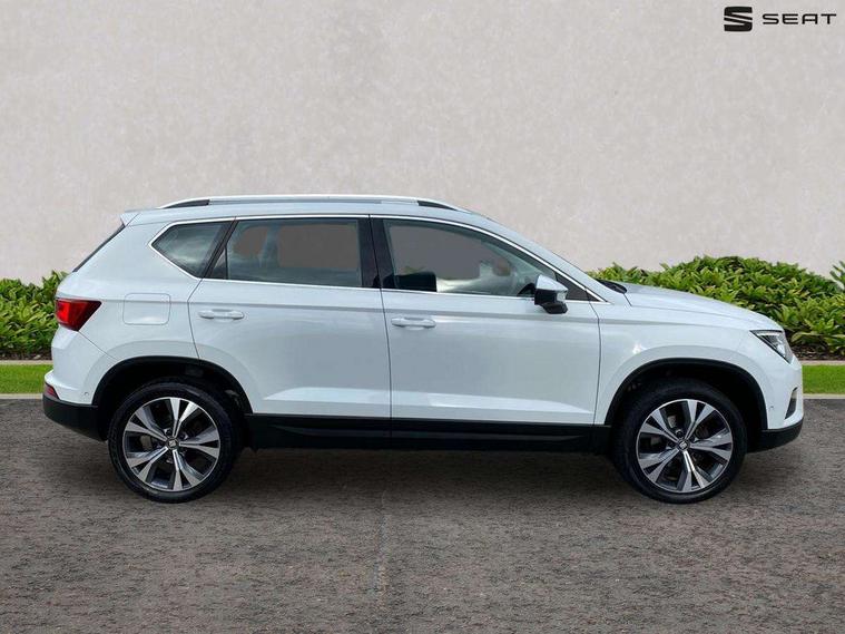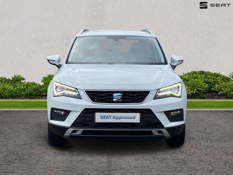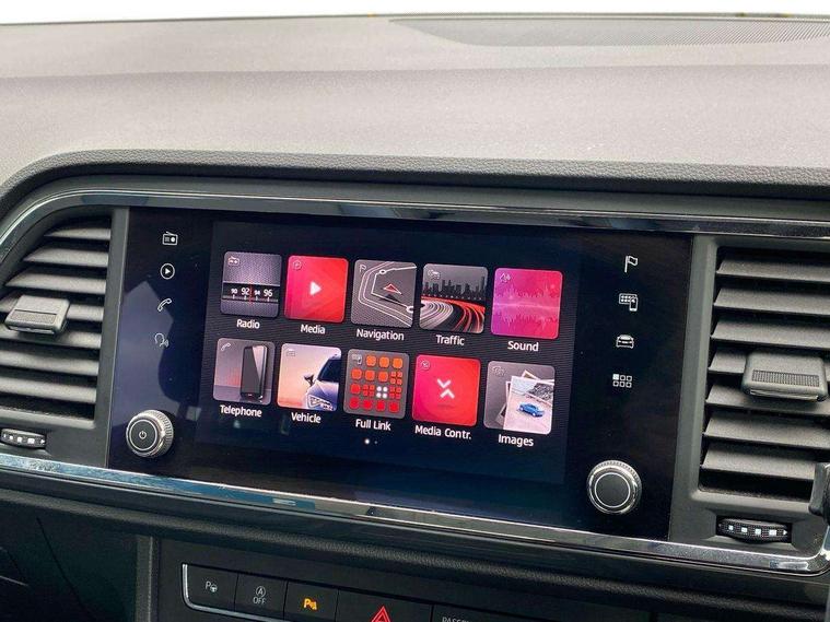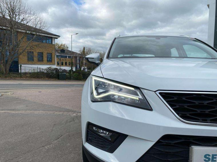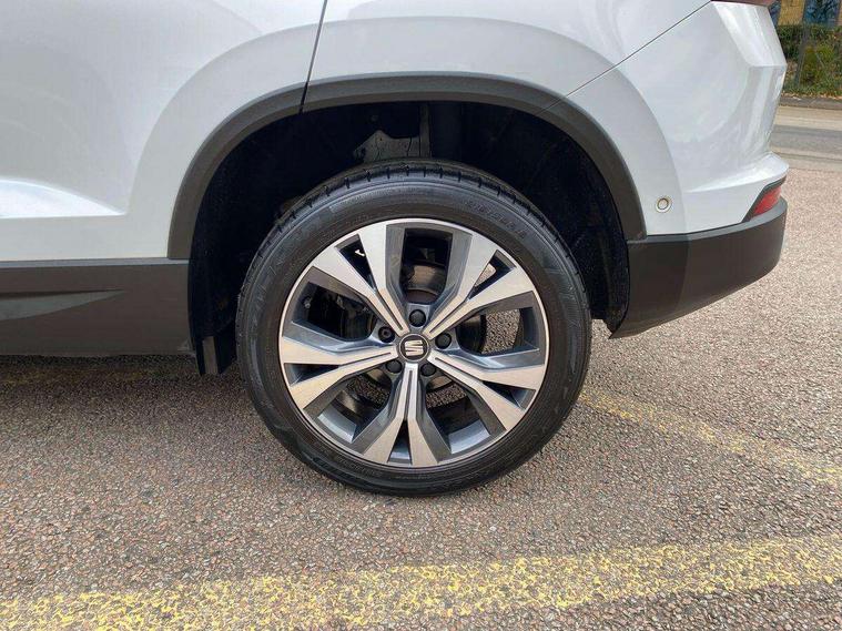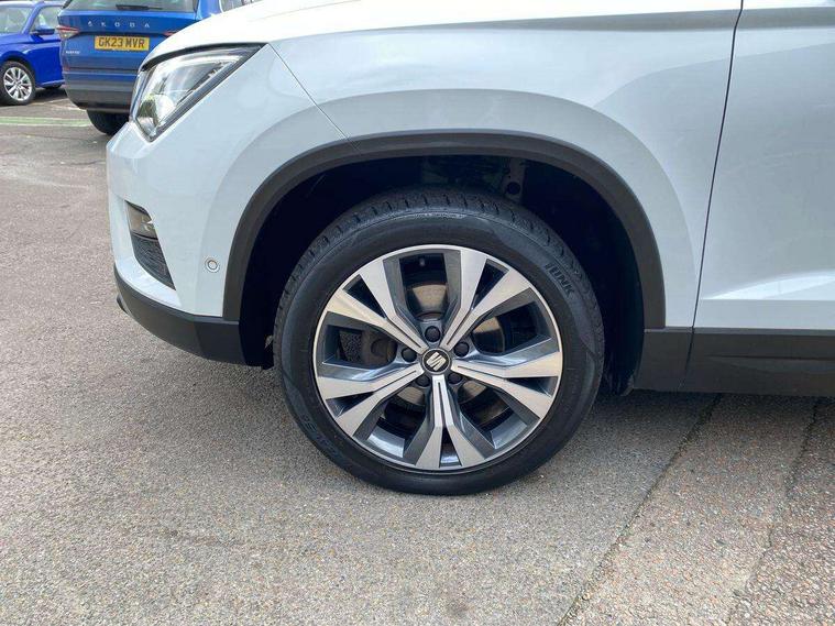 'Lights On' Reminder warning buzzer, 3.5" driver's display, Cruise control, Digital clock, Driver alert system, Electric speed sensitive power steering, Front assist city emergency braking and pedestrian protection, Full Link Smartphone Integration with Mirror Link, Apple Car Play, Google Android Auto, Low fuel warning light, Multi function display, Outside temperature gauge, Remote fuel flap release, RPM counter, Satellite navigation system, SEAT drive profile with driving experience button, SEAT logo boot release, Self parking functionality (includes front and rear parking sensors), Trip computer, Comfort suspension, XDS electronic differential lock, SEAT USB media cable, Steering wheel mounted audio/phone controls, Armrest with air outlet in rear, Black wheel arch extensions, Body colour bumpers, Body colour door handles, Body colour door mirrors, Chrome front grille frame, Chrome headlight surround, Chrome roof rails, Chrome side window trim, Door mirrors with welcome light silhouette, Electric adjustable/heated/folding door mirrors, Front and rear electric windows, Full LED headlights, Hidden exhaust pipe, LED daytime running lights, LED front fog lights, Matt black radiator grille, Rear fog lights, Rear LED tail lights, Rear wash/wipe, 12v socket in front, 4 Lashing eyes in boot, 60/40 split folding rear seat, Active head restraints, Adjustable front armrest with storage compartment, Ambient spot lighting and front footwell illumination, Cloth upholstery with front comfort seats, Driver and passenger seats, height-adjustable, with lumbar adjustment and height-adjustable headrests, Driver and passenger sun visor, covered and illuminated mirror, driver sun visor with card holder, Dual zone climate control, Front courtesy lights, Front cupholders, Front reading lights, Front seat back storage pockets, Gear shift indicator, Illuminated boot, Illuminated glovebox, Instrument lighting with brightness control, ISOFIX points in outer rear seats with top tether anchorage points, Leather steering wheel and gear knob, Rear armrest and easy back seat release mechanism from boot, Rear reading lights, Storage box under drivers seat, Navigation system pack - Ateca, 3x3 point rear seatbelts, ABS, Automatic post collision braking, Driver/Front Passenger airbags, Drivers knee airbag, Electronic parking brake with auto hold, Electronic stability control, ESP+EBA, Front and rear seatbelt reminder, Front passenger airbag deactivation, Front side airbags, Hill hold control, Tiredness recognition system, Traction control, Twin curtain airbags, Tyre pressure monitoring system, 2 folding remote keys with window open/close function, Immobiliser, Locking wheel bolts, Remote central locking, Volumetric alarm with back up horn, Chrome interior detailing, 18" Performance machined alloy wheels 36/2,