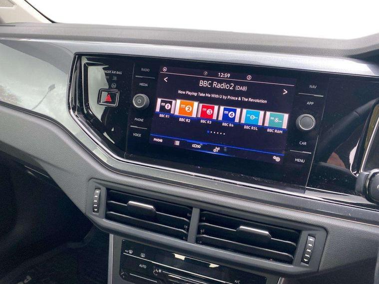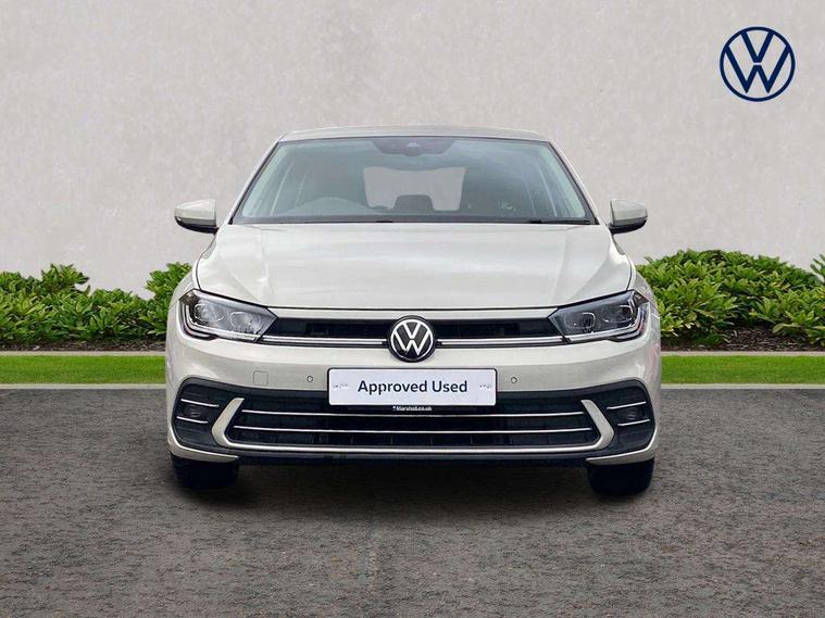 Adaptive cruise control without follow-to-stop and speed limiter, Bluetooth mobile phone interface, Digital Cockpit Pro with 10.25" Display, Driver alert system, Dynamic road sign display, Emergency call service, Power assisted speed sensitive steering, Preparation for We connect and We connect plus, Speedo and rev counter, electronic odometer, trip, service interval display and fuel gauge, Standard rear axle, Travel Assist - Lane keeping system and traffic jam assist, Travel assist including emergency assist, Trip computer, Warning signal and warning light for front and rear seatbelts not fastened, Washer fluid level indicator, Wireless app connect, Front wheel drive, Rear shock absorpion, Start-stop system with battery regeneration (recuperation - energy recovery during braking), DAB Digital radio, Diversity antenna for FM reception, Front and rear 6 speakers, Automatic dimming interior rear view mirror, Automatic headlights, Body colour door handles, Body coloured bumpers and radiator grille with chrome trims, Electric front windows, Heat insulating darkened glass in side and rear windows, Heat insulating glass windscreen, LED separate daytime running lights with coming/leaving home function, Power folding adjustable/heated exterior mirrors and front passenger exterior mirror lowering function, Rain sensor, Rear electric windows, Rear fog light, Rear side wing doors, Rear windscreen washer and wiper with interval delay, Third brake light, 12V power socket in centre console, 2 USB-C ports in the front, 2 USB-C charging sockets on the center console in the rear, 3 rear head restraints, 60/40 split folding rear seat and rear seat bench not split, Air care climatronic air conditoning system with active combination filter and 2-zone temperature control, Ambient lighting, Ceramique headliner, Chrome plated radiator grille inserts, air vent surrounds and light switch surrounds, Door and side trim panel, Driver and front passenger seat height adjustment, Driver/passenger sunvisors with illuminated vanity mirrors, Front + rear carpet mats, Front centre armrest, Front footwell illumination, Front seat backrest storage pockets, Front sports comfort seats, Handbrake lever handle in leather, Isofix child seat preparation easy-fit (for two outer rear seats, and front passenger seat) compatible with I-size, Leather trimmed gear knob, LED interior light with switch off delay and dimmer, 2 reading lights front and rear, Luggage compartment cover, Luggage compartment floor, Luggage compartment lighting, Lumbar adjustment for front seats, Multifunction steering wheel, Single front passenger seat, Standard pedal cluster, IQ LED matrix headlights pack - Polo, Light and vision pack - Polo, 3 point height adj front seatbelts + pretensioners, 3x3 point rear seatbelts, ABS, Driver and front passenger airbag with front passenger airbag deactivation, Drivers and front passengers safety optimised head restraints, ESC (Electronic stability control) + EDL (Electronic Differntial lock) and ASR (Traction control), Extended and predictive pedestrian/ cyclist protection, Front curtain and side airbags with center airbag, Front disc brakes, Hill hold control, Manual child lock in rear doors, Rear drum brakes, Single tone horn, Tyre pressure loss indicator, Alarm with interior protection, Anti-theft alarm system with interior monitoring, backup horn, and towing protection, Anti-theft wheel bolts, Electronic engine immobiliser, Chrome applications on rotary light, mirror adjustment, window regulator switches, outlet with frame in black, Deep iron gloss decorative inserts in dash and front door panels, Low rolling resistance tyres,
