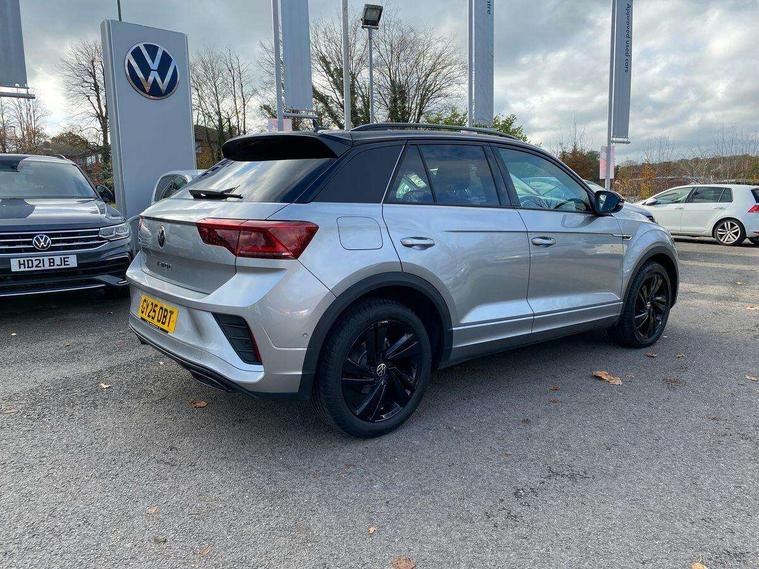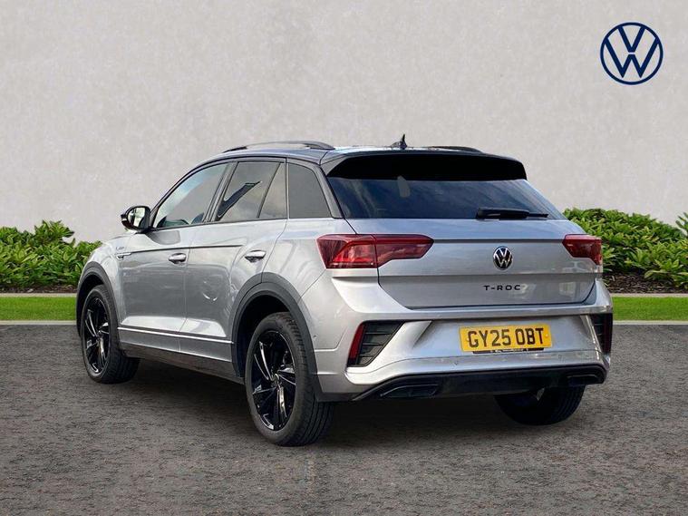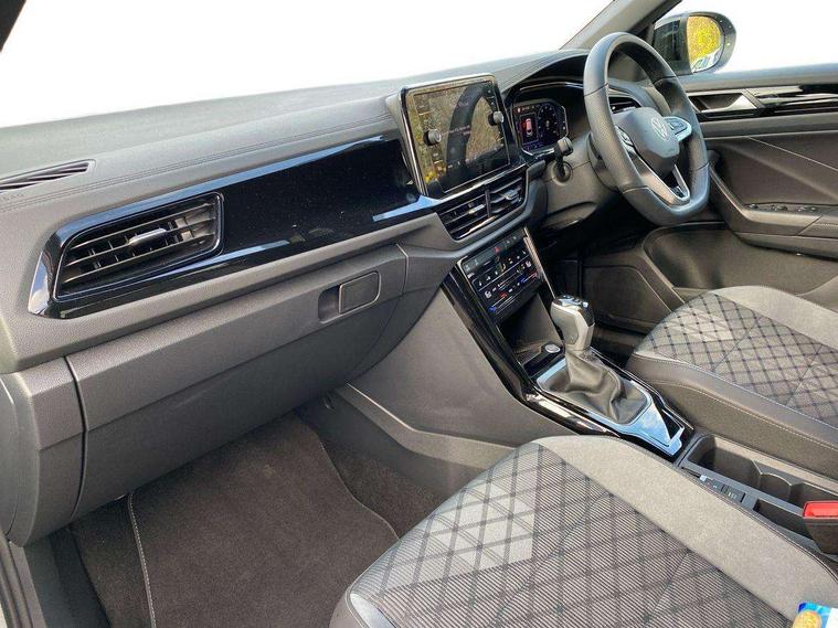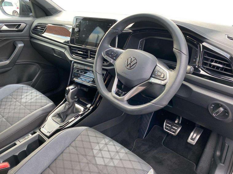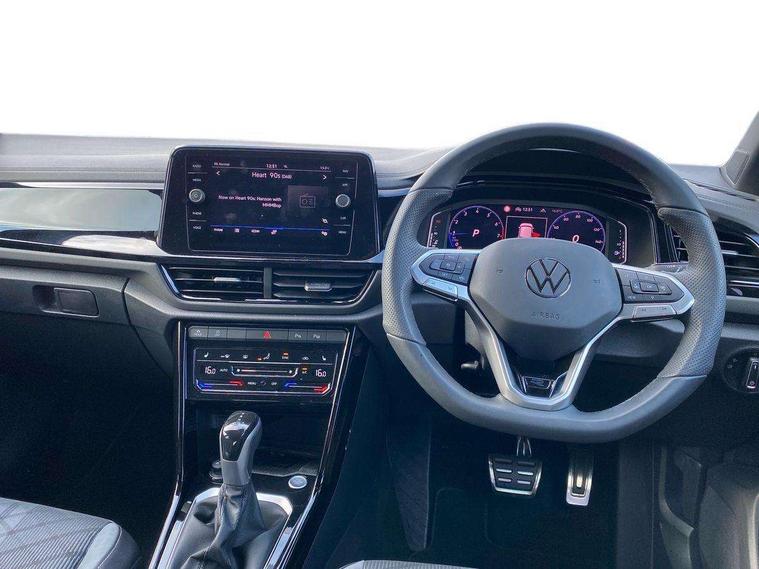 10.25" Digital cockpit pro, Advanced driver attention and drowsiness monitor, Emergency call service, Lane keeping system Lane Assist, Mobile phone interface, Modified key software - reduce switch off time for key status change to Long no motion, Online services, Park assist including front and rear parking sensors, Power assisted speed sensitive steering, Service interval indicator, Tailgate/trunk lid release from outside, Think blue trainer driver tips and journey analysis, Warning sound and light for front seatbelts unfastened, Wireless app connect, Battery regeneration during braking, Rear shock absorption chassis with increased ride height, Start/stop function with battery regeneration, DAB Digital radio, Diversity antenna for FM reception, Front and rear 6 speakers, Music playback - MP3, WMA and AAC files, Premium USB cable in choice of either Apple or Android smartphone compatibility, SD card slot, Simultaneous pairing of 2 compatible mobile devices, Title and cover art display, We Connect and We Connect Plus functionality, Auto dimming interior rear view mirror, Automatic hazard lights activation under emergency braking, Automatic headlight control with LED separate daytime running lights with coming/leaving home function, Dynamic cornering light, Electrically adjustable and heated door mirrors, Extended roof spoiler, Exterior mirrors aspherical on driver side, convex on front passenger side, External USB type C socket and charging sockets, Front windscreen wiper with intermittent wipe and 4 position delay, Heated rear window, Illuminated front grille, IQ LED matrix headlights, LED 3rd brake light, LED rear number plate lights, LED rear tail lights with dynamic turn signal, Light mode for poor weather, rain, fog or snow, Power windows with comfort operation and circuit breaker, R-Line design body coloured bumpers, Rain sensor, Rear exhaust tailpipe, Rear fog light on one side and reversing lights on both sides, Rear side wing doors, Rear wash/wipe with intermittent wipe setting, Remote electrically foldable door mirrors, puddle lights and reverse activated passenger's door mirror, 12V power socket in centre console, 3 rear head restraints, 3 seat bench in 2nd row, 4 load lashing points in luggage compartment, Air care climatronic air conditoning system with active combination filter and 2-zone temperature control, Artvelours cloth upholstery, Black roof lining, Chrome plated radiator grille inserts, air vent surrounds and light switch surrounds, Door and side trim panel with leatherette insert, Drawer under drivers seat, Driver seat height adjust, Driver's seat lumbar support, Front + rear carpet mats, Front centre armrest, Front comfort sports seats, Front cupholders x 2, Front footwell illumination, Front reading light, Front scuff plates with R Line logo, Front seat back storage pockets, Glove compartment door with light, Instrument lighting, white adjustable panel illumination, Interior ambient lighting and surround lighting, Interior light delay, Isofix child seat preparation, Leather gearshift handle, Leather wrapped multifunction steering wheel with paddle shift, Load-through provision with cup holder when folded down ('Unsplit rear seat bench, split folding backrest, with centre armrest), Luggage compartment lighting, Non-folding front passenger seat backrest, Passenger seat height adjuster, Passenger seat lumbar support, Single front passenger seat, Stainless steel pedals, Storage compartment in left and right luggage area, Storage compartment in rear doors, Storage compartments in driver and front passenger doors, Sunvisors with illuminated vanity mirrors, Variable boot floor, height adjustable and removable, Winter pack without heated windscreen washer jets - T-Roc, 3 point height adj front seatbelts + pretensioners, 3 point seatbelts in outer rear with ECE label, ABS, Child locks on rear doors, City emergency braking and pedestrian monitoring, Driver and front passenger airbag with front passenger airbag deactivation, Driver and front passenger safety-optimised head restraints, Drivers seatbelt reminder, Electronic parking brake, Electronic Stability Control (ESC) inc EDL (Electronic Differential Lock) and ASR (Traction Control), Front and rear passengers curtain airbag system including front side airbags, Front disc brakes, Hill start assist, Predictive pedestrian protection, Rear disc brakes, Two tone horn, Tyre pressure loss indicator, Volkswagen roadside assistance, Tool kit, Trims for alloy wheels, Tyre mobility kit including compressor and sealing foam,
