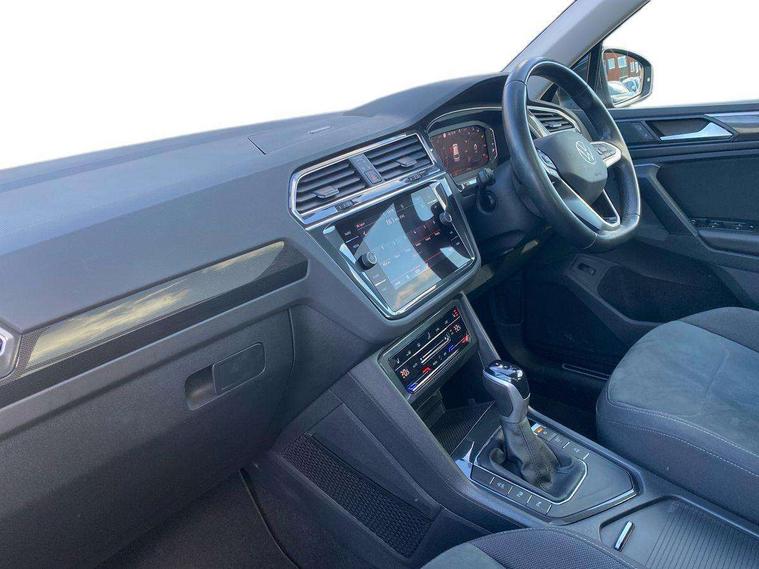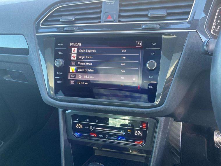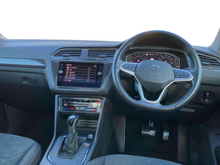 Adaptive cruise control ACC stop and go including speed limiter, App-Connect incl. App-Connect Wireless for Apple CarPlay and Android Auto, Bluetooth phone integration system, Distance control assist, Driver alert system, Driver profile selection, Dynamic road sign display, eCall emergency call system, Electromechanical speed sensitive power steering, Engine start/stop button, Lane keeping system Lane Assist, Lights on warning, Motorised electric tailgate operated via key fob, drivers door and foot movement under tailgate, Multifunction front facing camera, Outside temperature display, Premium multifunction display with multi colour display, Remote control boot opening, Rev counter, Revision / skills operating concept travel assistant, Service interval indicator, Speed limit display, Start/stop system with regenerative braking, Tailgate/trunk lid unlocking from outside, Trip computer, Warning sound and light for doors and tailgate open, Battery regeneration during braking, XDS electronic differential lock for improved traction and handling, 4 X 20 watt output, 8 Speakers, Diversity antenna for FM reception, Radio, SD card slot, Simultaneous pairing of 2 compatible mobile devices, SMS functionality - read, compose and send SMS messages using touch-screen display, Title and cover art display, USB C ports, Aluminium door sill protectors, Auto dimming interior rear view mirror, Automatic headlight control system, Body colour door handles, Body coloured bumpers, Body coloured door mirrors with integrated indicators, Coming/leaving home lighting function, Dynamic headlight range control, Front and rear electric windows, Heated rear window, High level 3rd brake light, IQ light-Adv high beam, Dynamic light assist for LED matrix headlamp+LED separate DRL+DCL, dark red rear LED tech, Poor weather light+ cornering light, Laminated safety glass windshield, heat and sound insulating, LED rear number plate lights, Poor weather light and cornering light, Privacy glass for rear side windows and rear window, Rain sensor windscreen wipers, Rear exhaust tailpipe, Rear fog lamp, Rear side wing doors, Rear windscreen washer and wiper with interval delay, Side and rear windows in heat insulating glass, Tilting and sliding panoramic sunroof with rear panoramic sunroof, Trailer Stability Programme, Windscreen wipers/ intermittent wipe + 4 position delay, 12V outlet in center console rear and in luggage compartment, 12V outlet in front and tray, 2 cup holders in front, 2 LED front reading lights, 2 LED rear reading lights, 3 bench rear seats in 2nd row, 3 rear headrests, 4 load lashing points, 40:20:40 split folding rear seats, Air Care Climatronic 3 zone automatic climate control with enhanced air filter and controls in the rear, Backrest release for left front seat, Climate control unit rear with touch function, Door and side trim panel in foam film and woven fabric, Front centre armrest, Front footwell illumination, Front seats head restraints (x-adjustment), Height adjustable front seats, Height/reach adjust steering wheel, Instrument lighting white adjustable panel illumination, Interior light with delay, Isofix Preparation 2 Rear child seats, Leather gear knob, Lockable cooled glovebox, Luggage compartment lighting, Luggage net, Rear bench seat asymetrically split folding, longitudinally movable and folding with load-through hatch and center armrest, Remote unlocking for rear seat backrest, Removable luggage cover, Removable rear headrests, Safety optimised front head restraints, Single front passenger seat, Sliding/reclining rear seats, Standard rear seat release, Storage compartment in driver's door, Storage compartment in passenger's door, Storage compartment in rear doors, Storage compartments in luggage area left and right, Storage tray on dashboard, Sun visors with illuminated vanity mirrors, Top front comfort seats, Variable boot floor, height adjustable and removable, Easy open and close pack with safelock - Tiguan, 3 point seat belt for centre rear seats, 3 point seat belts with seat belt pretensioners for the outer rear seats, Active bonnet, Curtain airbags for front and rear passengers, Driver/Front Passenger airbags, Drivers knee airbag, Electronic parking brake with auto hold, Electronic Stability Control with driver steering recommendation, ABS, ASR, EDL, EDTC and trailer stabilization, Front assist with autonomous emergency braking (for Adaptive Cruise Control ACC up to 130 mph), Front disc brakes, Front passenger airbag deactivation, Front side airbags, Height adjustable front 3 point seatbelts + pretensioners, Hill hold control, Manual child proof rear door locks, Pedestrian monitoring system, Power assisted brakes, Proactive passenger protection system in combination with front assist, Rear disc brakes, Rigid safety cell with front and rear crumple zones, Two tone horn, Warning sound and light for front seat belts if unfastened, Anti theft alarm system with interior monitoring, backup horn and towing protection, Anti theft wheel bolts, Central locking system with safelock radio remote control and 2 remote control folding keys, Electronic engine immobiliser, Tool kit,