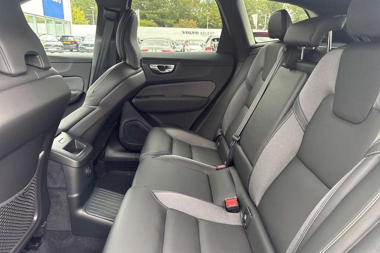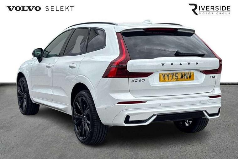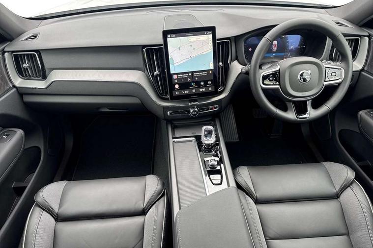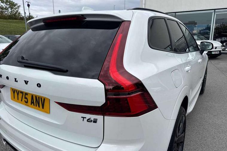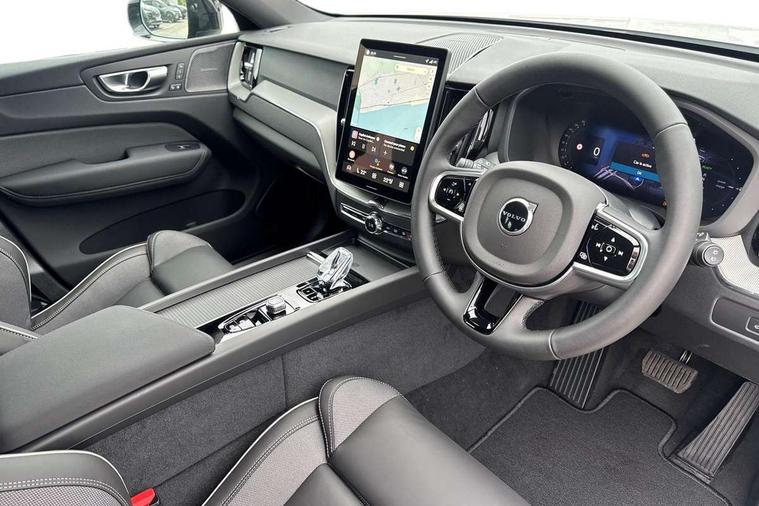 11.2" centre console touch screen, 12.3" Progressive Driver Display, 360 degree surround view parking camera with side proximity sensors, Adaptive cruise control, Adjustable steering wheel force, Android auto (Wired), Apple carplay (wired), Bluetooth handsfree system, Drive mode settings, Driver alert control with lane keeping aid, Emergency services call system, Front and rear park assist, Google Automotive Services, Intelligent speed assistance, Oncoming Lane Mitigation, PAS, Power operated tailgate with handsfree opening and closing, Service interval indicator, Speed limiter, Speed sensitive steering, Trip computer, Volvo cars services with app, Volvo on call with App, Wireless/Inductive Mobile Phone Charging, 2 phase on board charger 6.4kW (home charging limited to 3.7kW), 6m 3 phase 16amp Type 2 / mode 3 charge cable, 8 speed automatic transmission with start/stop + manual change functions, Electric rear axle drive, Recharging port located in nearside front wing, DAB Digital radio, Low speed exterior sound speaker, Premium Sound by Harman Kardon, dirac unison, dolby pro logic II surround sound, 13 speakers/600W output and fresh air subwoofer, Steering wheel remote infotainment controls, Adaptive brake lights with high level LED brake lights, Auto dimming interior + exterior mirrors, Automatic headlight levelling system, Automatic LED Headlights + Active high beam incorporating daytime running lights, Dark tinted windows for rear side windows and cargo area, Electric adjustable/heated/auto power folding door mirrors, Electric front+rear windows, Front aluminium tread plates, Heated front windscreen, High gloss black door mirrors and window surround, High gloss black front and rear bumper decoratives, High gloss black front grille, Surround, Strikethrough and Ironmark, High gloss black rear model, engine and volvo logo badges, Home safe and approach lighting, Integrated roof rails in high gloss black, Puddle lights, Rain sensor with automatic windscreen wiper activation, Rear side wing doors, Rear wiper, Roof antenna, Roof spoiler, Tinted windscreen, Visible VIN plate, 12V socket in front tunnel console and luggage compartment, 2 zone electronic climate control with Clean zone air quality system and pollen filter, 3 seat bench in 2nd row, 3 Spoke tailored steering wheel with chrome trim, A-pillar parking ticket holder, Air purifier particulate matter (PM) 2.5 filter, B Pillar ventilation, Bright metal luggage scuff plate, Centre console cupholders and storage, Charcoal floor mats, Contour sports seats with nappa soft leather/textile upholstery, Front and rear courtesy lights, Front and rear door pocket illumination, Front cupholder illumination, Front footwell illumination, Front reading lights, Front seat cushion extensions, Glovebox compartment with illumination, Head restraints for all seats, Heated front seats, Heated steering wheel, Height/reach adjustable steering column, Illuminated luggage compartment, Illuminated vanity mirrors + ticket holder, Inner door release handle illumination, ISOFIX attachment on outer rear seats, Load cover, Load protection net, Multi directional lumbar support, Power driver seat with memory + exterior mirrors memory, Power height adjustable passenger seat, Power passenger seat with memory, Rear armrest with cupholder, Rear footwell and front and rear side step illumination, Rear reading lights, Rear seat concealed storage, Single front passenger seat, Tailgate illumination and ambient door lighting, Underfloor stowage compartment, Versatile split folding rear seat - 60/40, Driver assist pack without Adaptive cruise control - XC60, 5 three point seatbelts, City safety with steering support with Pedestrian + cyclist + front collision warning with full auto brake and rear auto brake, Drivers knee airbag, Dual stage driver/passenger airbags, Electronic parking brake with auto hold, First aid kit, Front seats SIPS airbags, Hill descent control - Off-road drive mode, Hill start assist, IC (Inflatable Curtains) - Full Length, Passenger airbag cut-off device, Power child locks on rear doors, Road sign information display, Run off Road Mitigation, Run off Road Protection, Seatbelt reminder and pretensioners, SIPS (Side Impact Protection System), Slippery road and hazard light alert, Stability and Traction Control with Spin control, Engine Drag Control and Corner Traction Control, Tyre pressure monitoring system, Vehicle deceleration control with Anti-lock Brake System, Electronic Brake Distribution and Emergency Brake Assist, Warning triangle, WHIPS whiplash protection system - front, Anti-theft alarm including immobiliser/volume sensor + level sensor, Key integrated remote control central locking + fuel flap with deadlocking system and auto open/close power windows, Keyless Drive (includes Keyless Entry and Keyless Start), Locking wheel nuts, Private locking for tailgate, 21" 5 Double spoke high gloss black alloy wheels, Summer tyres, Tyre sealant kit + 12v compressor,