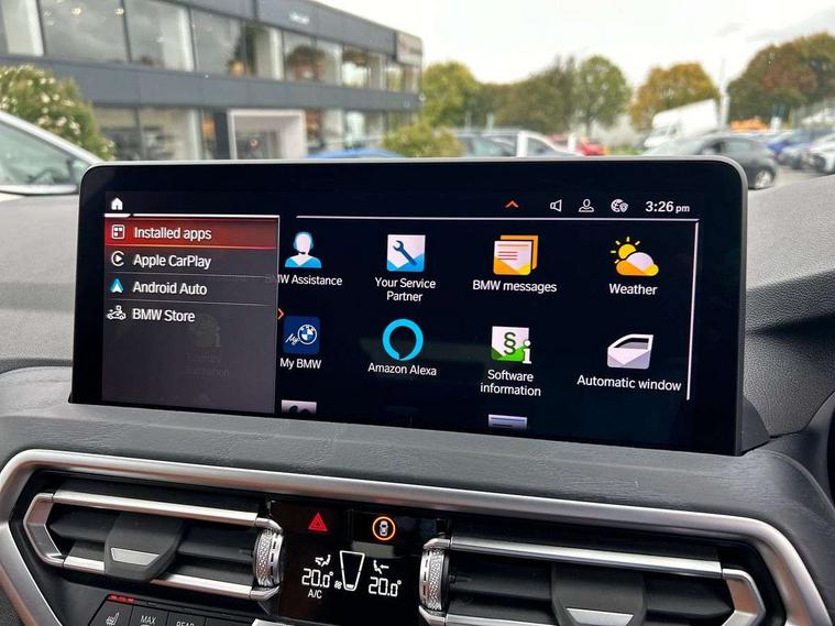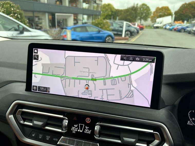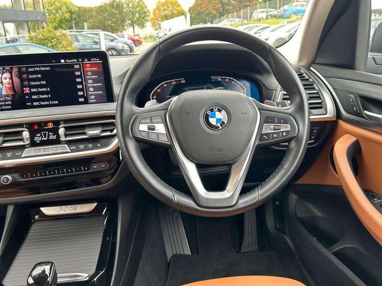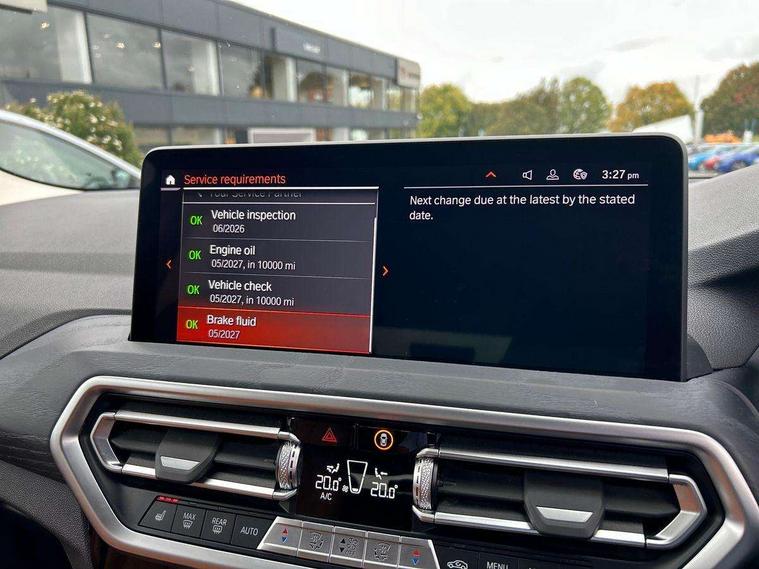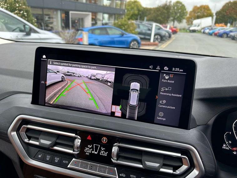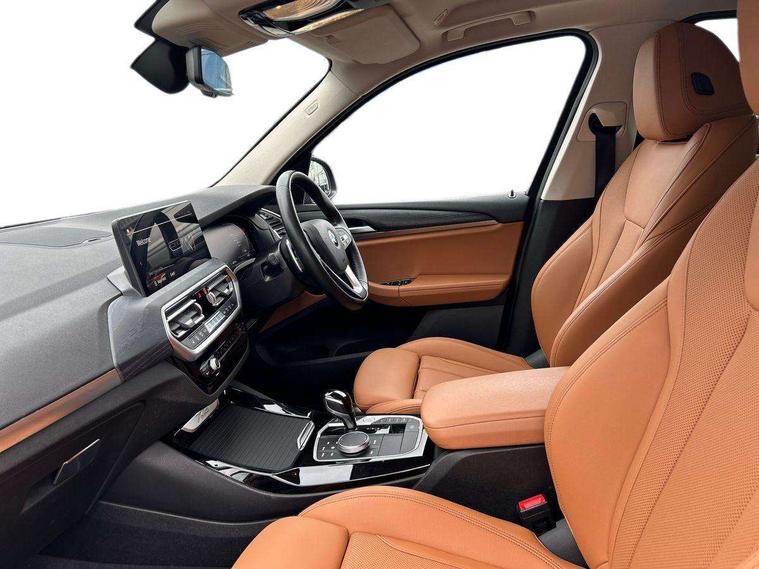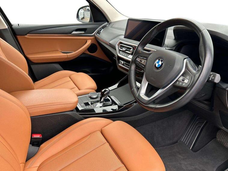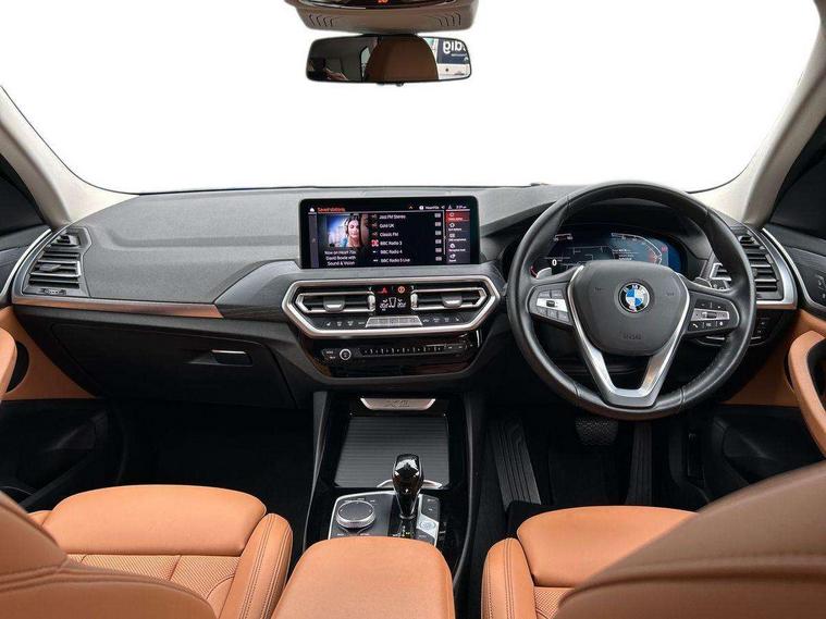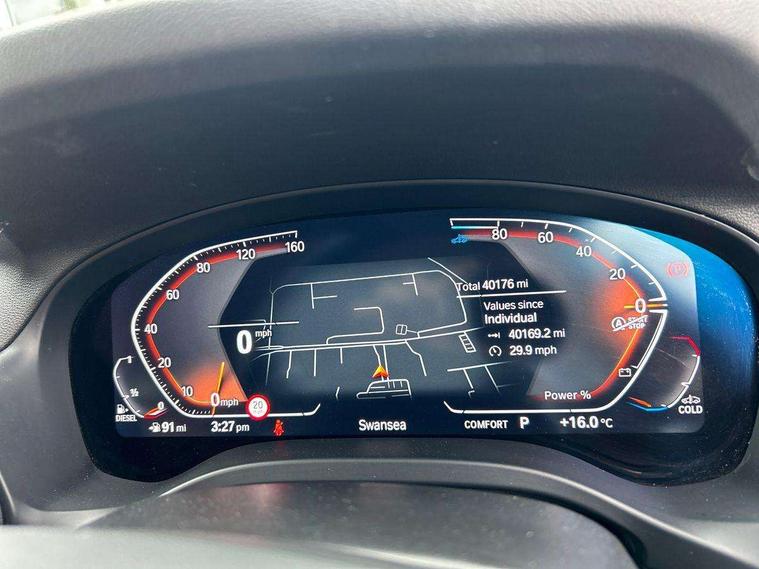 Active Guard, Attentiveness assist, BMW Live Cockpit Professional nav system including 12.3" instrument display + 12.3 high resolution control display, BMW Online services, BMW Teleservices, Brake pad wear indicator in front and rear, Check Control warning system for monitoring of lights and door/luggage compartment open warning, Condition based service - BMW service history, electronic service booklet, integrated owner's handbook, Connected drive services, Cruise control with brake function + speed limiter, Electric boot lid, Electric Power Steering (EPS) with Servotronic, Front/rear Parking distance control, iDrive Controller with 8 favourite buttons, Instrument cluster with speedometer with mph readout, tachometer, fuel gauge and oil temperature gauge, Lights on warning by audio warning signal when ignition is switched off, Oil sensor for level and grade, warning by check control system, On board computer - average speed+fuel consumption, service interval, clock/date, odometer/trip meter, outside temperature display and ice warning, Optimum shift indicator, Personal Profile - automatic lock when driving away selectable, Run flat indicator, Stop/start system, Automatic transmission with gearshift paddles, Diesel particulate filter, Incorrect fuelling protection, Larger capacity fuel tank, Multi-link rear suspension, BMW professional radio/CD/MP3, DAB tuner, Acoustic glazing, Aluminium exterior trim, Automatic windscreen wipers and automatic headlight, Black finish on B pillars, Body colour door handles, Body colour electric adjust heated aspherical door mirrors, Body colour roof mouldings, Body coloured bumpers, Direction indicator, side repeaters, integrated in exterior mirrors, Dynamic brake lights, Exhaust tailpipes - dual, round, split left and right with chrome finisher, Fingertip control / anti-trap function on electric window, Folding wing mirrors with auto dimming, Follow me home headlights, Front and rear bumper system with replaceable deformation elements, Front and rear electric windows, Glacier silver metallic matt in side sills, Gloss chrome tailpipes finishers, Green tinted heat insulating glass, Heated windscreen washer jets, High beam assistant, High level 3rd brake light incorporating LED Technology, Interior rear view electrochromatic mirror with automatic anti dazzle function, LED tail lights, Lightweight engineering, M Sport entry door sill strips, Matt aluminium roof rails, Model designation, Rear side wing doors, Rear wing door, Rear wiper, Shark fin antenna, Visible VIN plate, Welcome lighting, Windscreen wipers with adjustable interval, xLine exterior styling with underbody protection, 12V power socket in front centre console, 3 rear headrests, 3 seat bench in 2nd row, 3 spoke sports leather multi-function steering wheel, 3 zone automatic air conditioning, 4 lashing points to secure luggage, 40:20:40 split folding rear seat with loading system, Ambient lighting, Automatic interior light when door is opened/ignition switched off or via remote key, Deletion lumbar support/width adjustment passenger side, Floor mats in velour, Foldable storage floor with compartment, Four grab handles integrated in roof lining, Front and rear bottle holders integrated into door trim storage compartments, Front and rear side armrests integrated into door trim, Front centre armrest with storage compartment, Front door sill finishers with BMW X-line designation, Front footwell lights, Front head restraints, Front passenger seat, Front sports seats, Front/rear courtesy lights with soft on/off dimming, Front/rear reading lights, Heated front seats, Isofix rear child seat preparation, Leather gear knob, Luggage area underfloor compartment, Luggage compartment lighting, Parcel shelf removeable and storable under boot floor, Reach and rake adjustable steering column, Rear centre armrest with 2 cupholders, Removable / retractable luggage cover, Sensatec perforated upholstery, Slope adjustable rear seats, Storage compartment in rear centre console and front/rear door trims, Sun visors with vanity mirrors and ticket pocket, Toolkit located in luggage compartment, Two front cupholders with removable oddments tray/lid, Connected pro pack - X3, Driving assistant pack - X3, ADB - Automatic Differential Brake, Anti-lock braking system (ABS) with brake assist, Automatic Stability Control (ASC), Battery safety cut-off, BMW emergency call, Brake drying, Brake energy regeneration, Braking pre-tensioning, Child locks on rear doors, Cornering brake control (CBC), Crash Sensor - activation of central locking release, hazard warning light and interior lighting, Deactivation of fuel pump in the event of a crash, Driver and front passenger front and side airbags with passenger deactivation and ITS front and rear head airbags, DSC+, Dynamic brake control, Dynamic Traction Control - DTC, Electromechanical parking brake, Hill descent control, Hill start assist, Seatbelt security check for front seats, Side impact protection, Three point seatbelts to all seats with front and outer rear pyrotechnic belt tensioners and seat belt force limiters, Two tone horn, Tyre pressure sensor, Ventilated front and rear disc brakes, Warning triangle and first aid kit, Central locking switch for all doors, fuel filler cap and luggage compartment, Electronic engine immobiliser, Locking wheel nuts, Remote control including two integrated key - one button for open/close all lockable content, windows and separate button for open luggage compartment, Remote control Thatcham category 1 alarm, Start/stop button with Comfort Go keyless engine start and auto Start/stop deactivation button, Low rolling resistance tyres, Tyre repair kit,